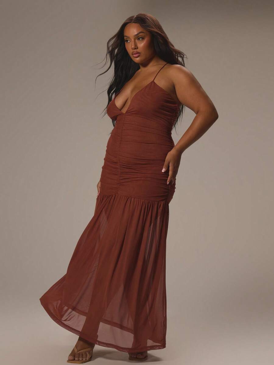Vestido maxi con escote en v fruncido, talla grande, elegante y de clase para primavera y verano, ideal para vacaciones, dias festivos, romantico y sexy