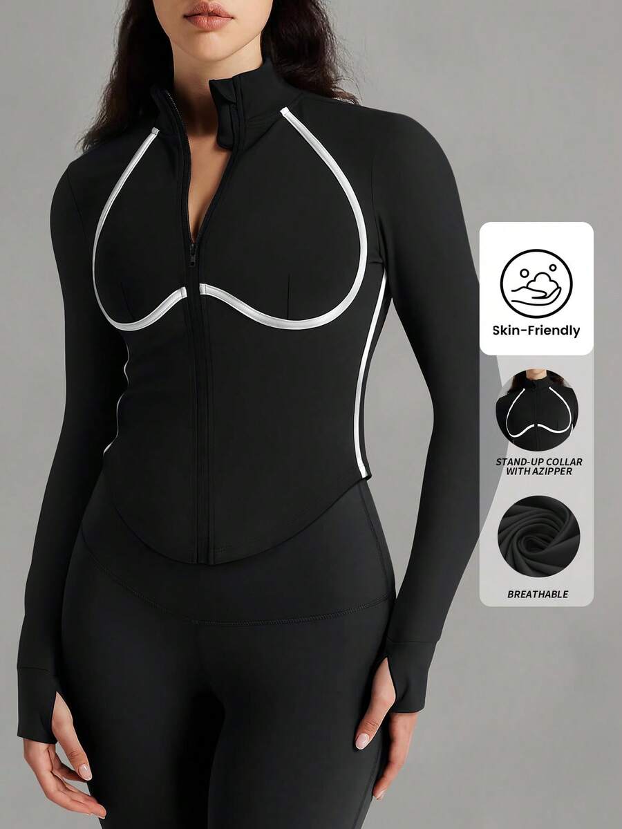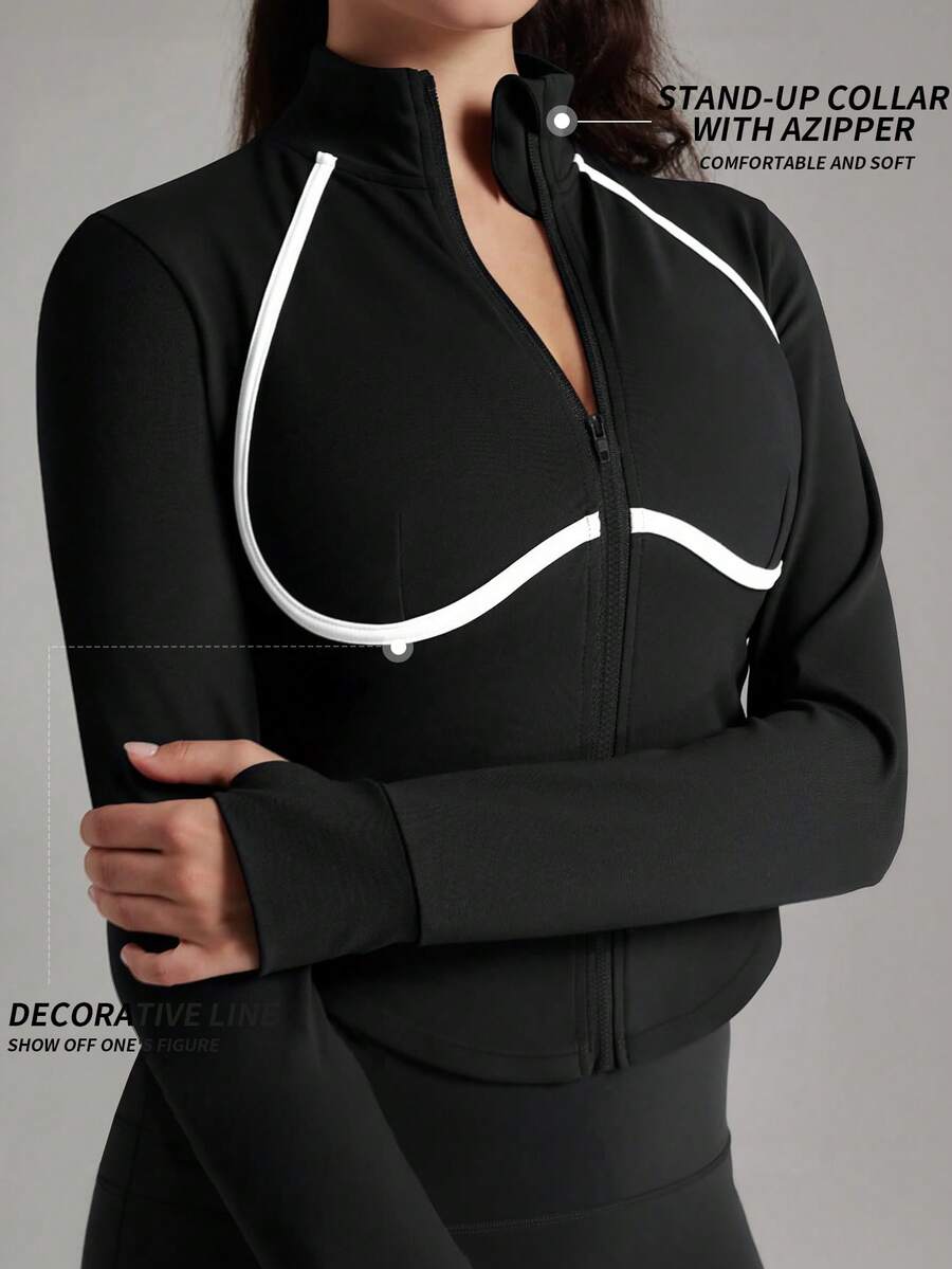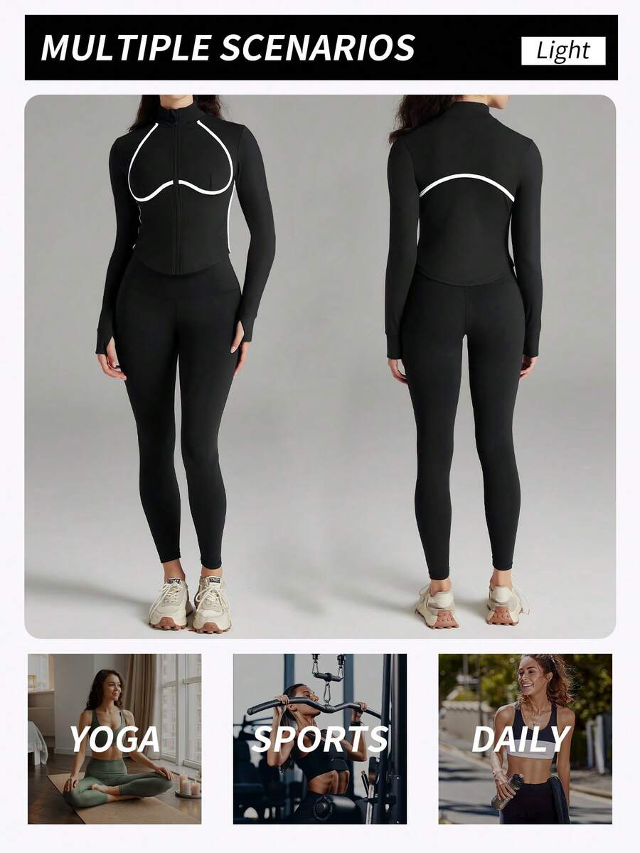 Yefecy chaqueta deportiva con diseno de agujero para el pulgar con cremallera para mujer, chaquetas para mujeres. abrigo de manga larga transpirable y comodo para gimnasio, entrenamiento, running: ropa deportiva para mujer para todas las temporadas