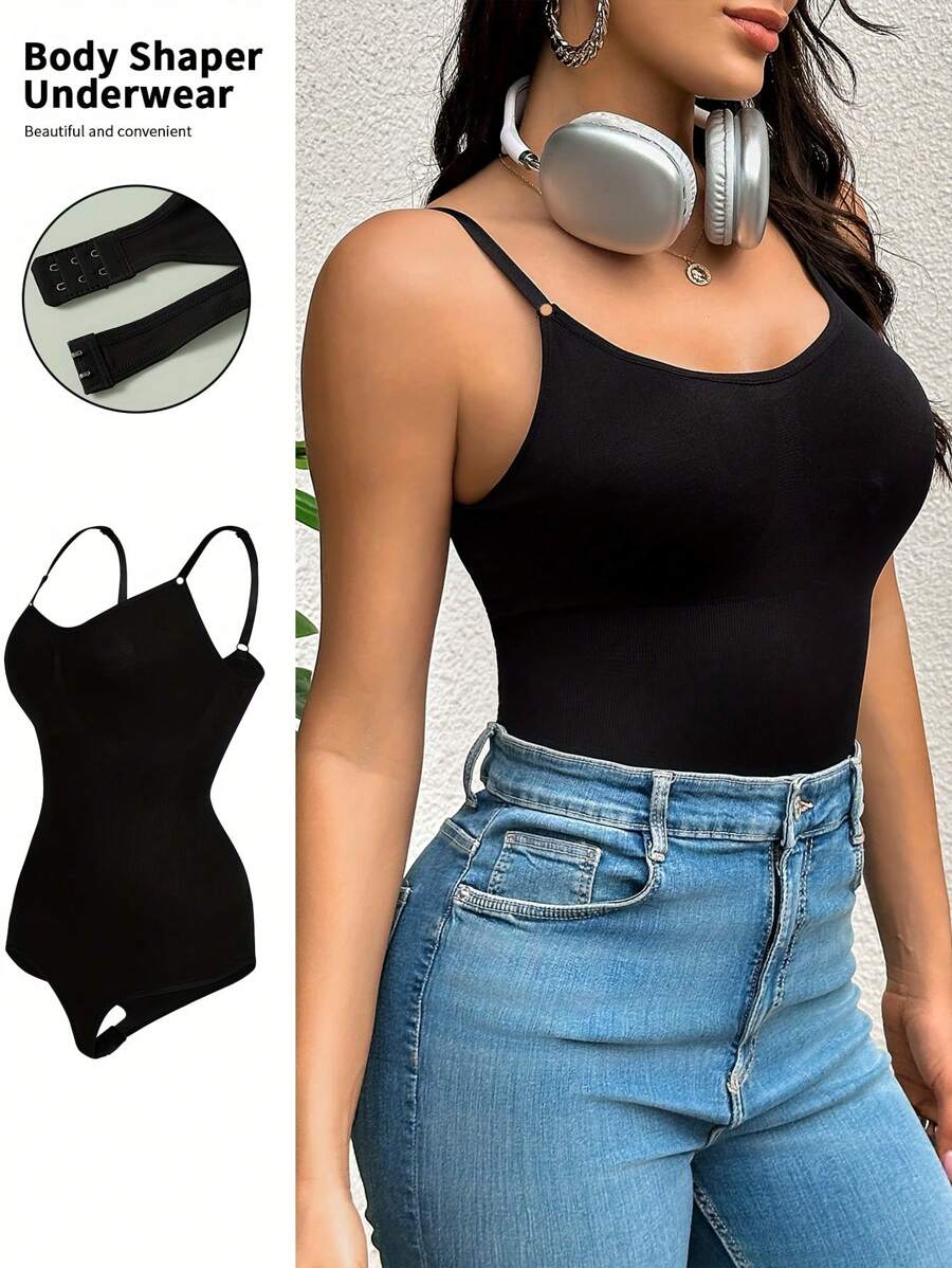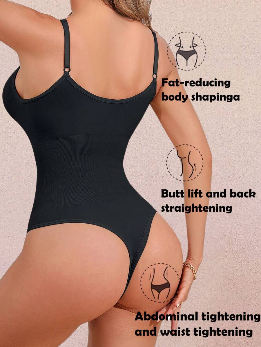 1 pieza body moldeador deportivo para mujer, body moldeador negro, ropa interior moldeadora que levanta las caderas, tanga delgado, corse, prenda moldeadora de la cintura, estilo de tirantes finos con botones desmontables, levantamiento de caderas y