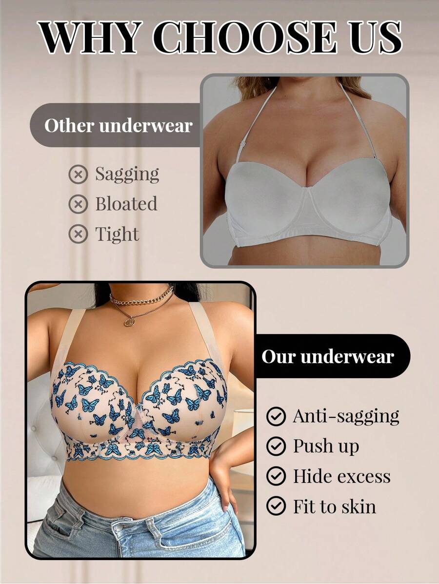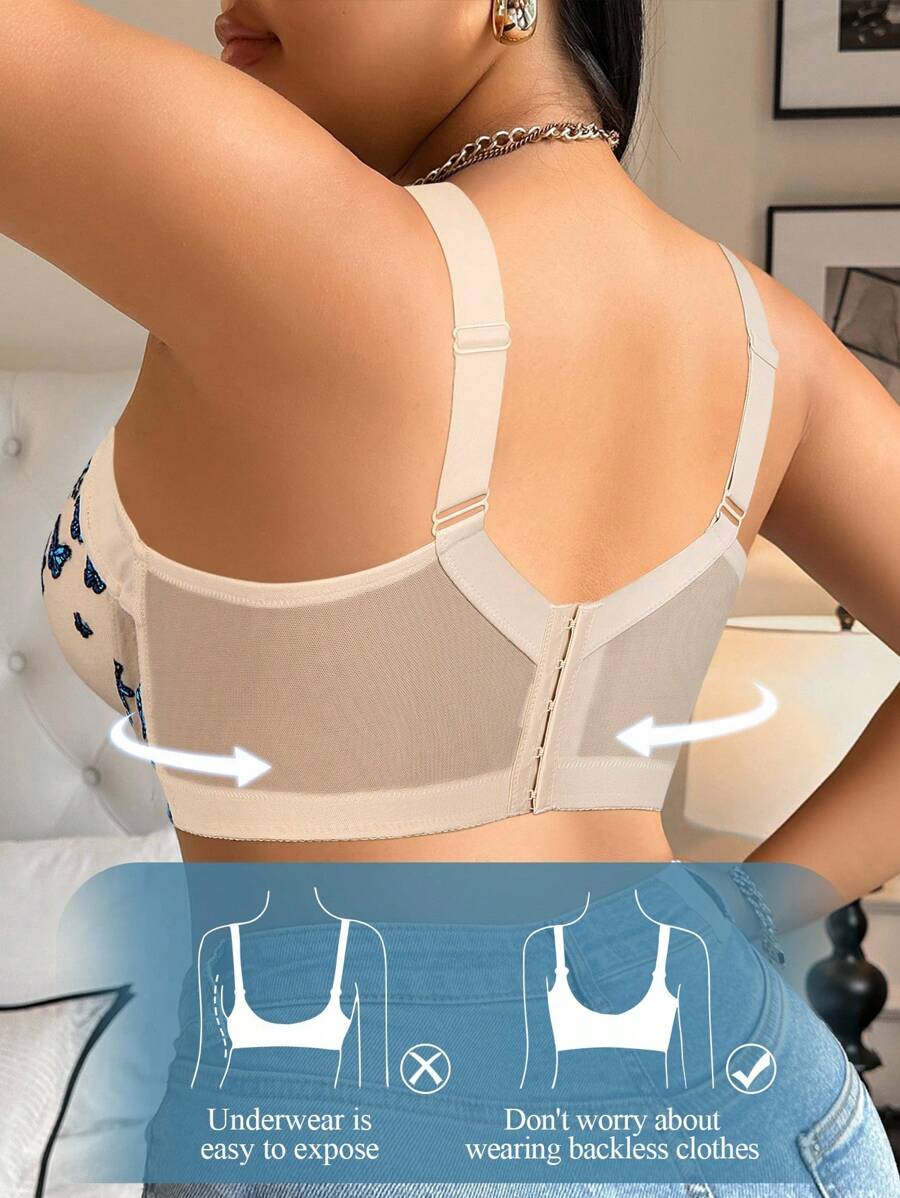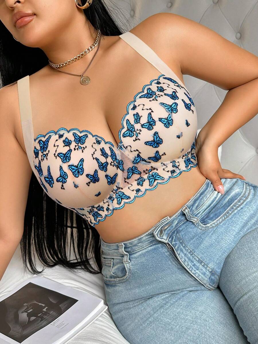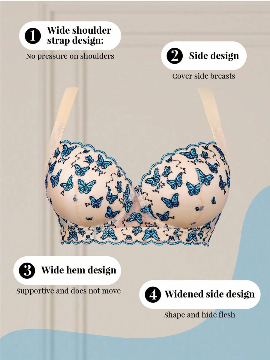1 pieza brasier inalambrico de encaje y bordado para mujer talla grande, de malla sexy, con soporte comodo y recogida