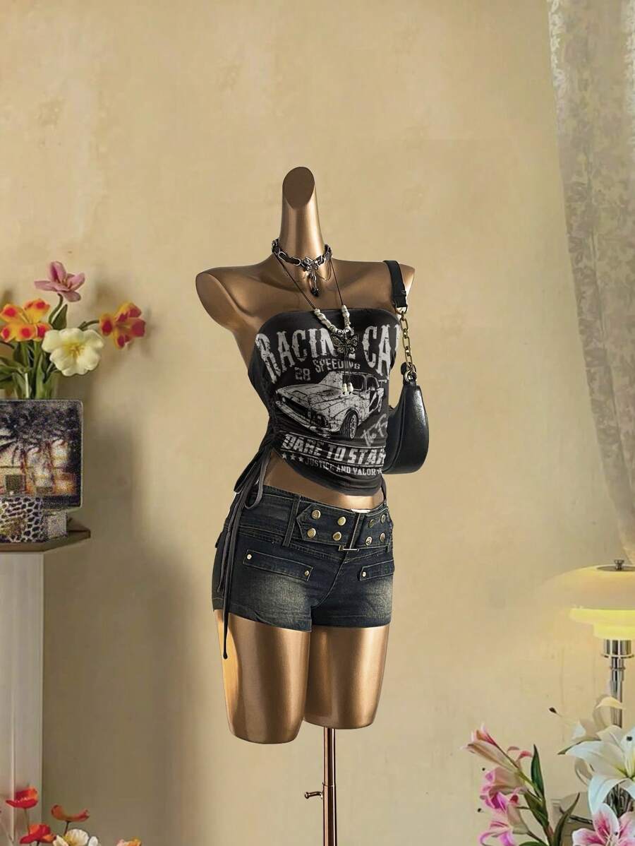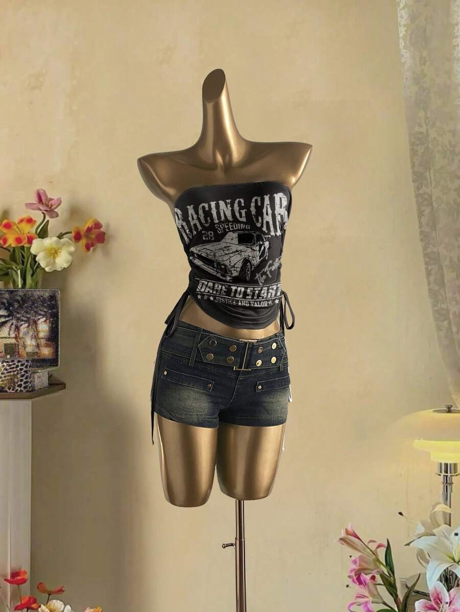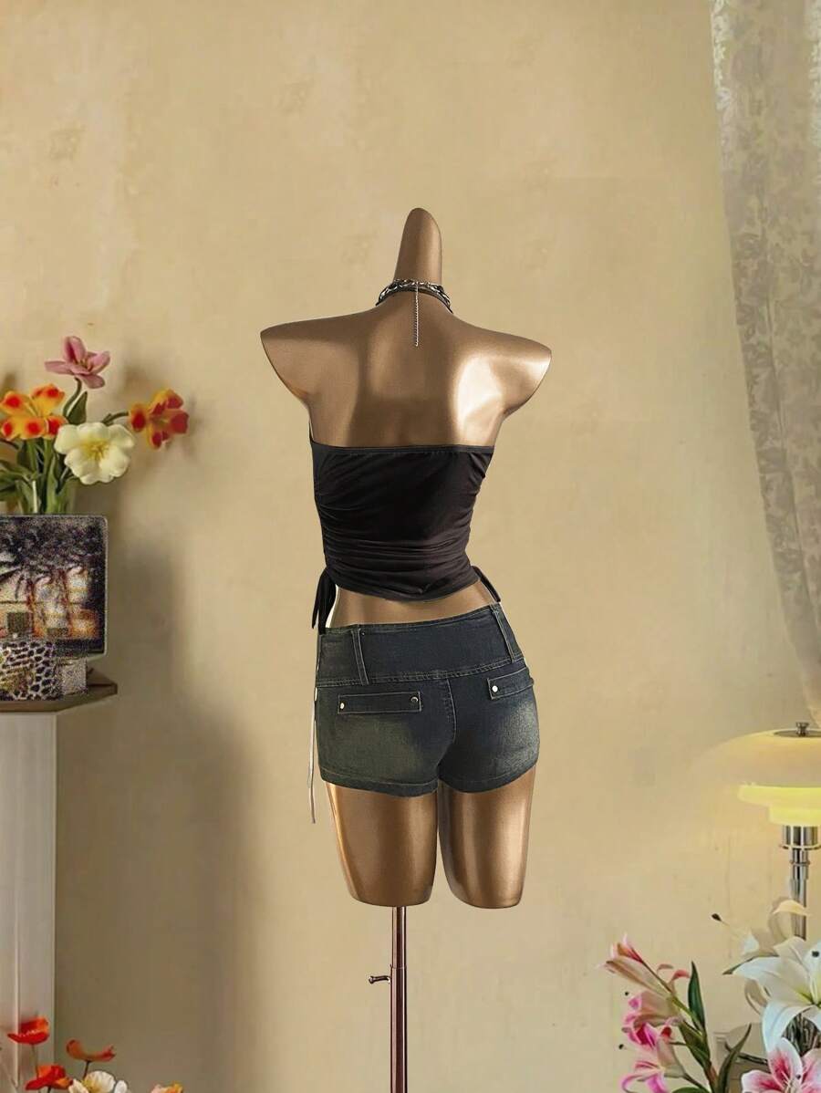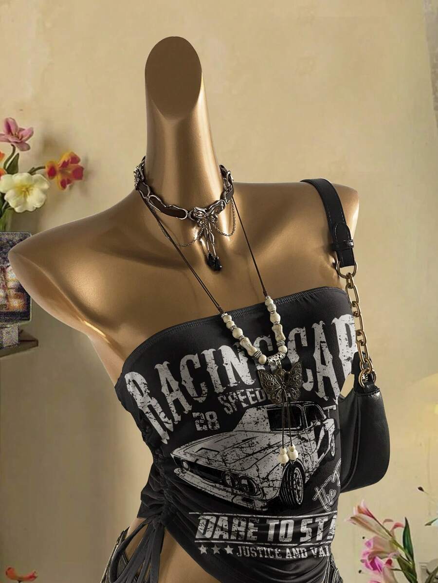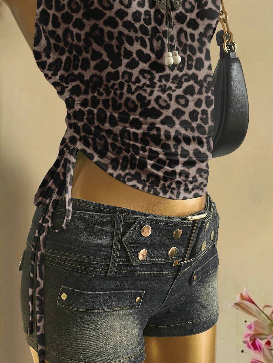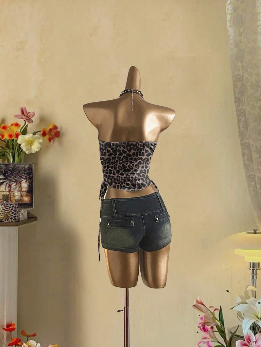 Attitoon parte superior con lazo de estilo sexy y fruncido con estampado de leopardo para mujeres