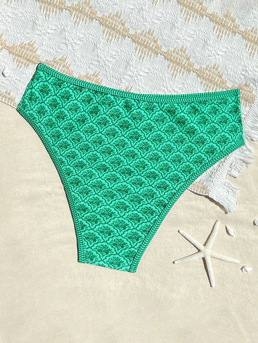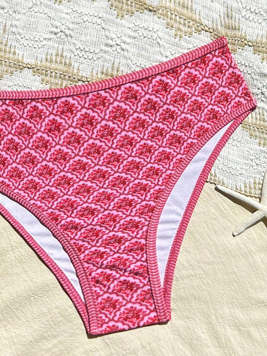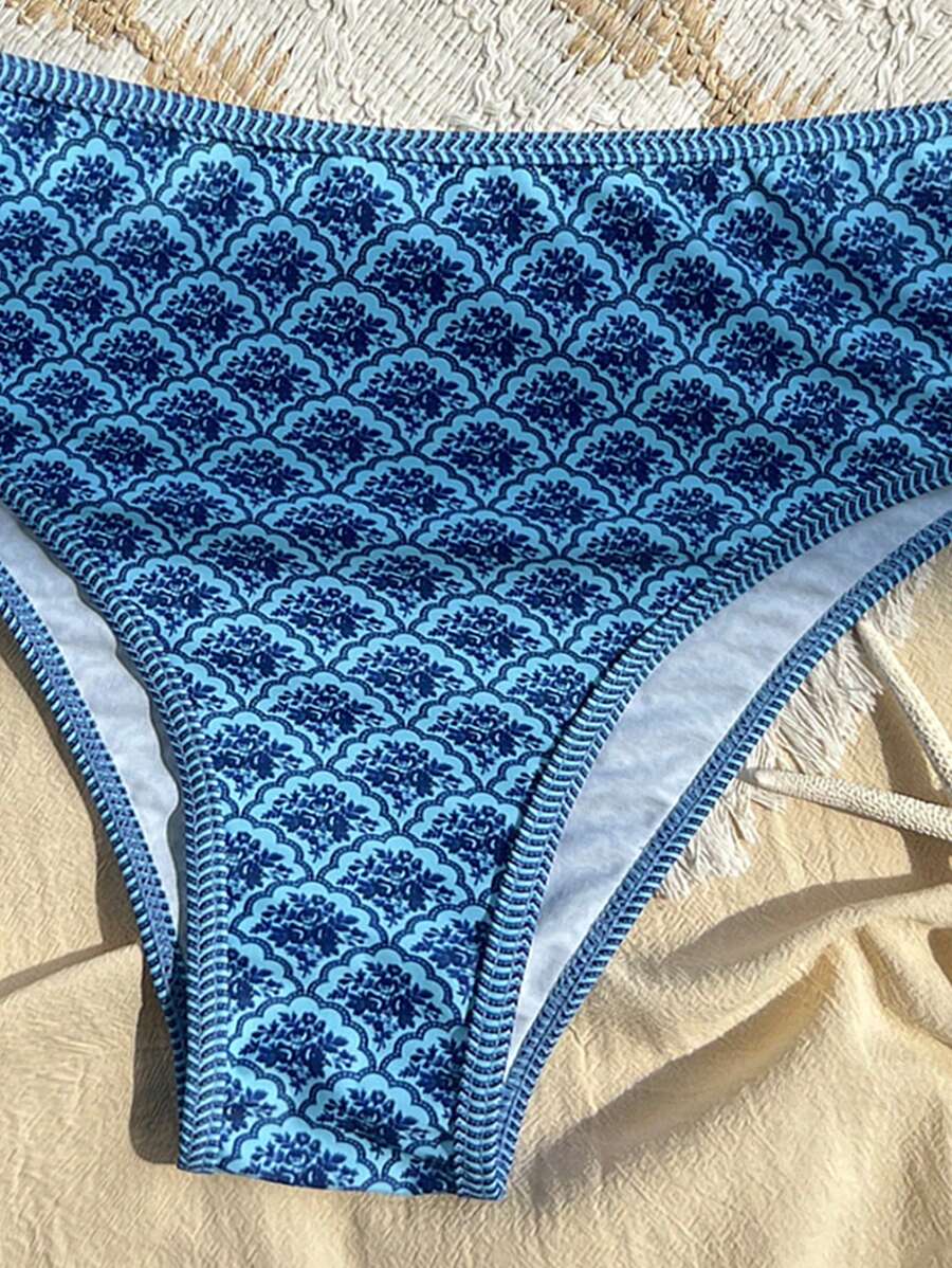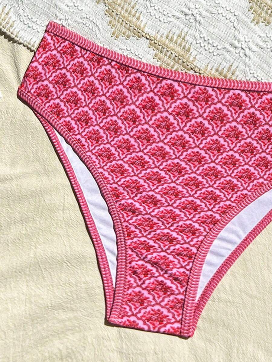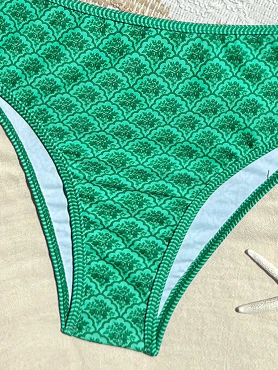Conjunto de 2 piezas tanga de mujer con corte alto lateral y estampado floral diminuto, traje de bano para vacaciones en la playa