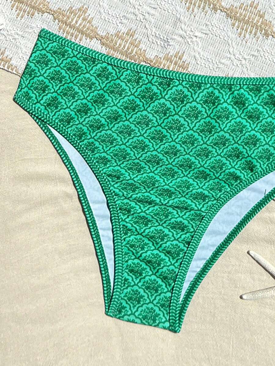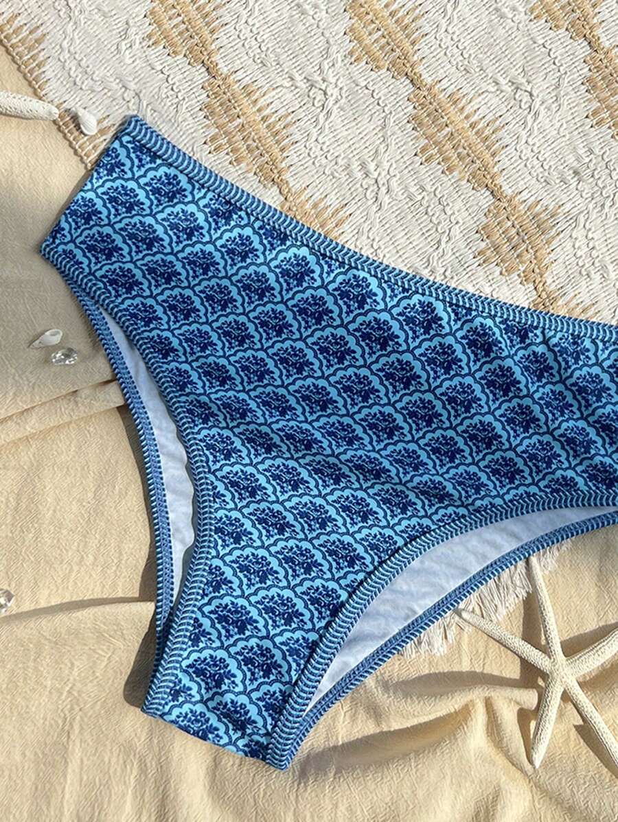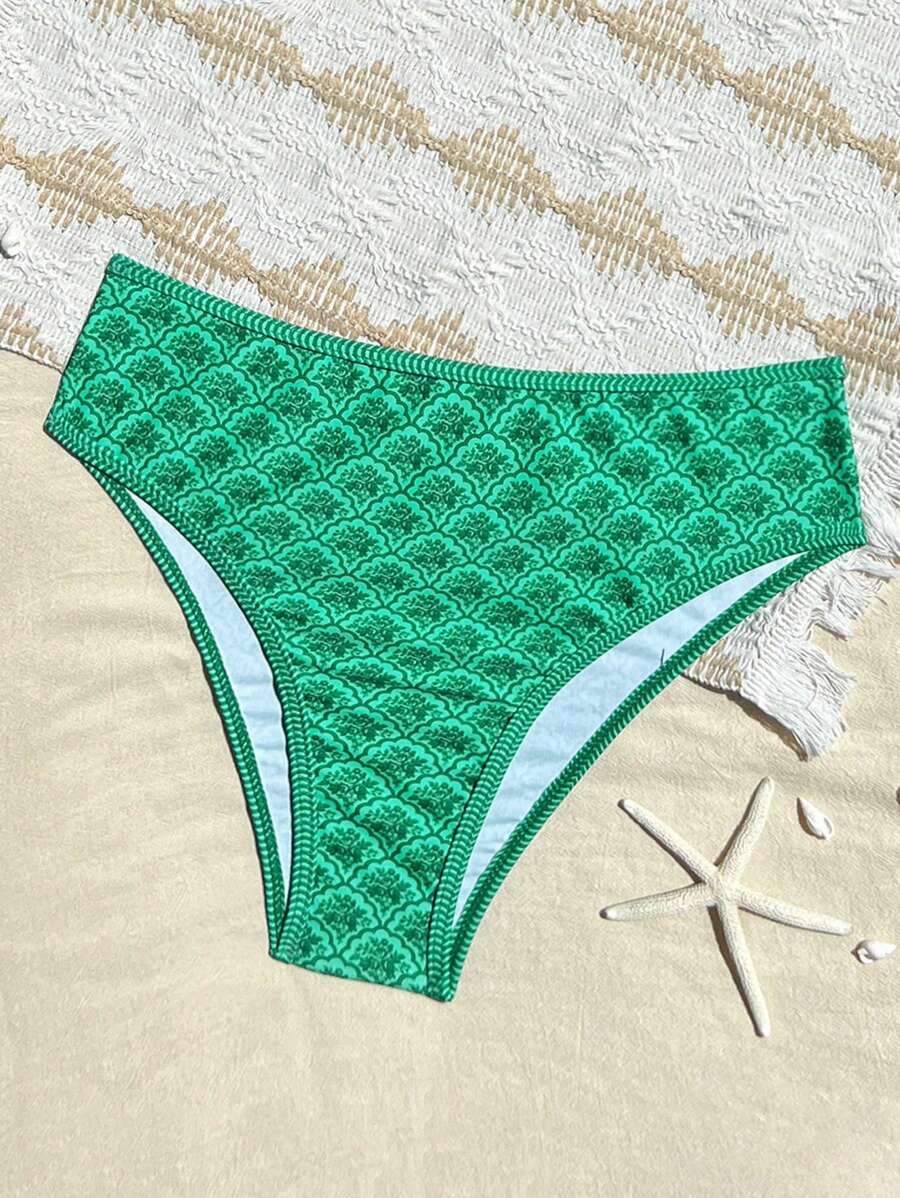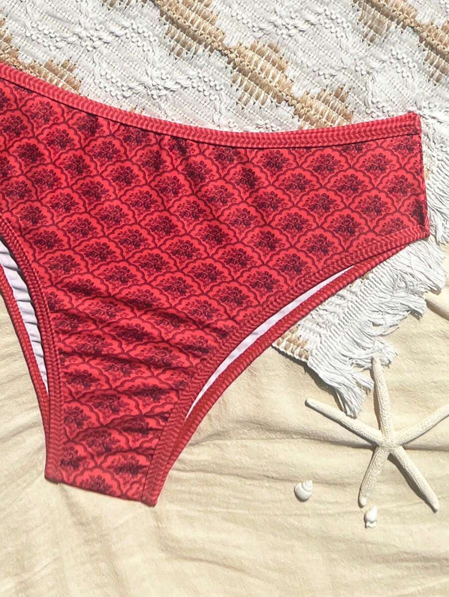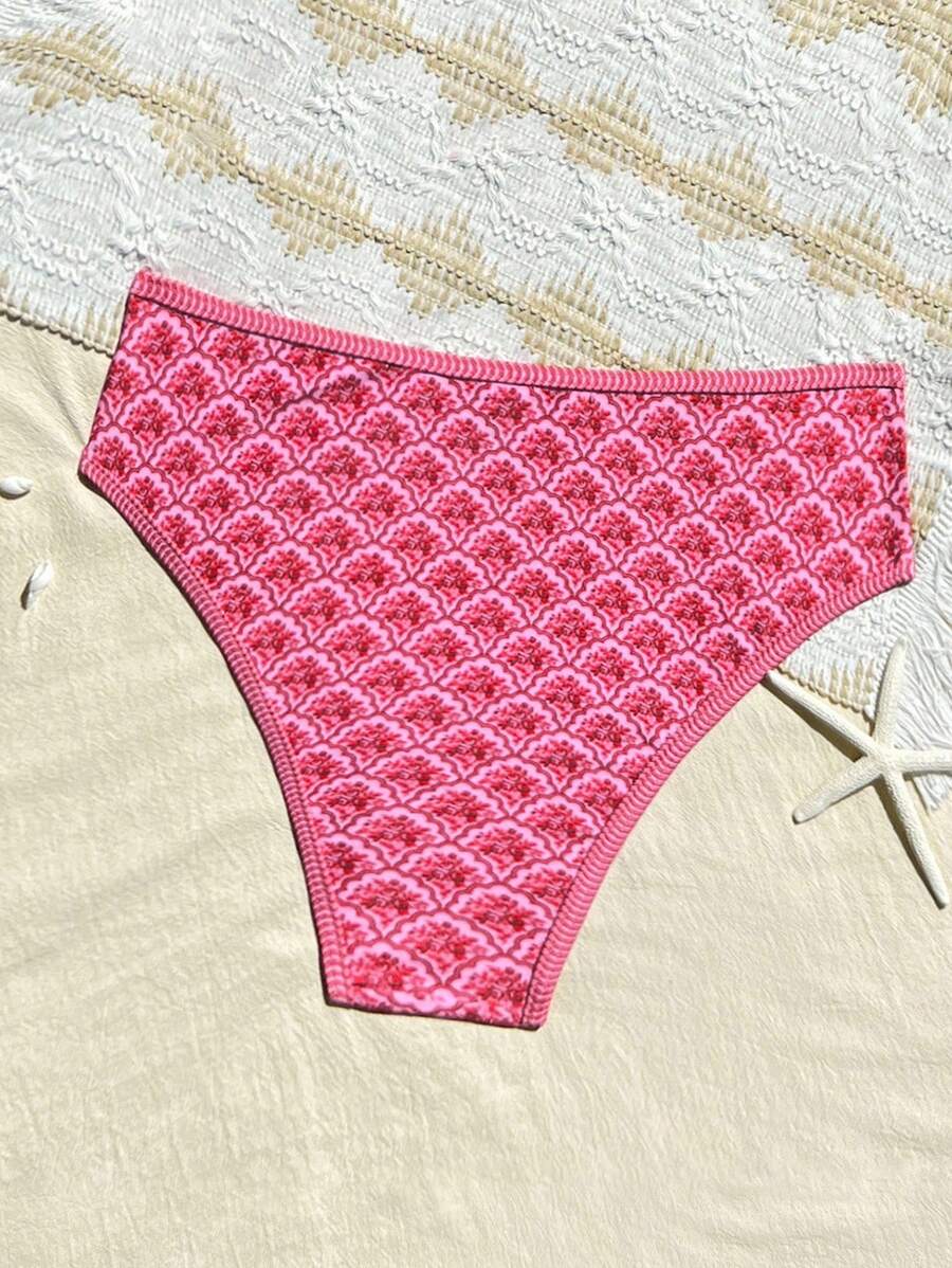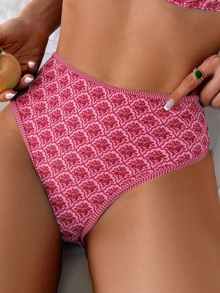 Conjunto de 2 piezas tanga de mujer con corte alto lateral y estampado floral diminuto, traje de bano para vacaciones en la playa