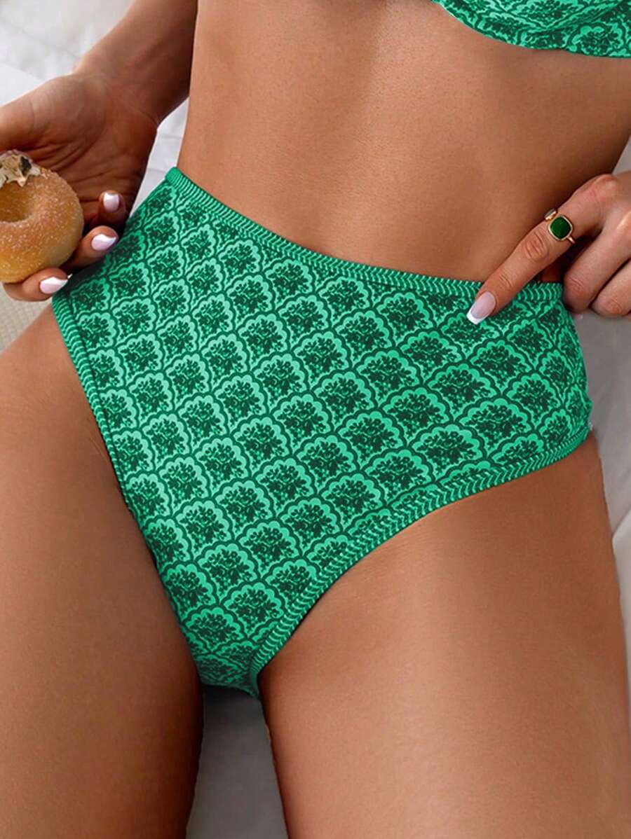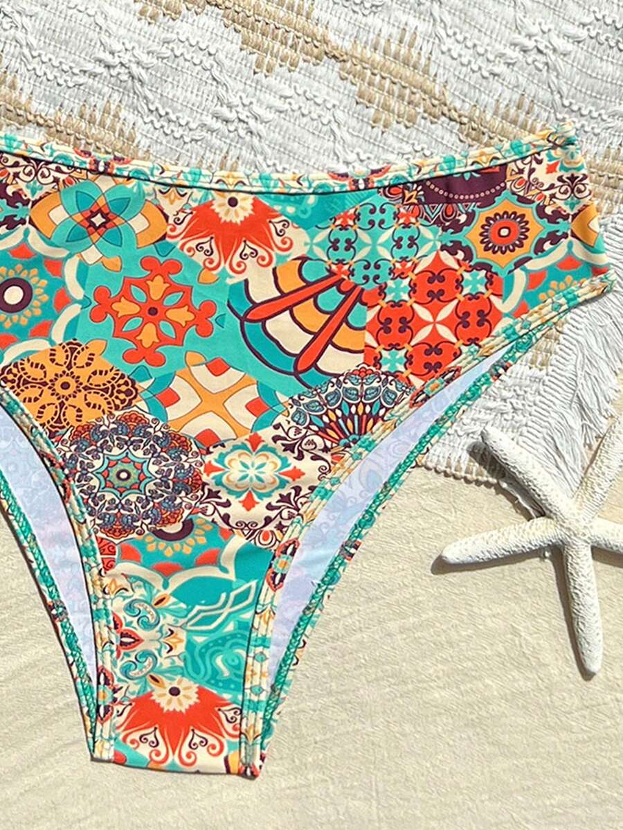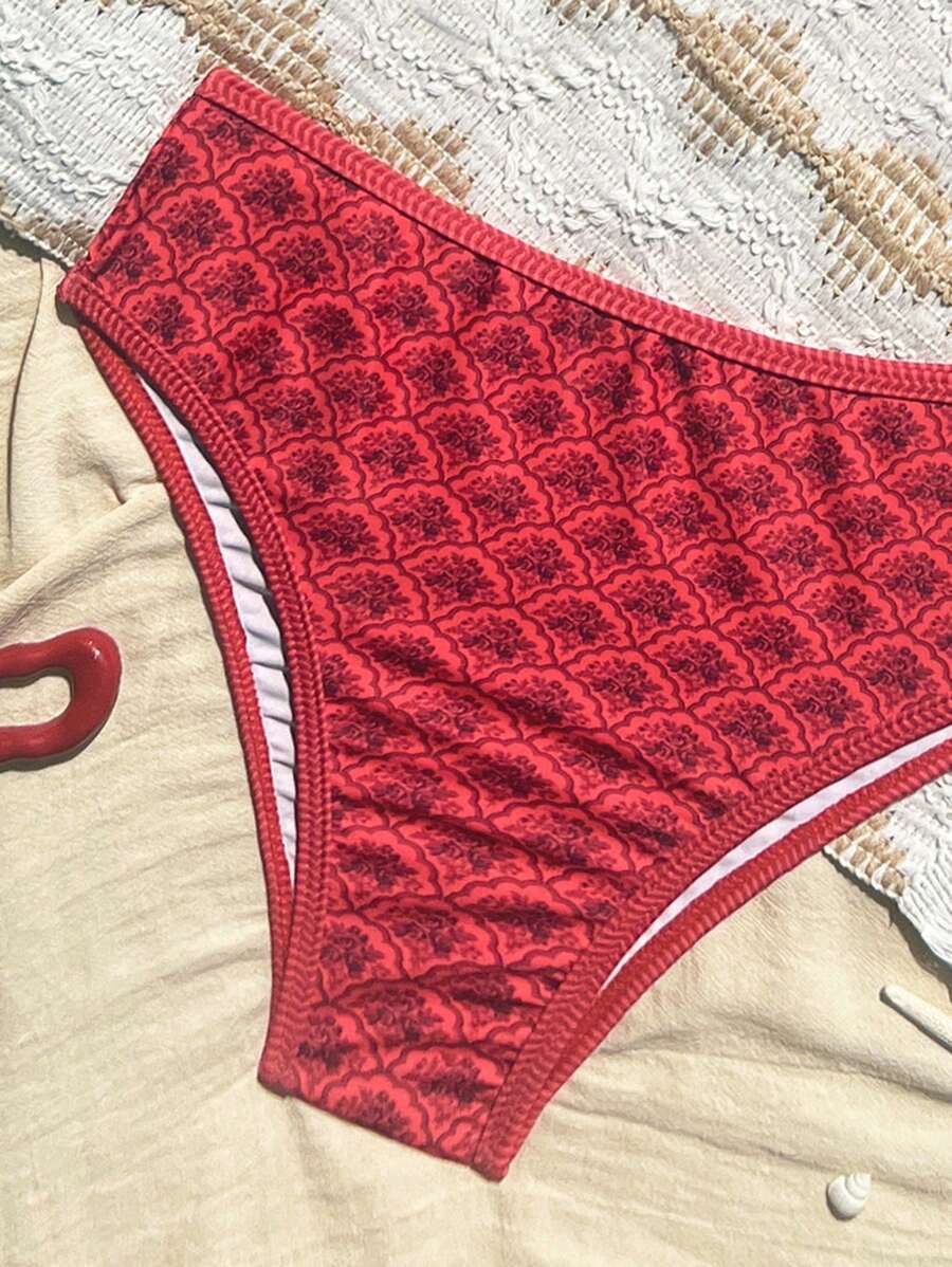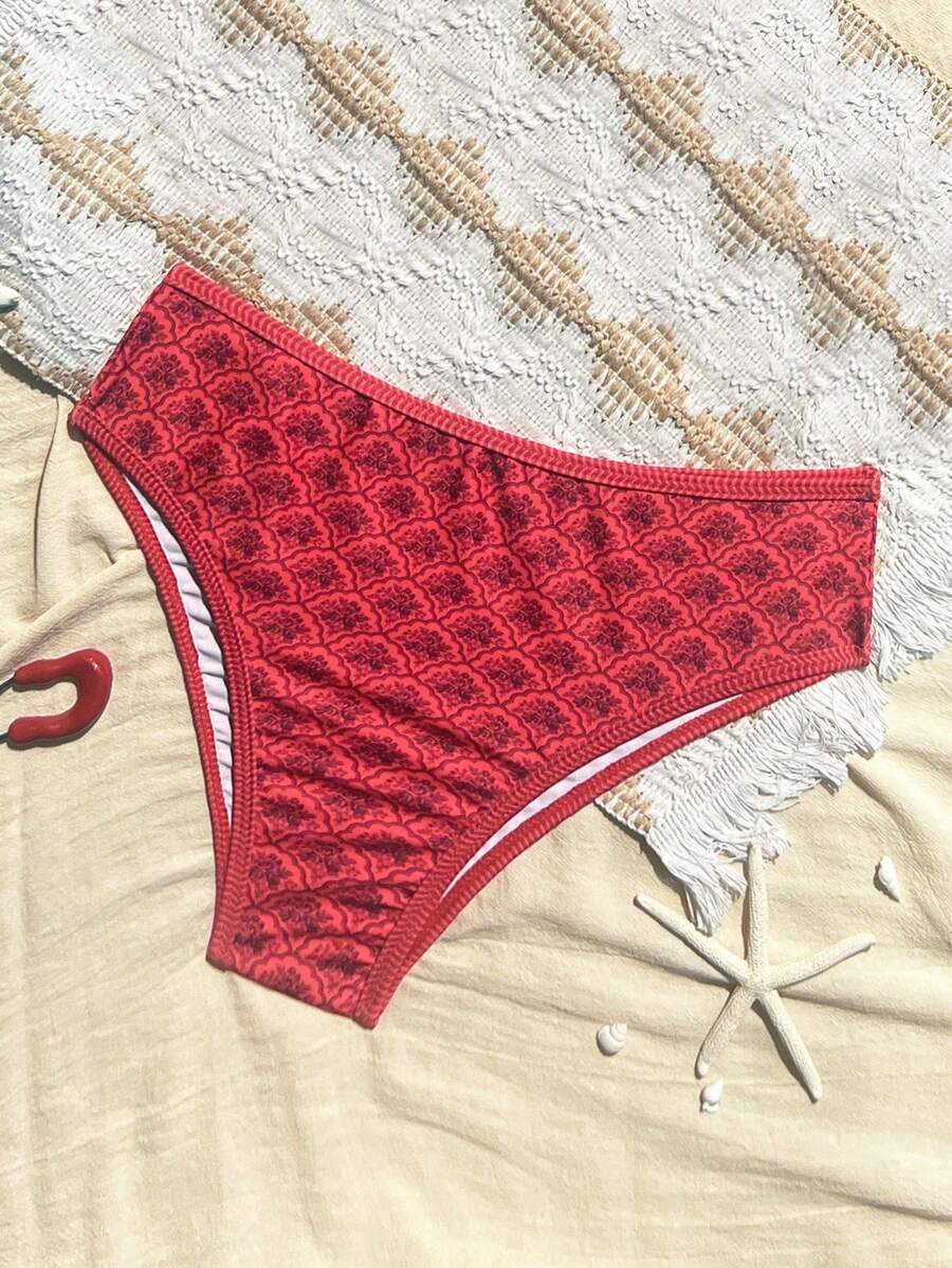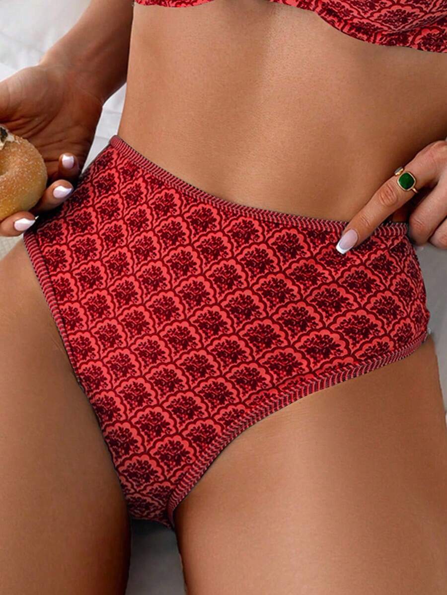 Conjunto de 2 piezas tanga de mujer con corte alto lateral y estampado floral diminuto, traje de bano para vacaciones en la playa