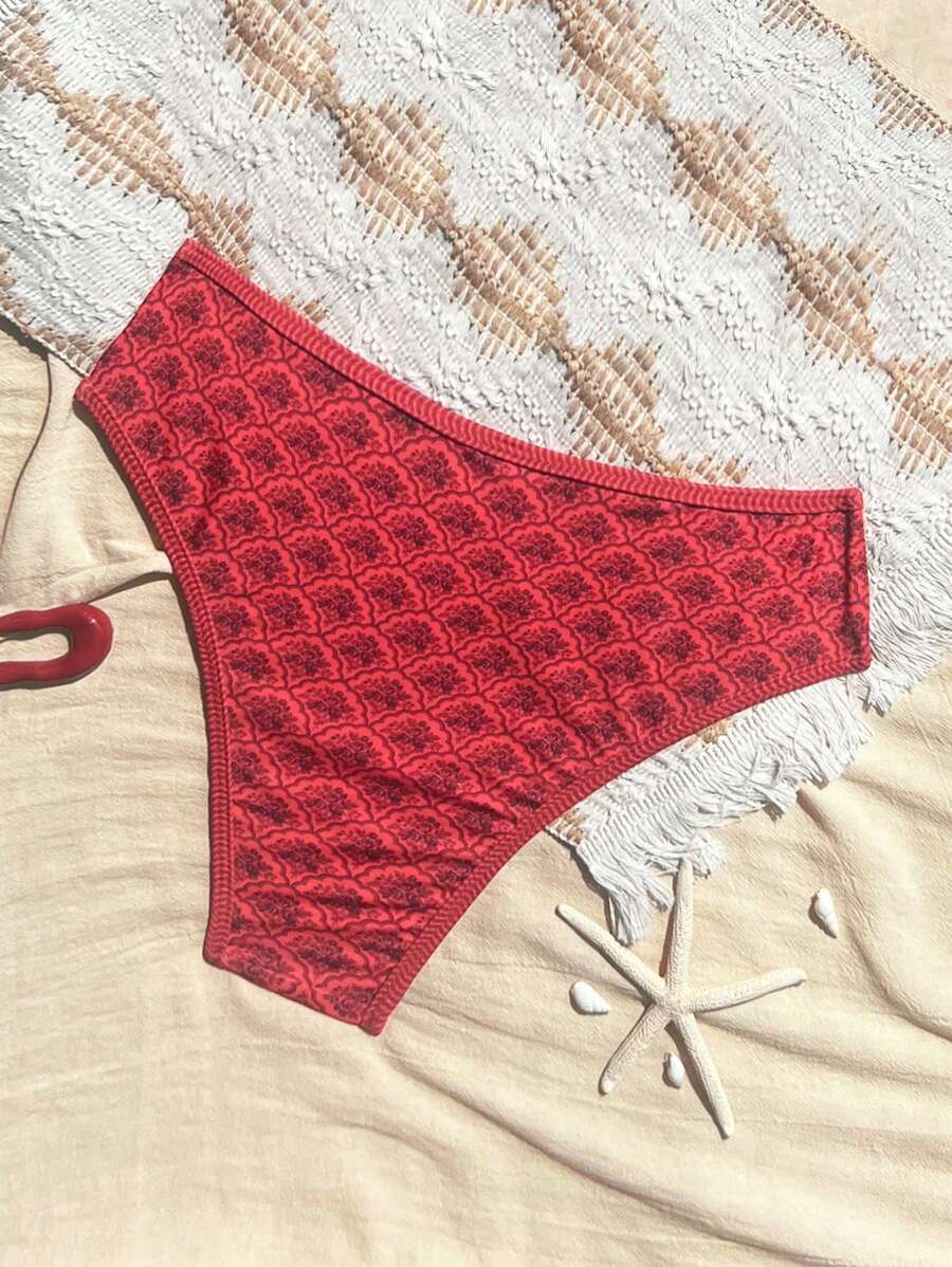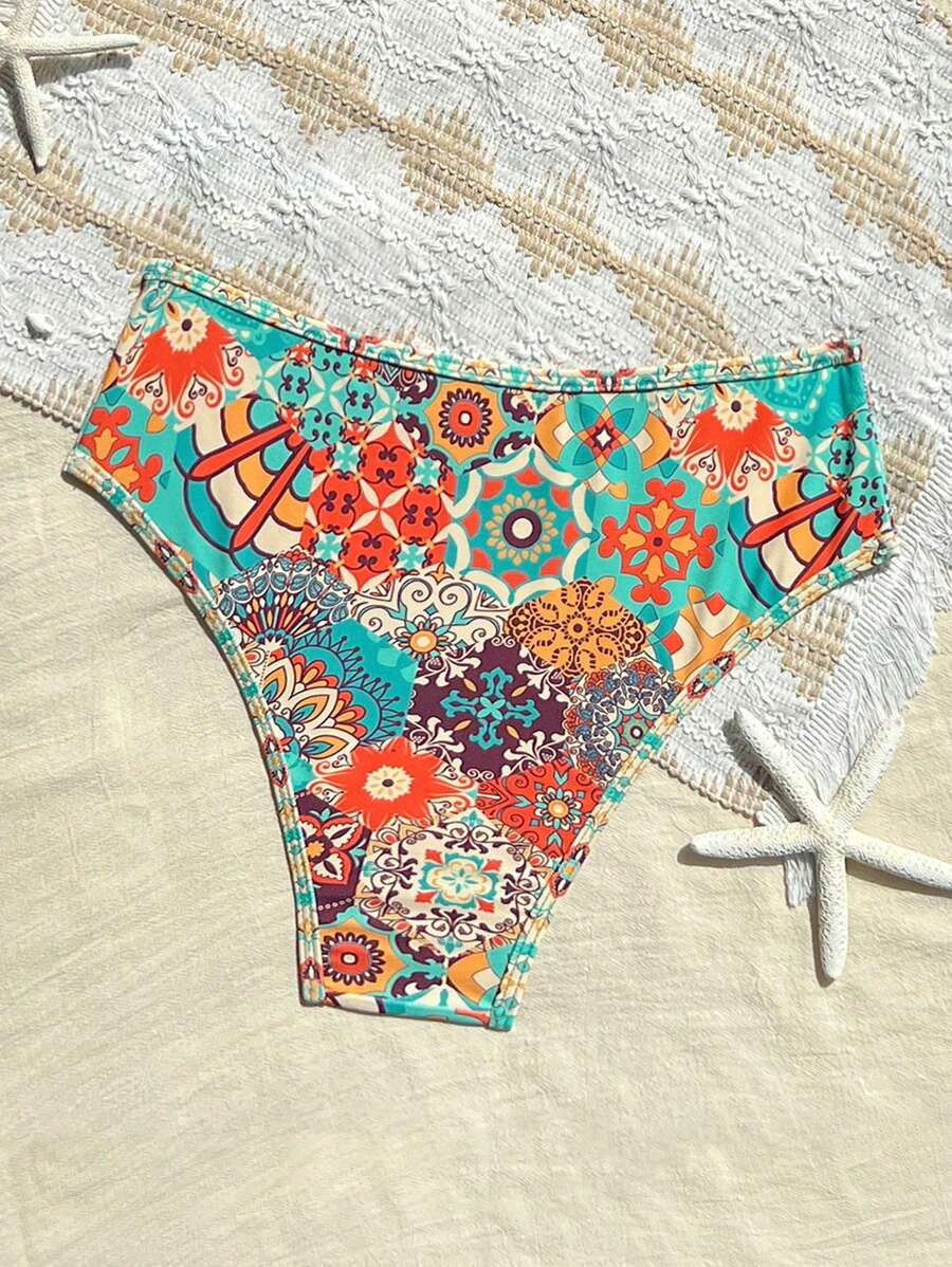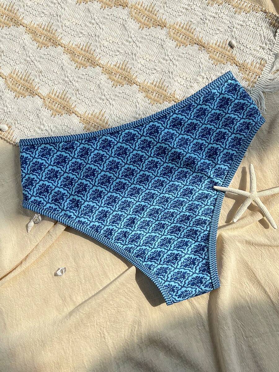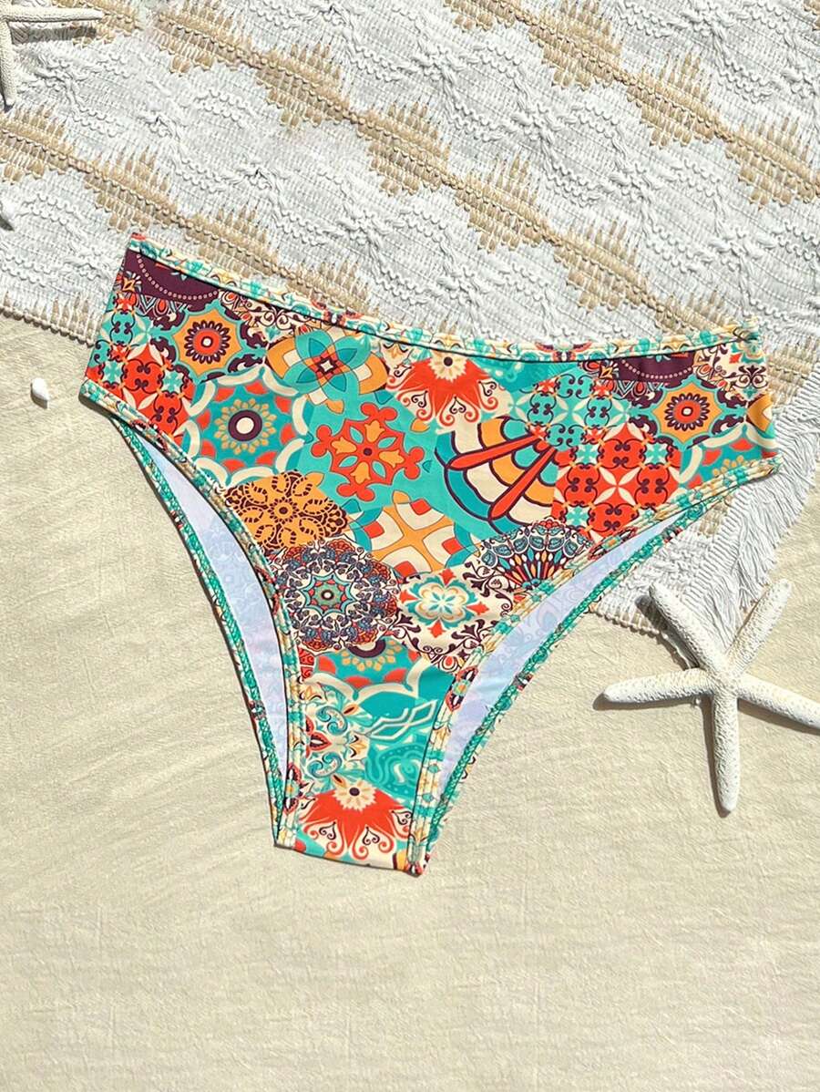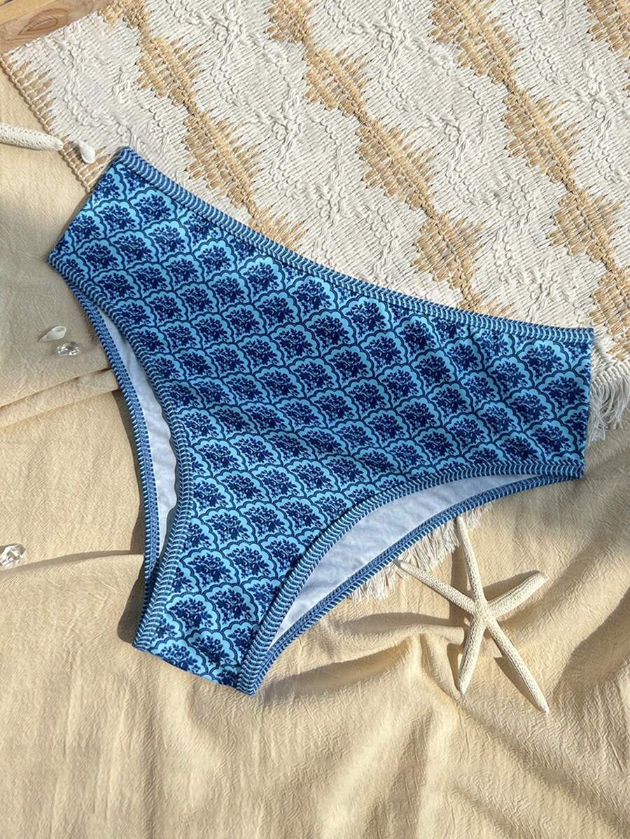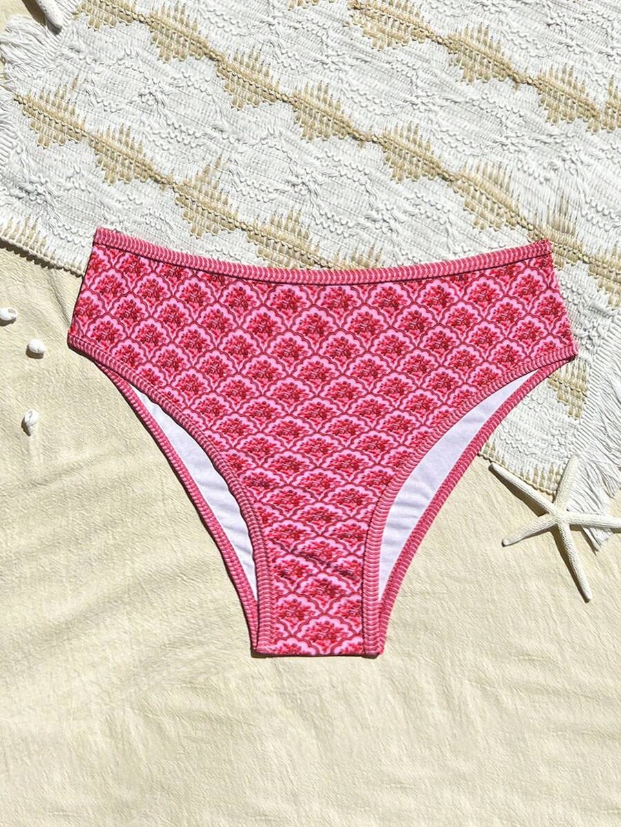 Conjunto de 2 piezas tanga de mujer con corte alto lateral y estampado floral diminuto, traje de bano para vacaciones en la playa