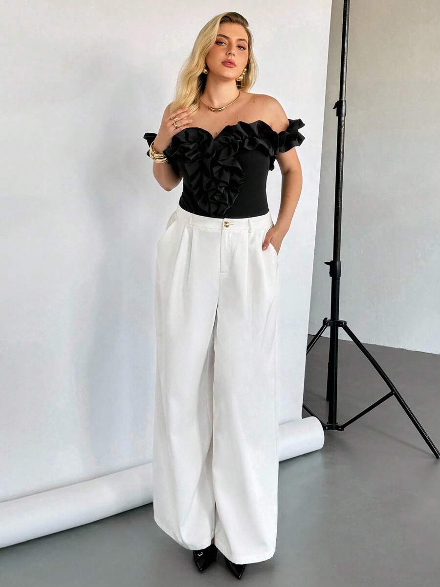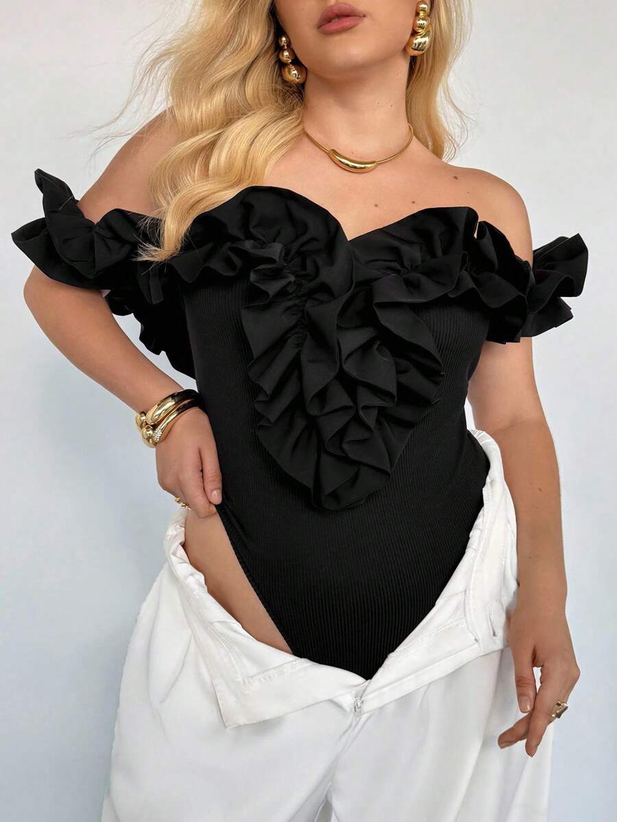 Auralis body con volantes en el hombro y bajo para mujer talla grande