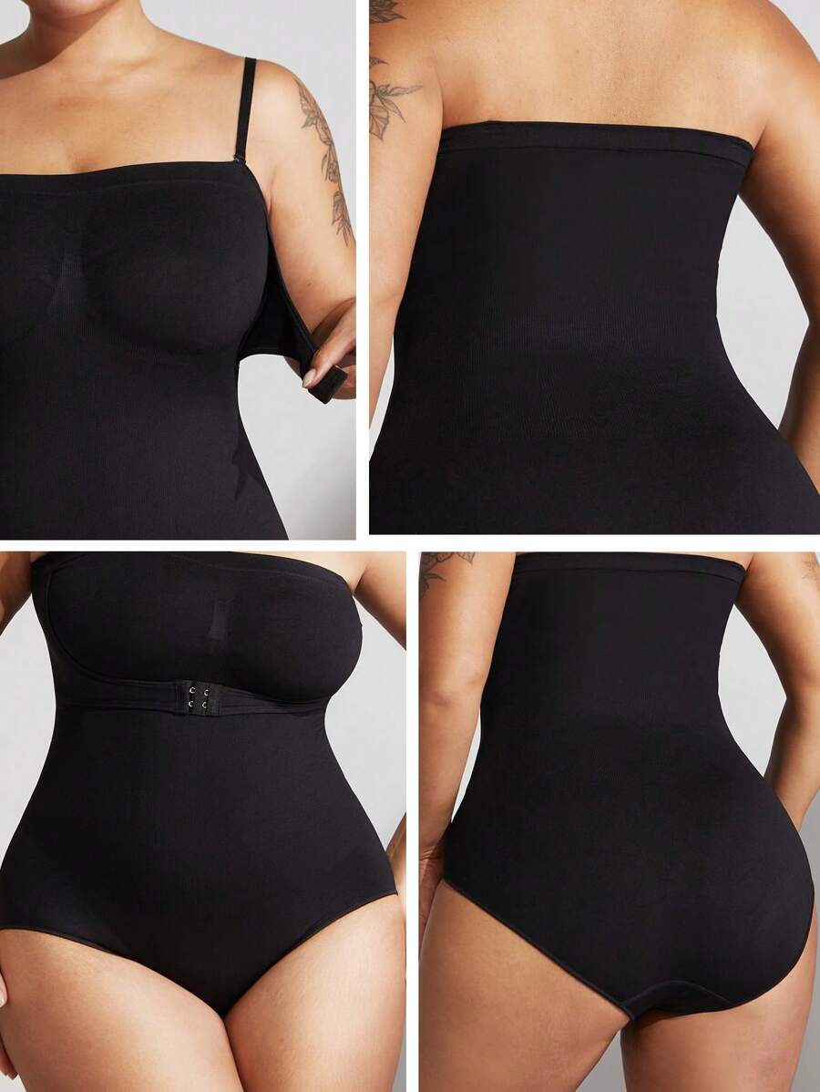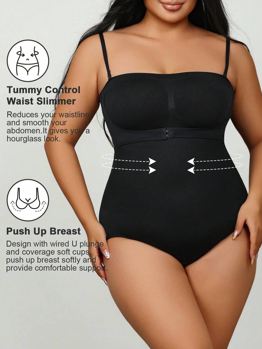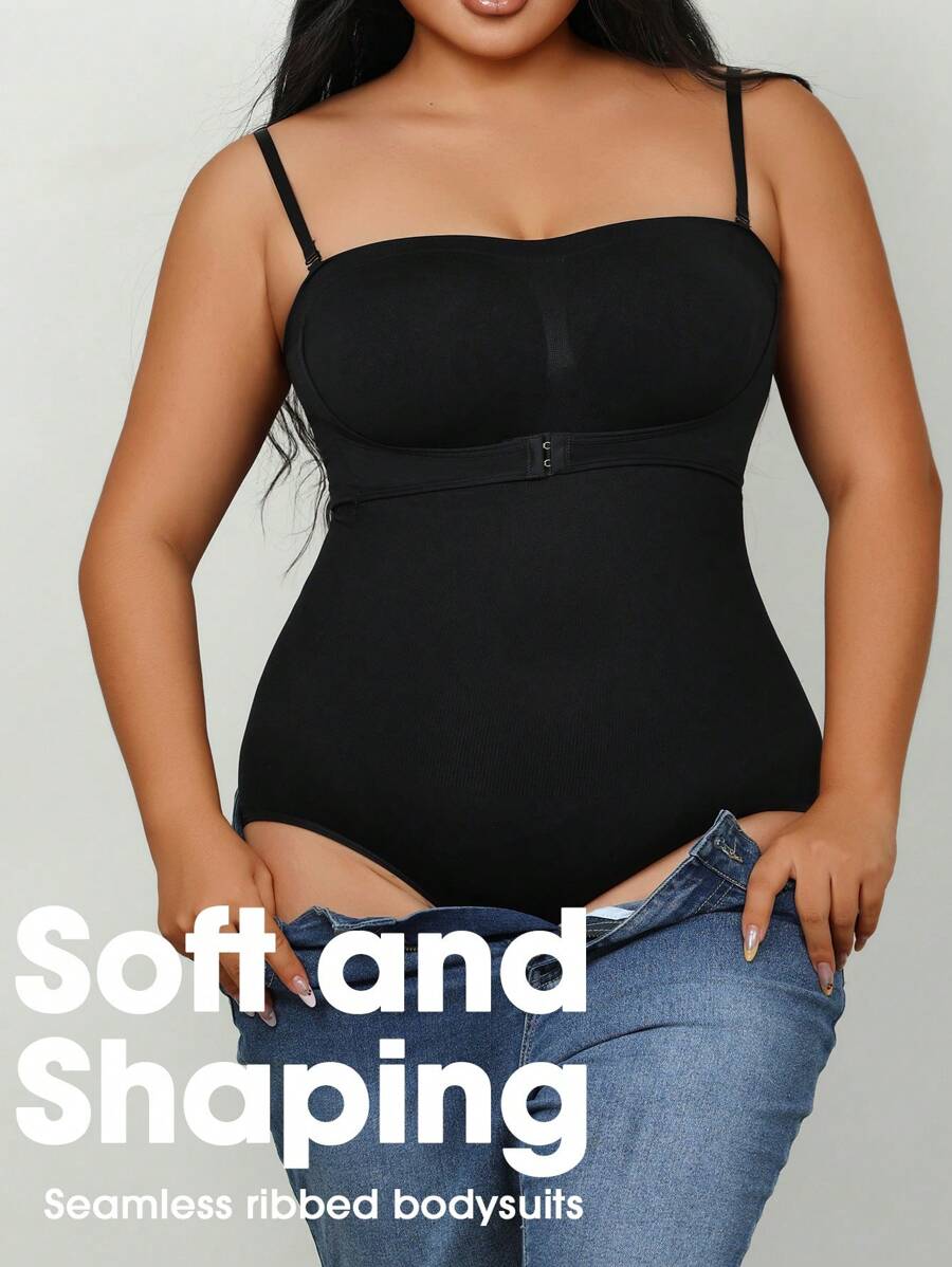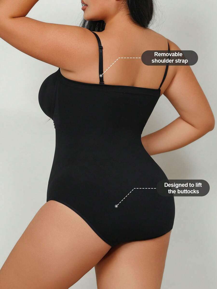 1 pieza body sin costuras moldeador con tirantes extraibles para mujer de talla grande, esculpe el busto/cintura/cadera, color negro, para verano