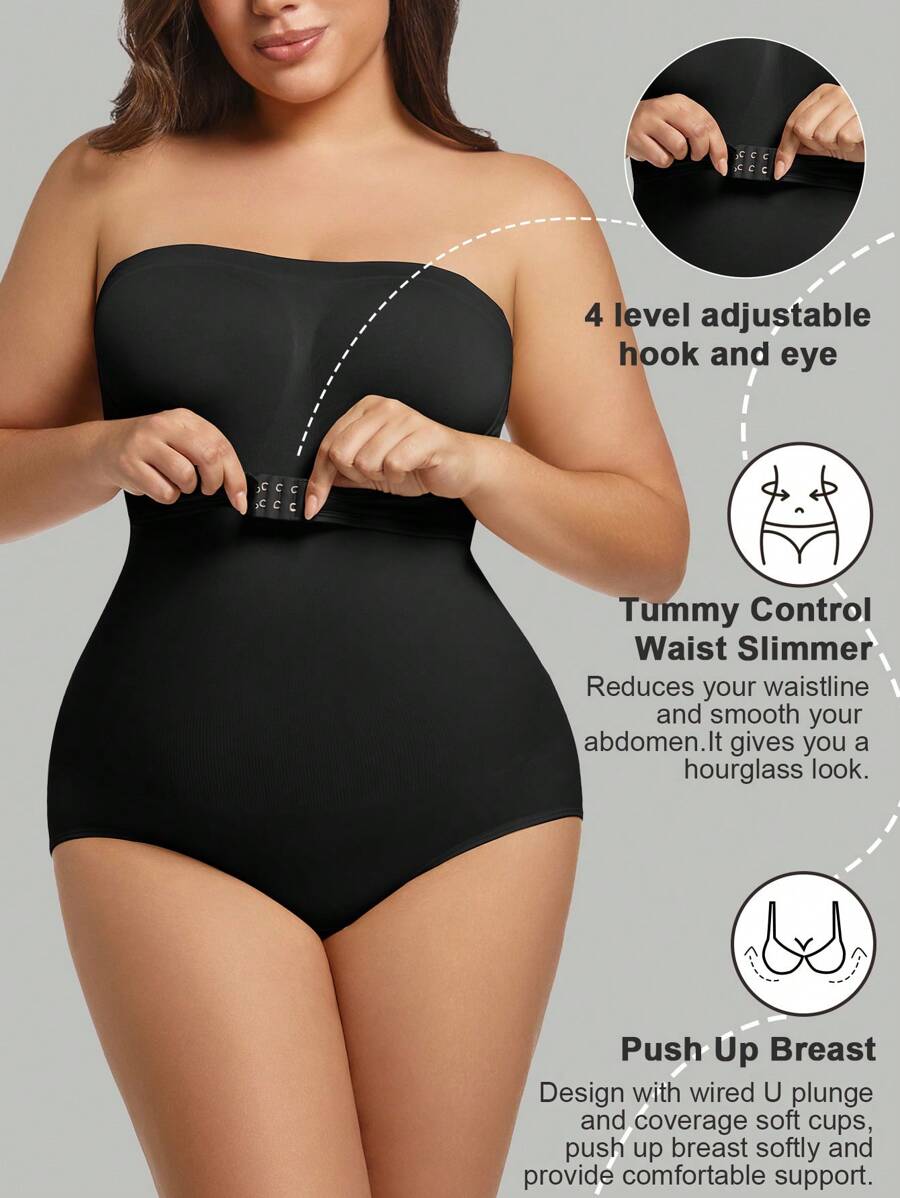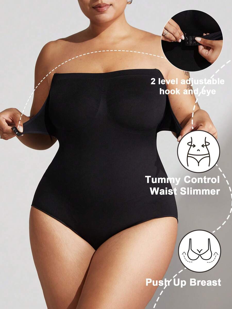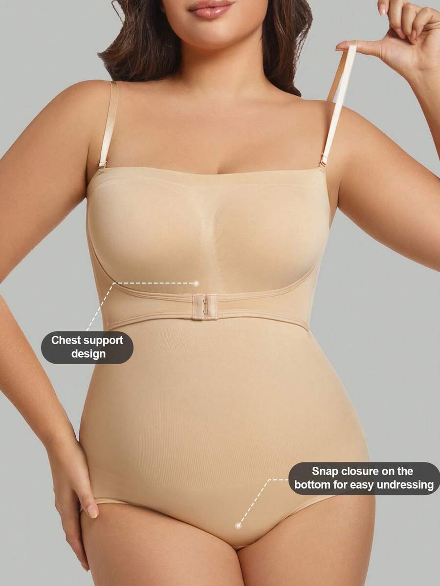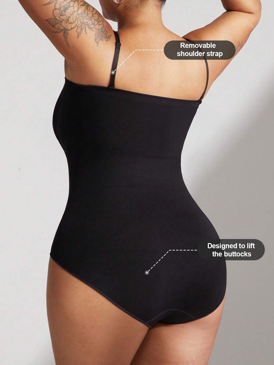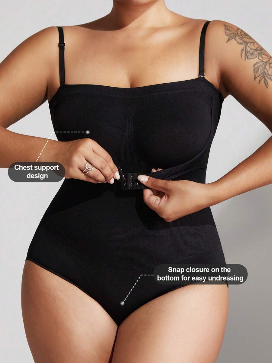 1 pieza body sin costuras moldeador con tirantes extraibles para mujer de talla grande, esculpe el busto/cintura/cadera, color negro, para verano