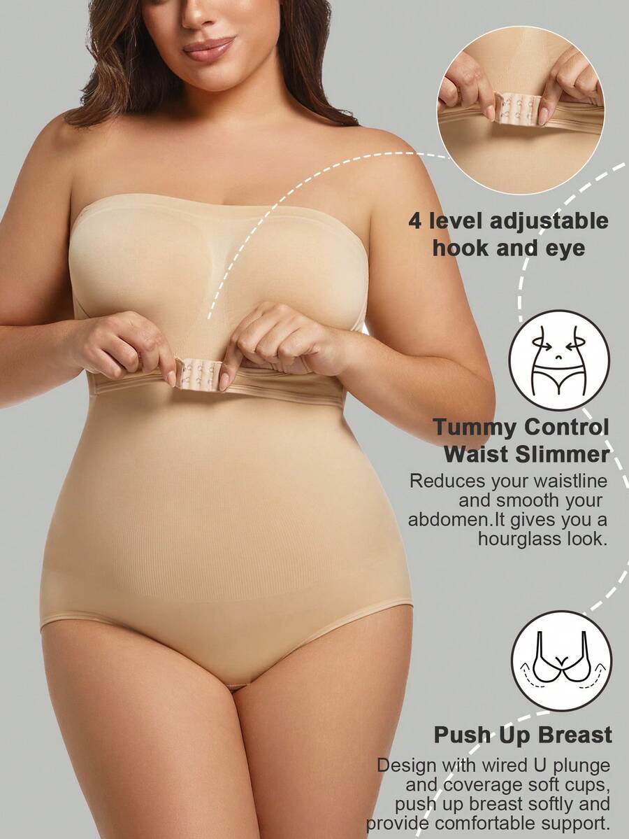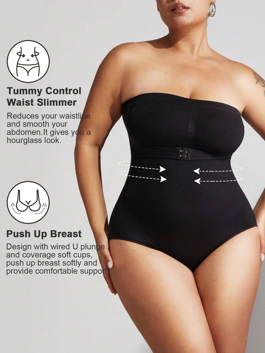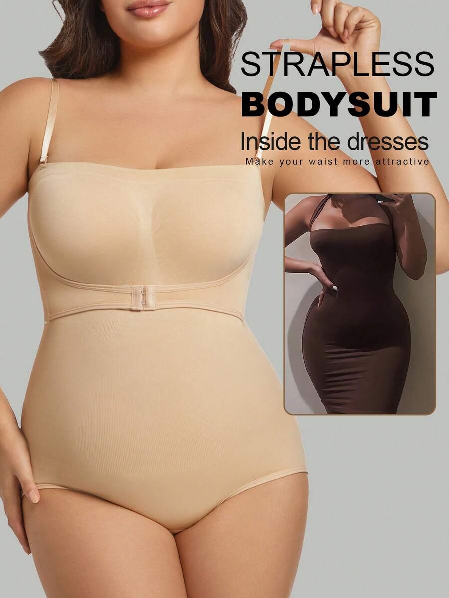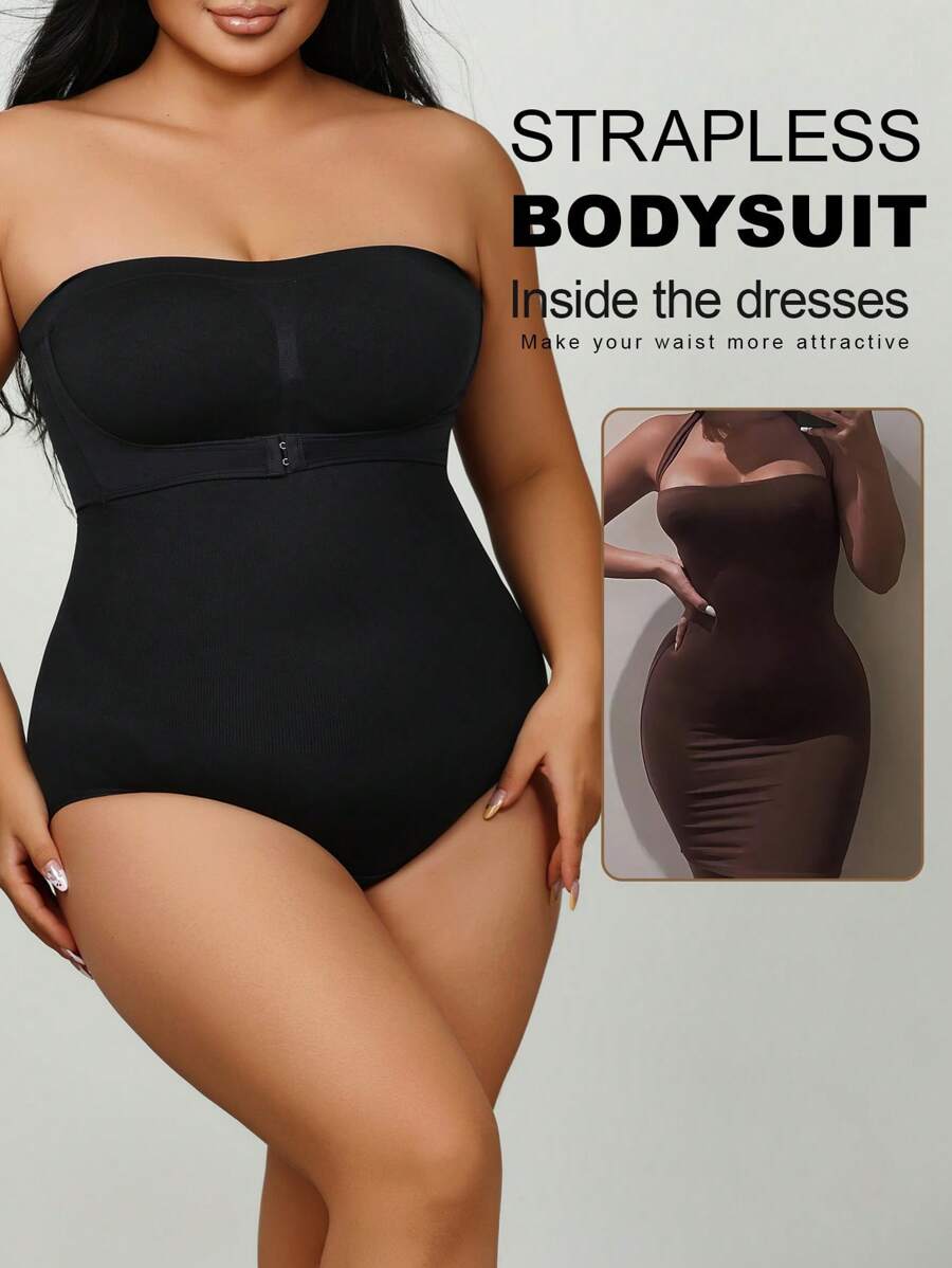 1 pieza body sin costuras moldeador con tirantes extraibles para mujer de talla grande, esculpe el busto/cintura/cadera, color negro, para verano