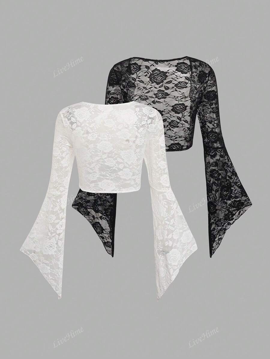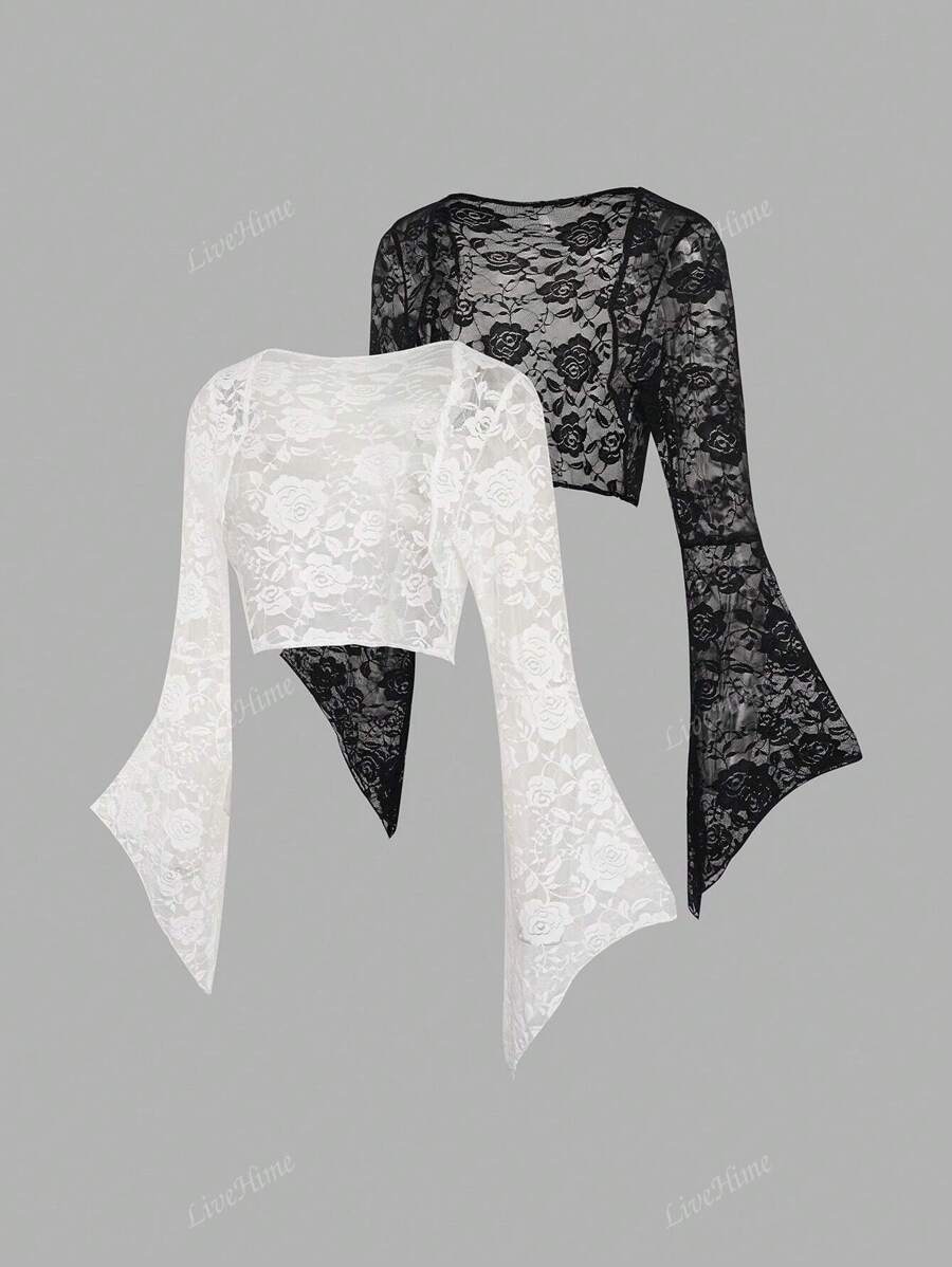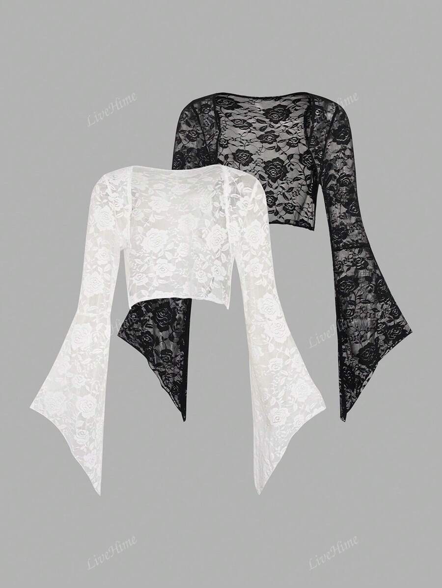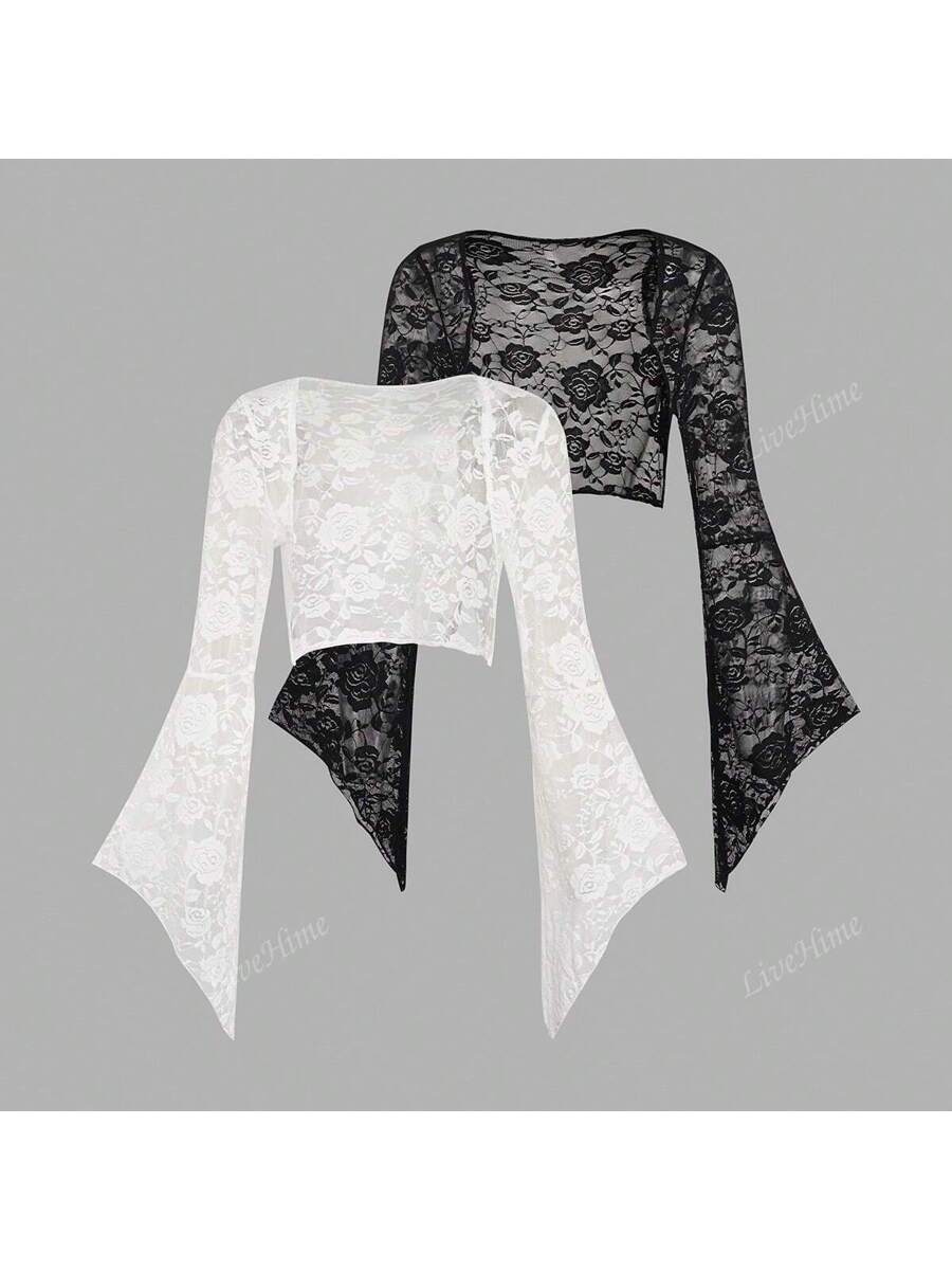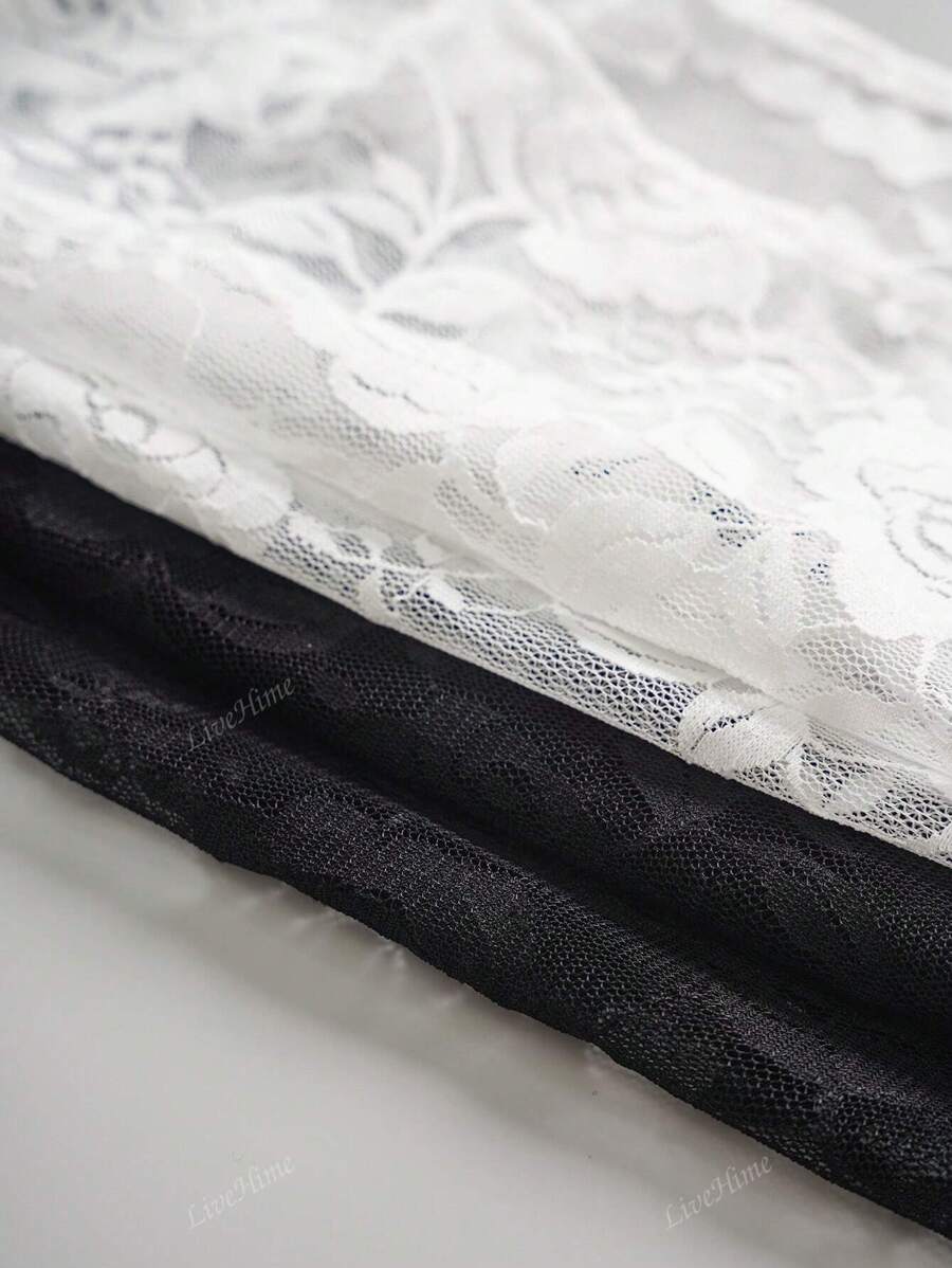 2 piezas cardigan transparente con estampado floral jacquard blanco y negro, para uso diario