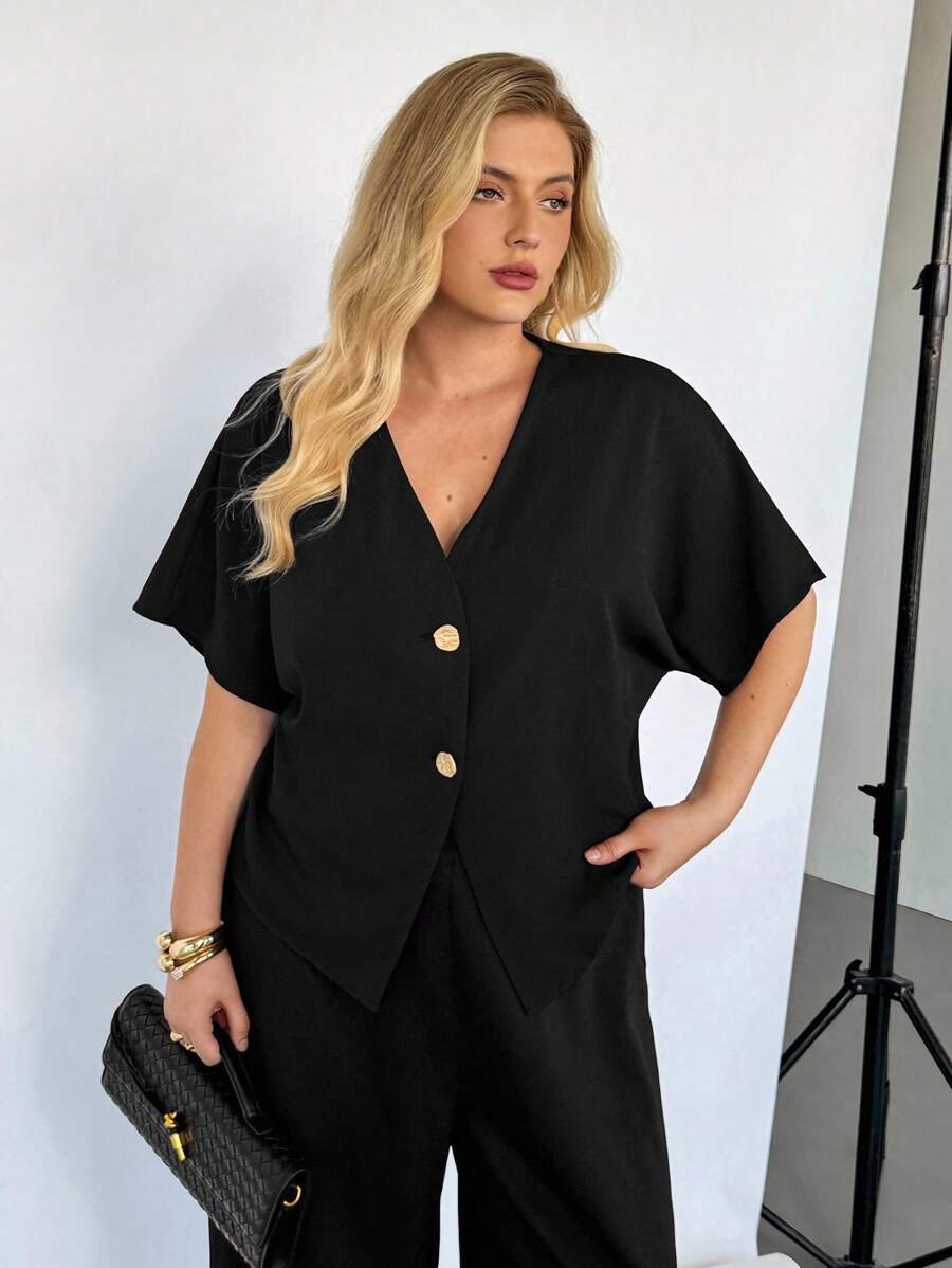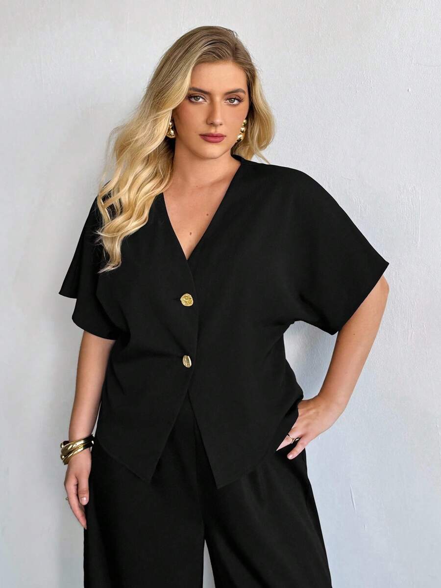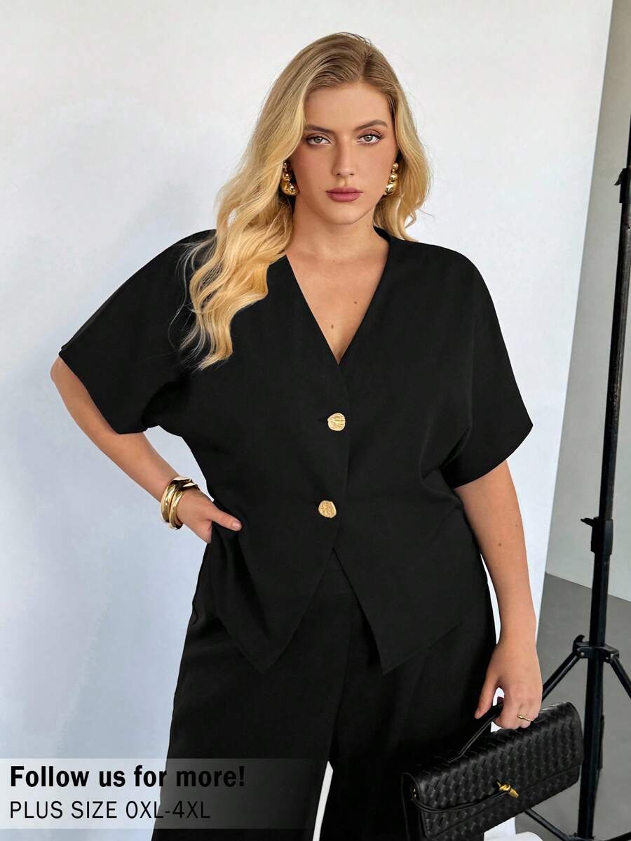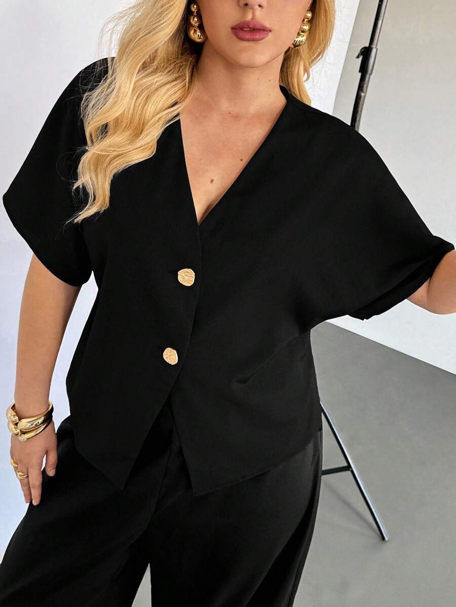 Auralis blusa negra de manga corta para mujer de talla grande, blusa de cardigan de manga corta de verano, blusa casual de negocios para mujer, blusa de verano de moda nueva, blusas lindas para salir, blusas de estilo "old money" para mujer
