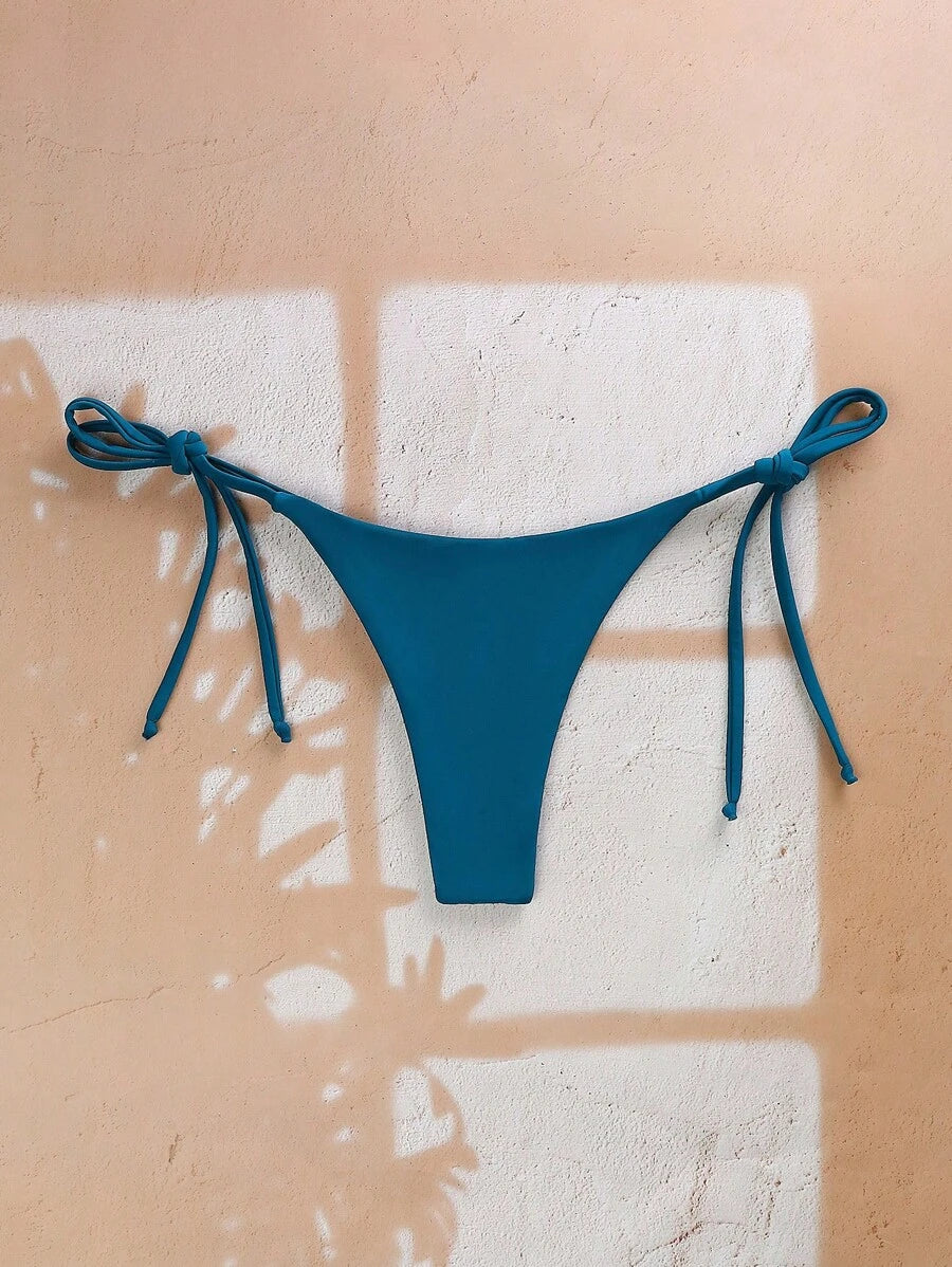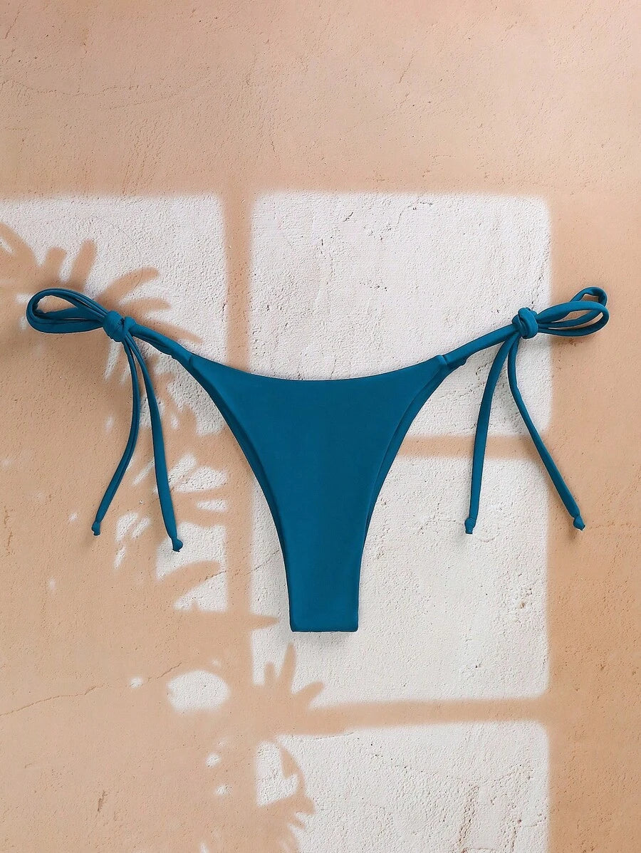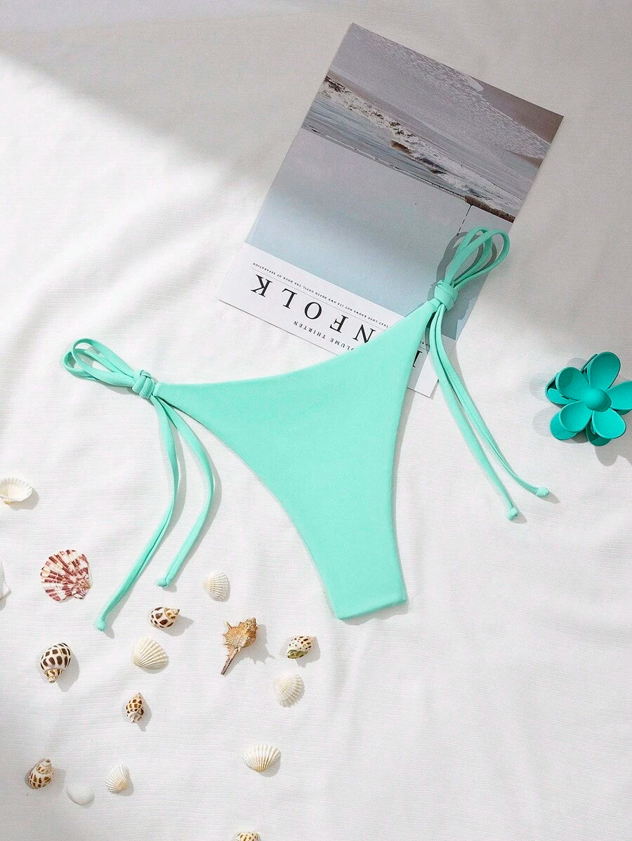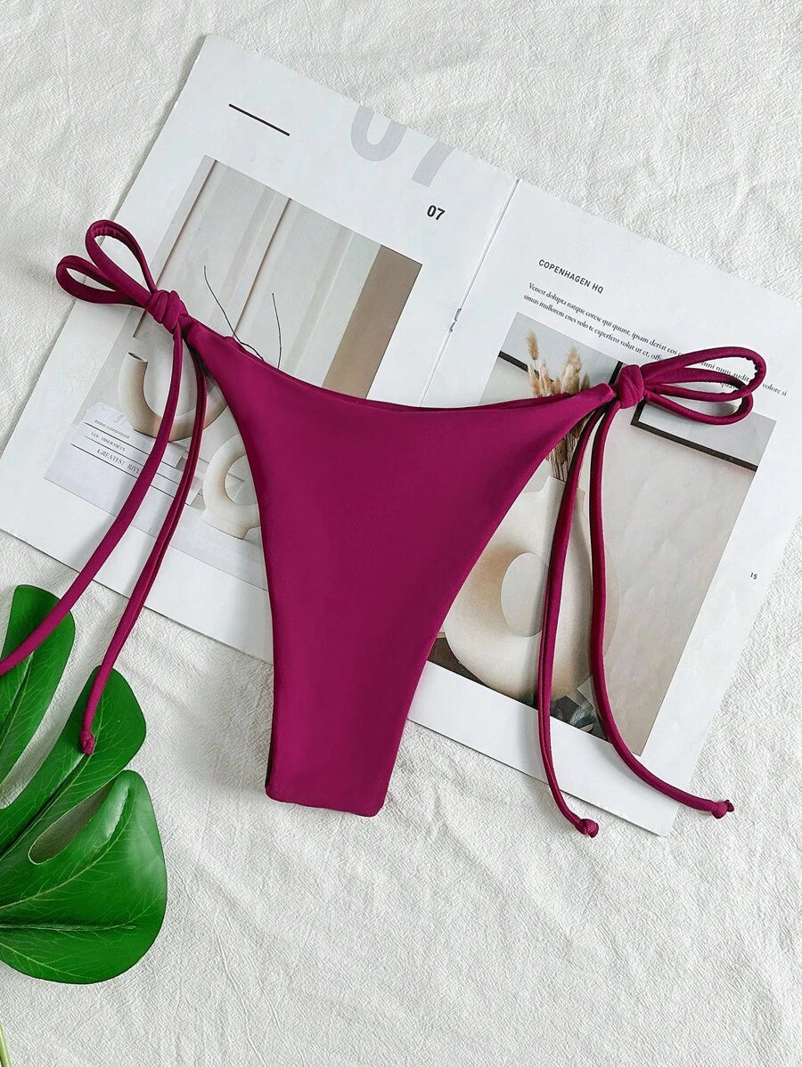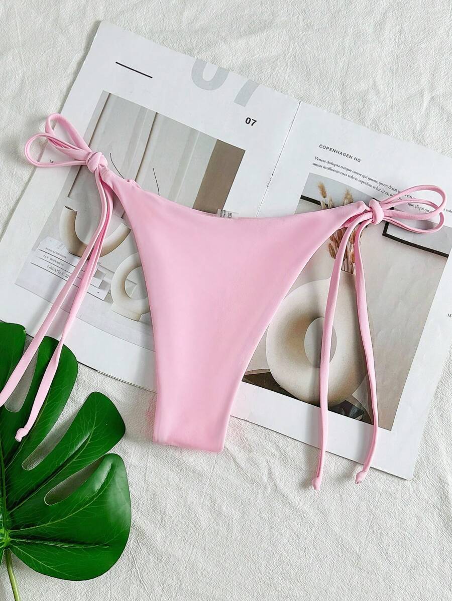 Bottom de bikini de unicolor minimalista con atar a los lados para mujer, ideal para vacaciones en la playa