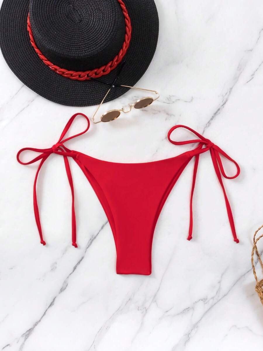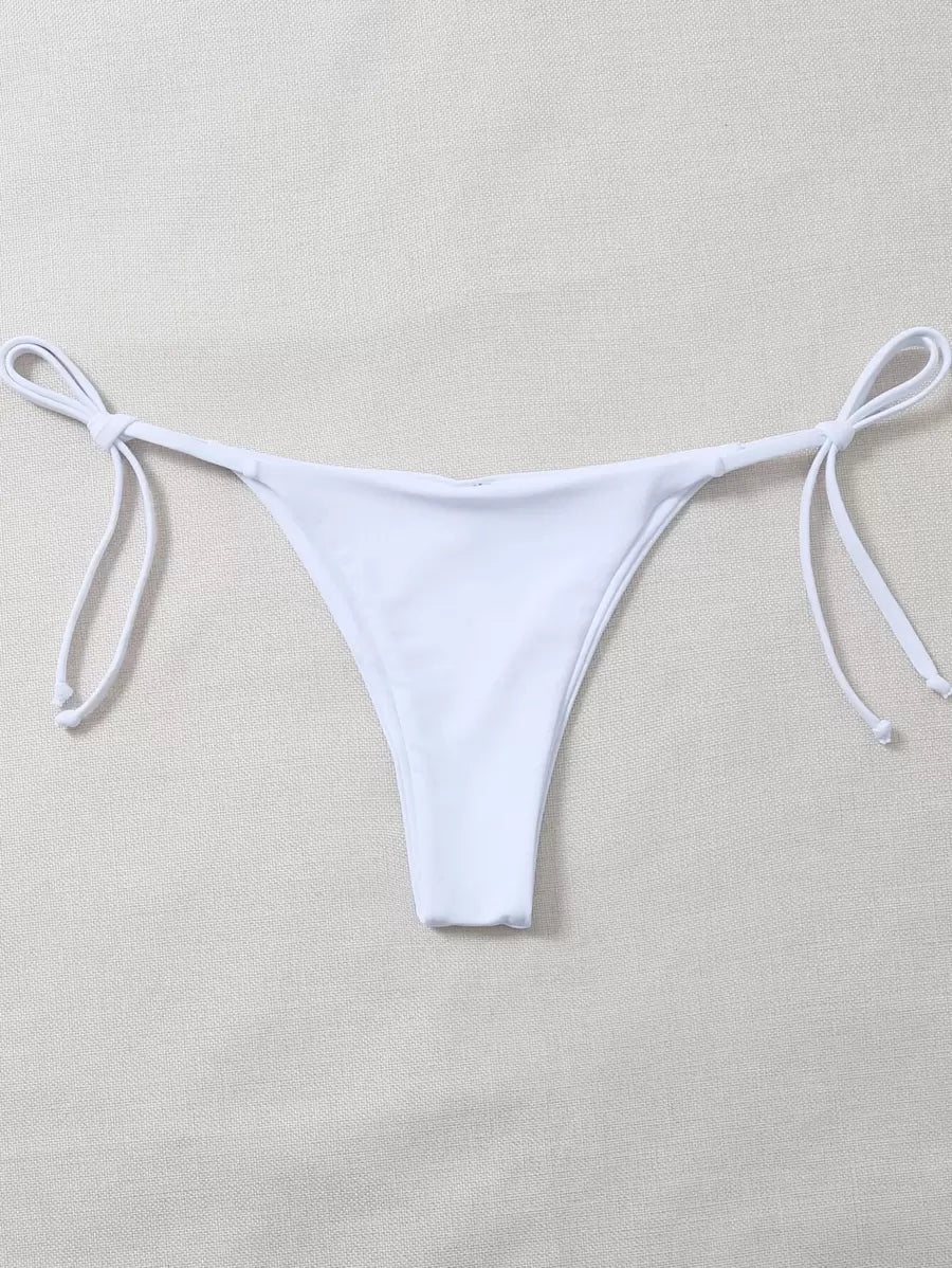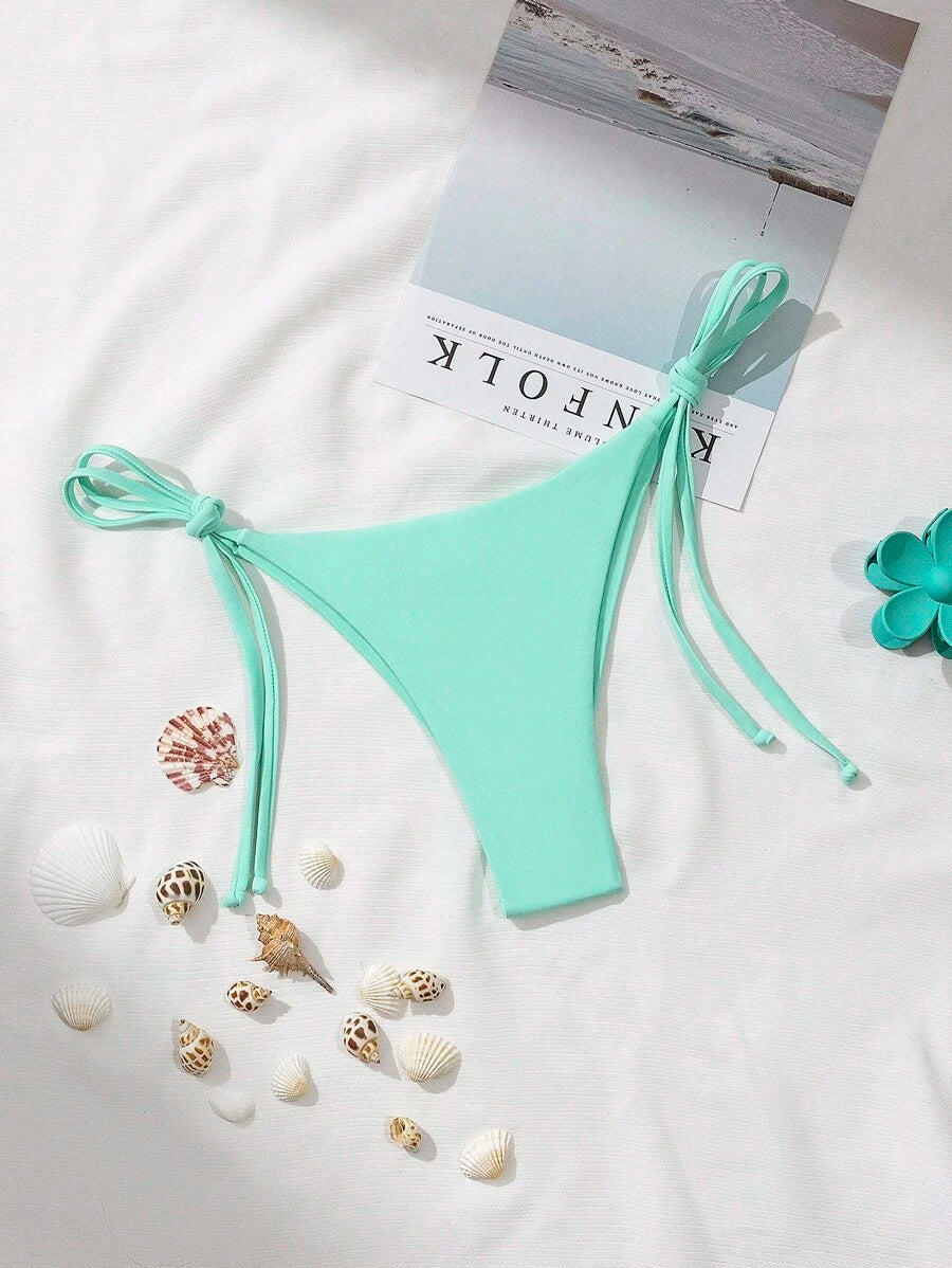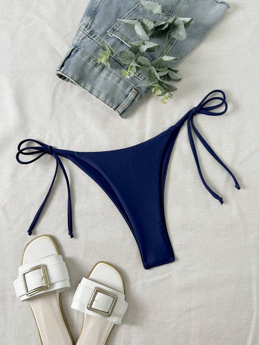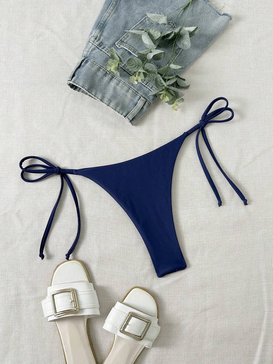 Bottom de bikini de unicolor minimalista con atar a los lados para mujer, ideal para vacaciones en la playa
