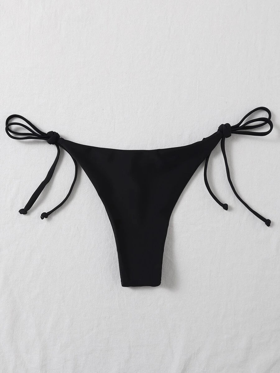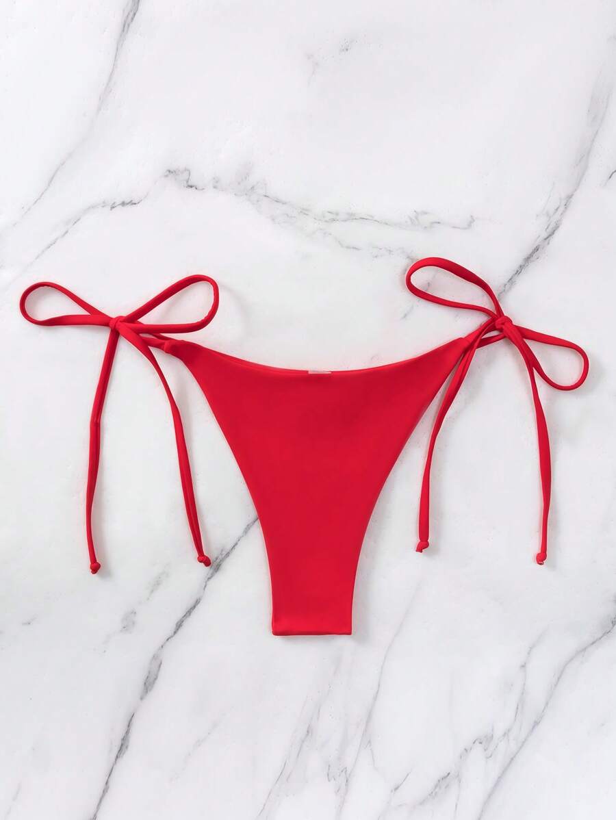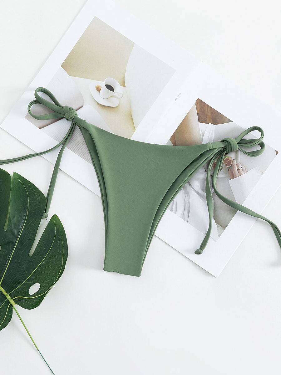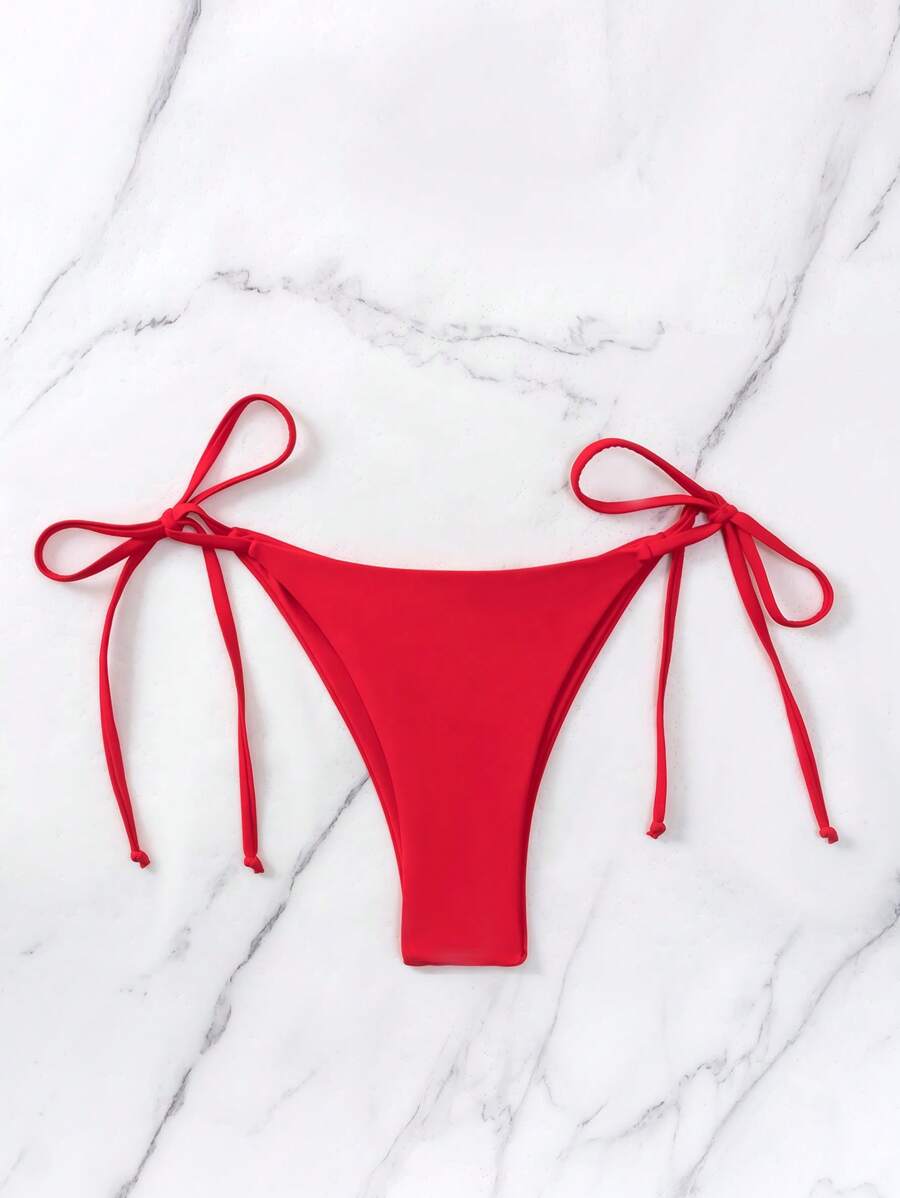 Bottom de bikini de unicolor minimalista con atar a los lados para mujer, ideal para vacaciones en la playa