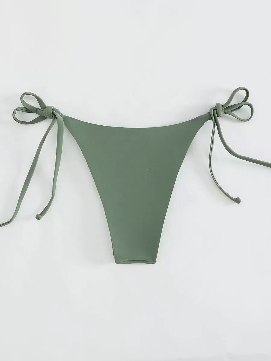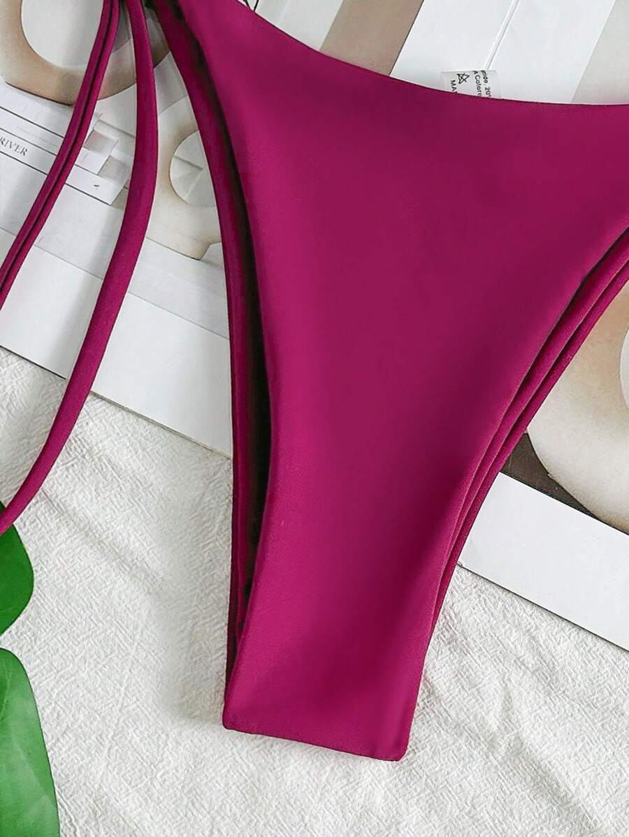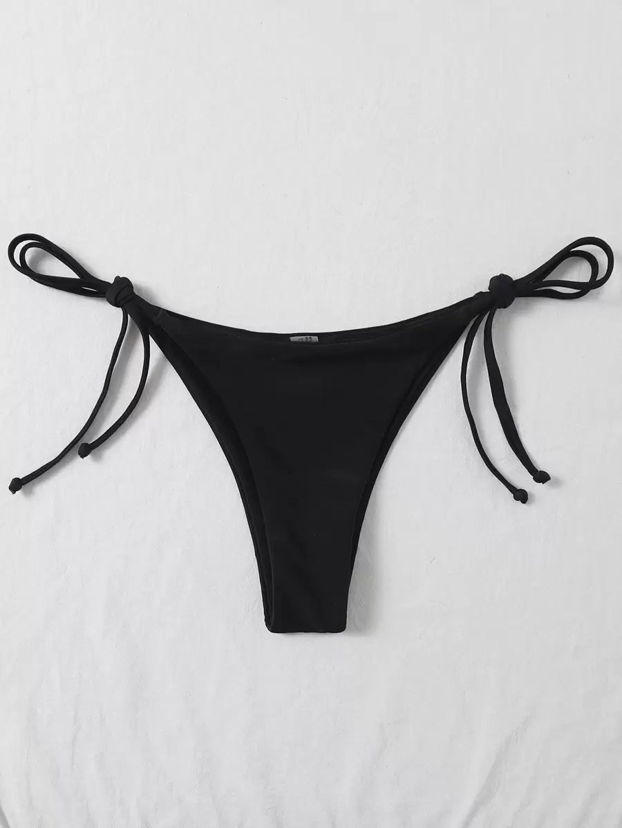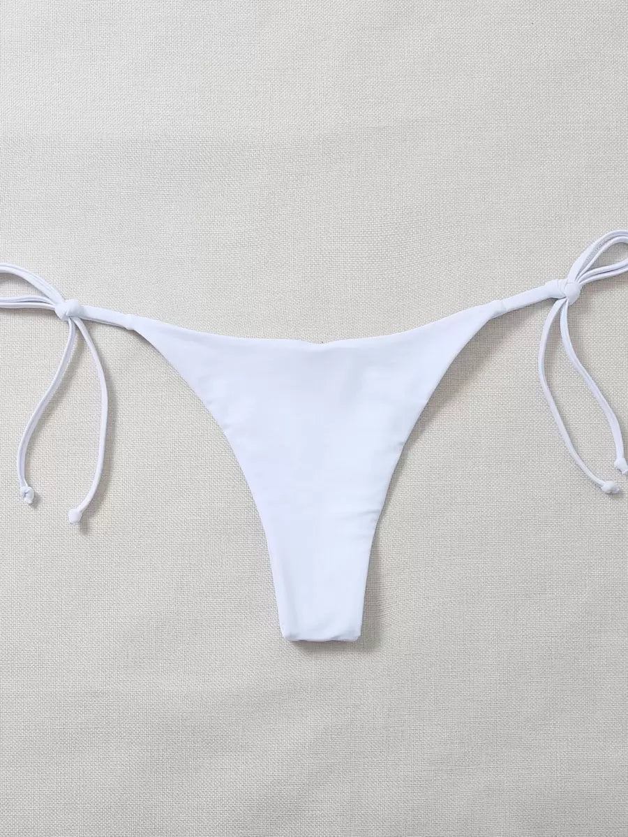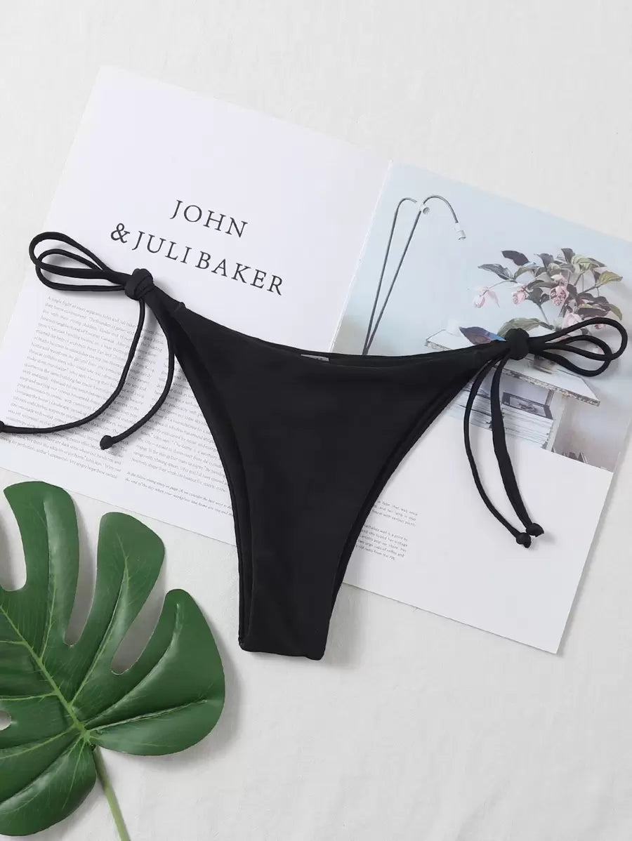 Bottom de bikini de unicolor minimalista con atar a los lados para mujer, ideal para vacaciones en la playa
