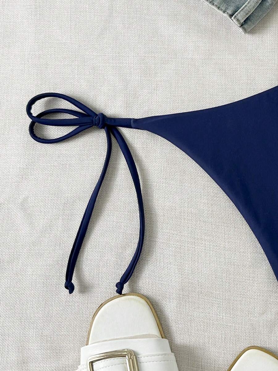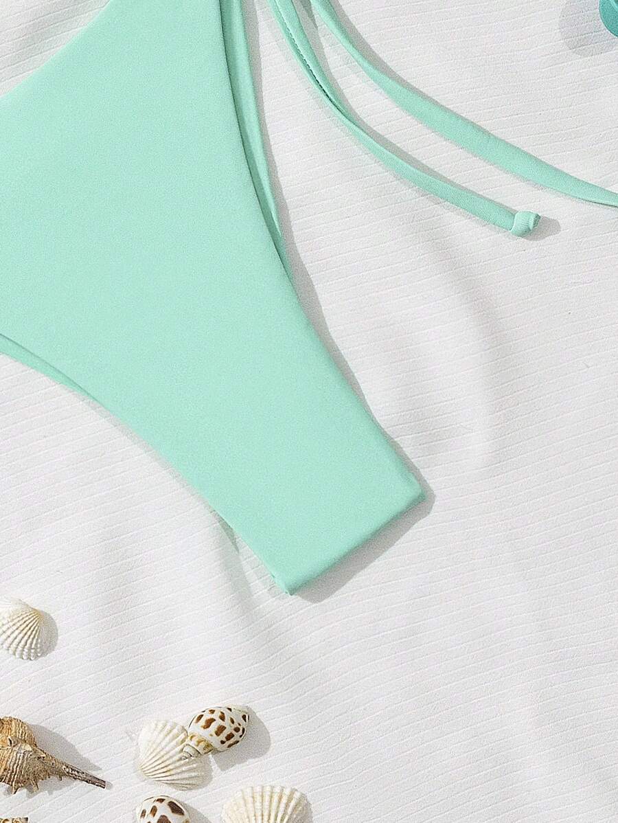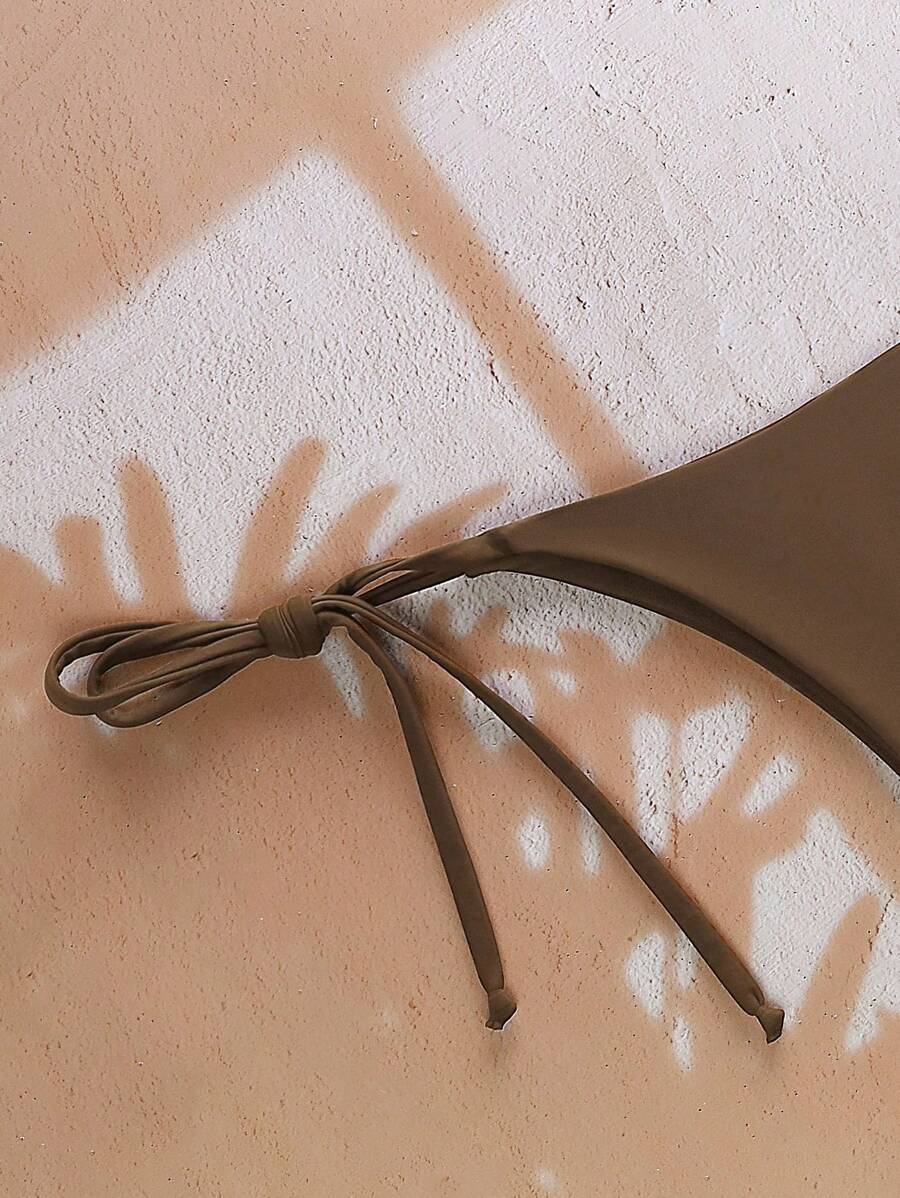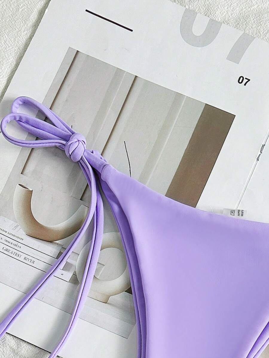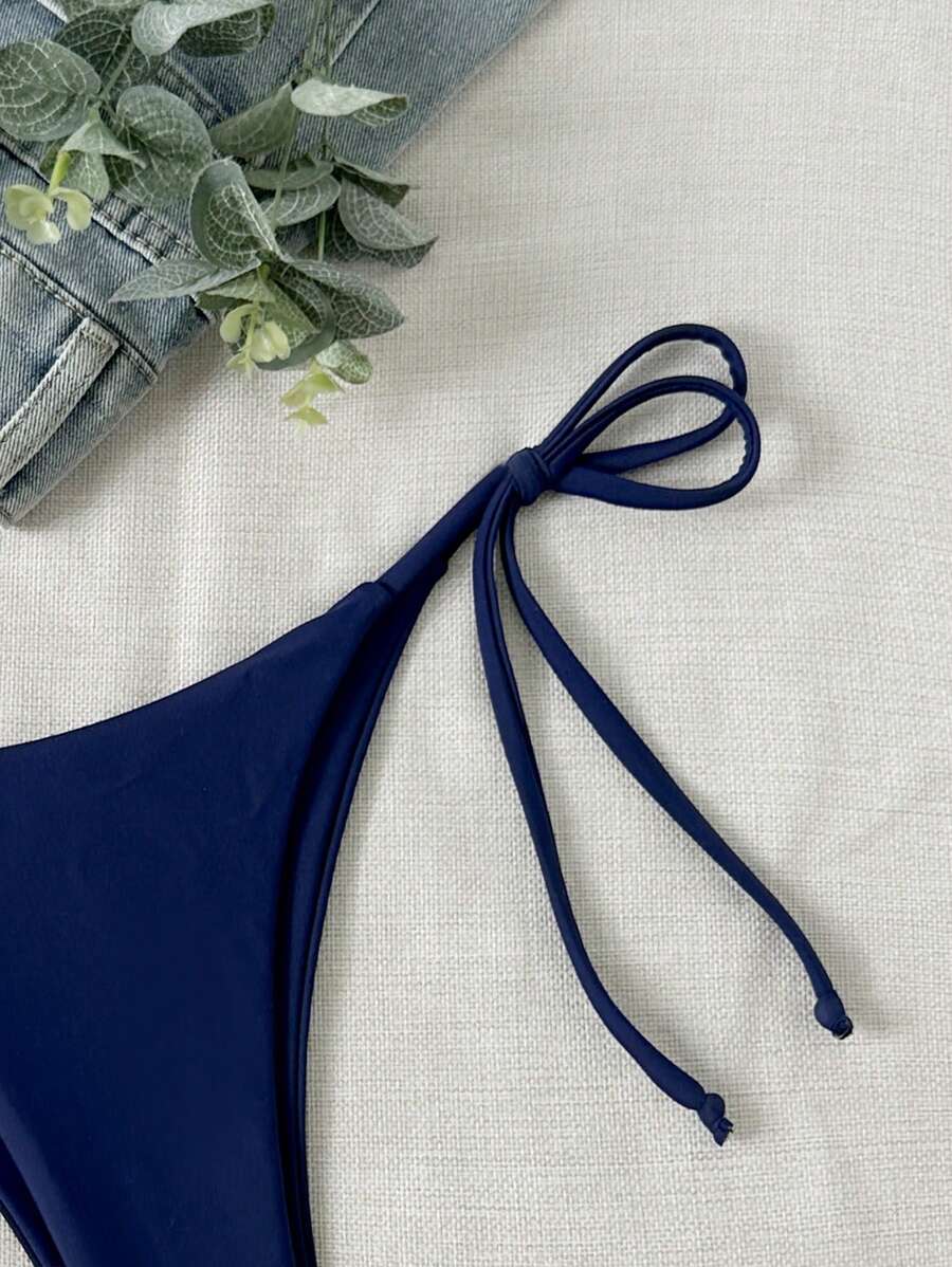 Bottom de bikini de unicolor minimalista con atar a los lados para mujer, ideal para vacaciones en la playa