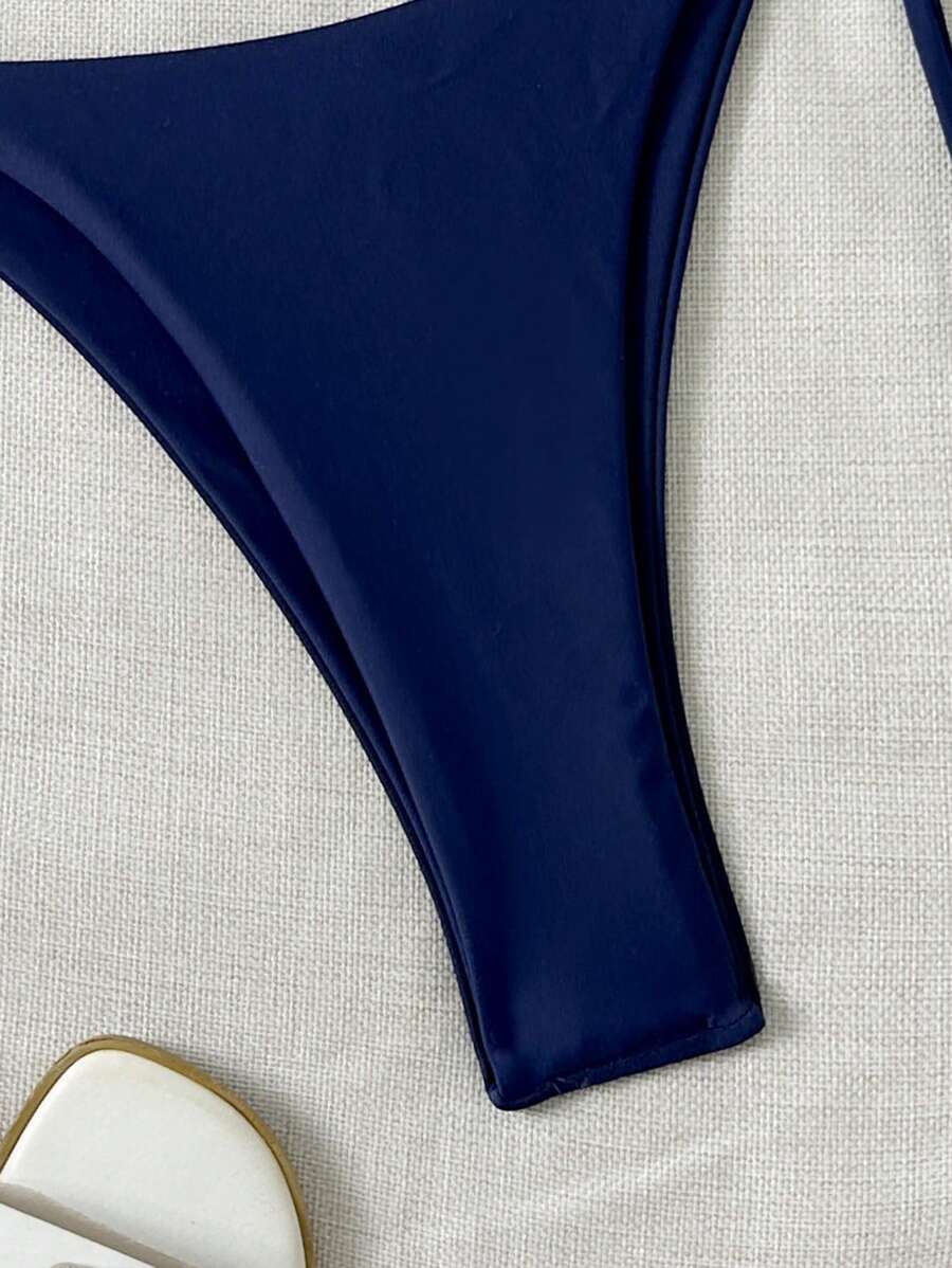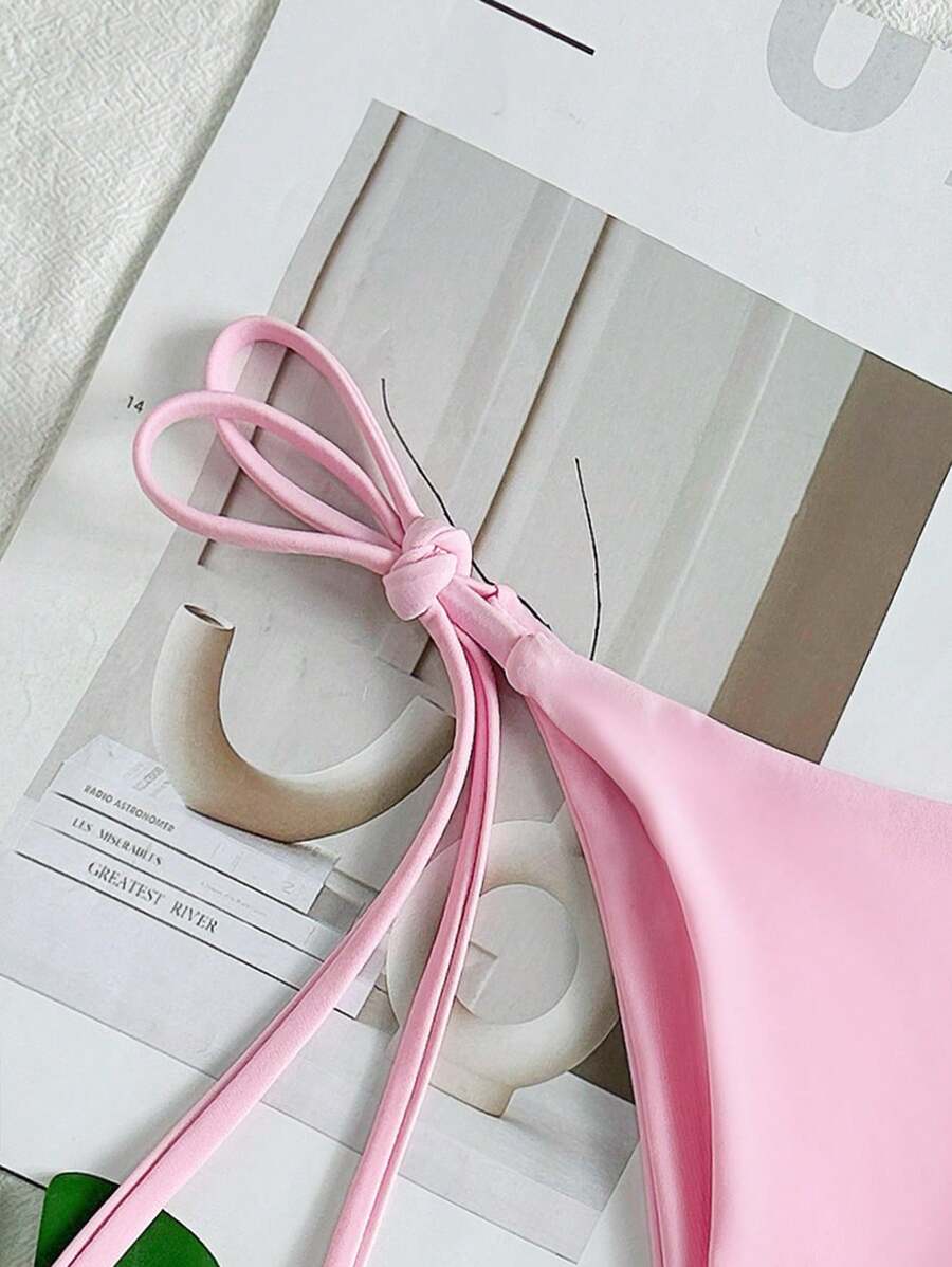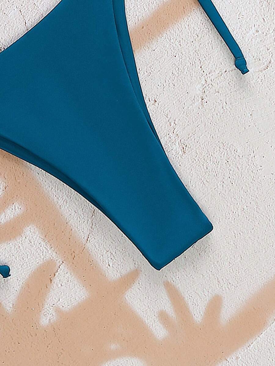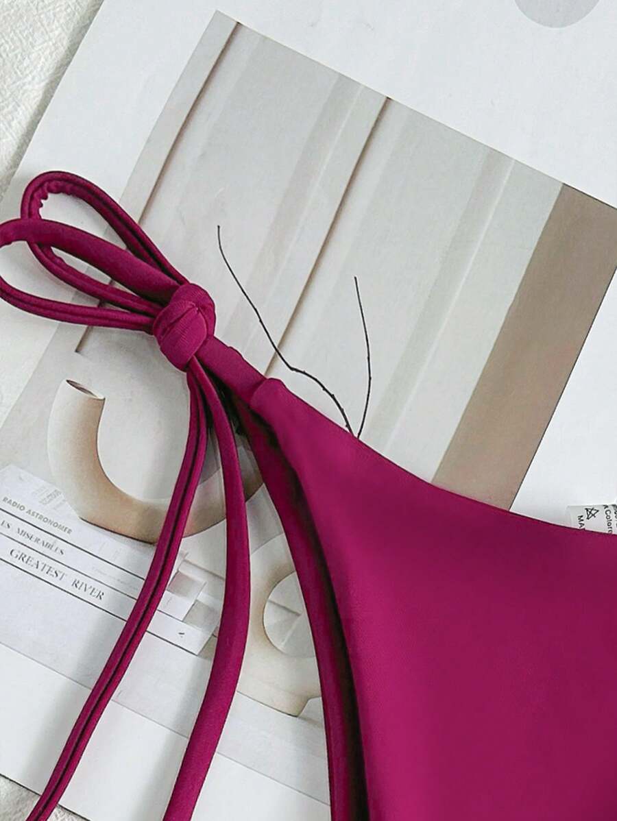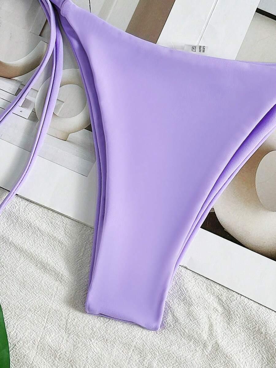 Bottom de bikini de unicolor minimalista con atar a los lados para mujer, ideal para vacaciones en la playa