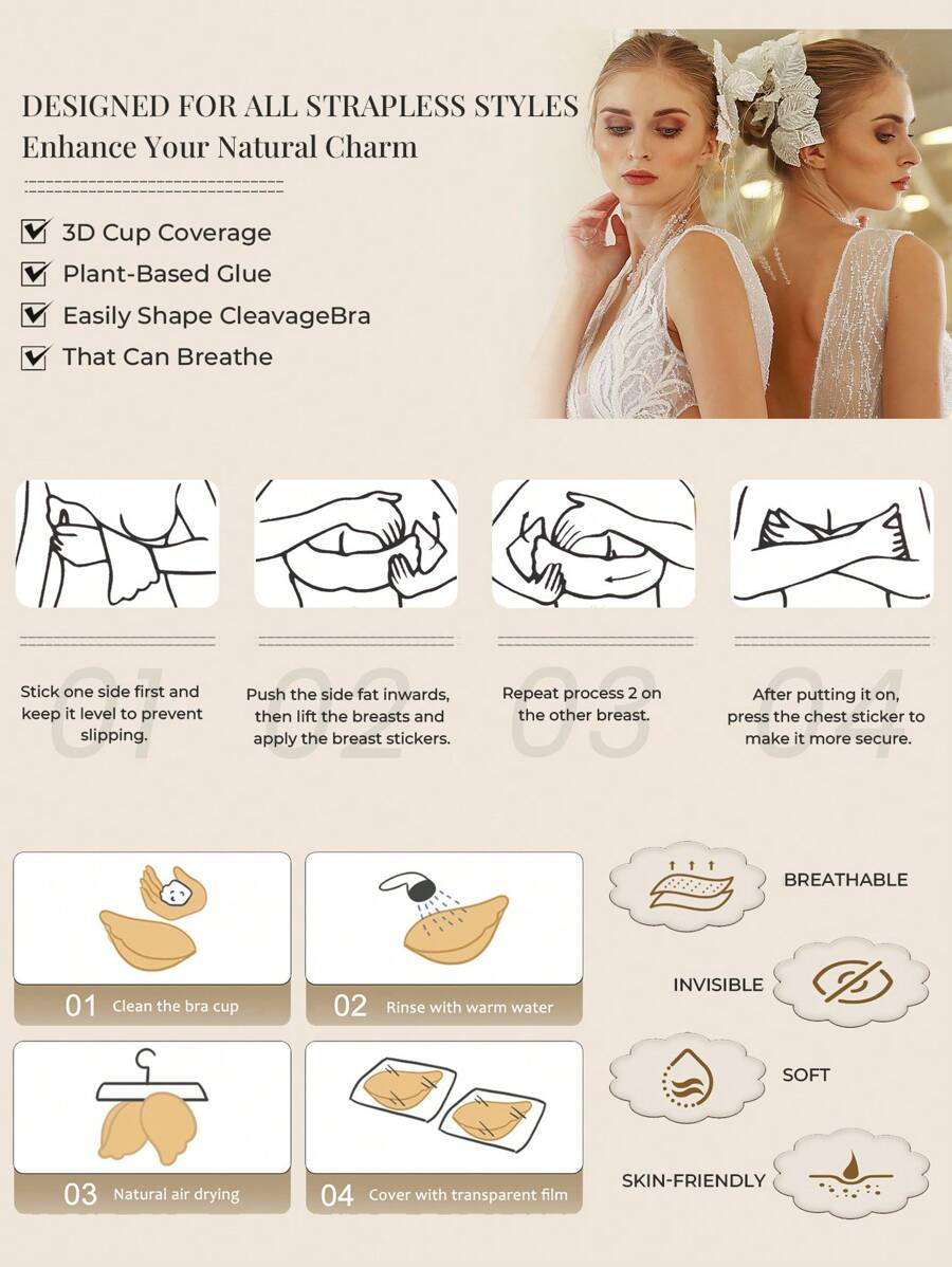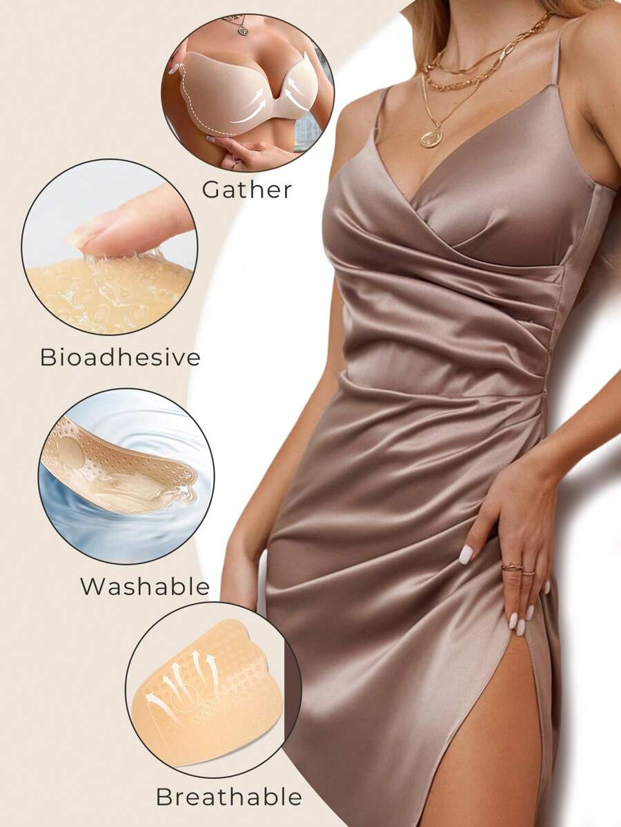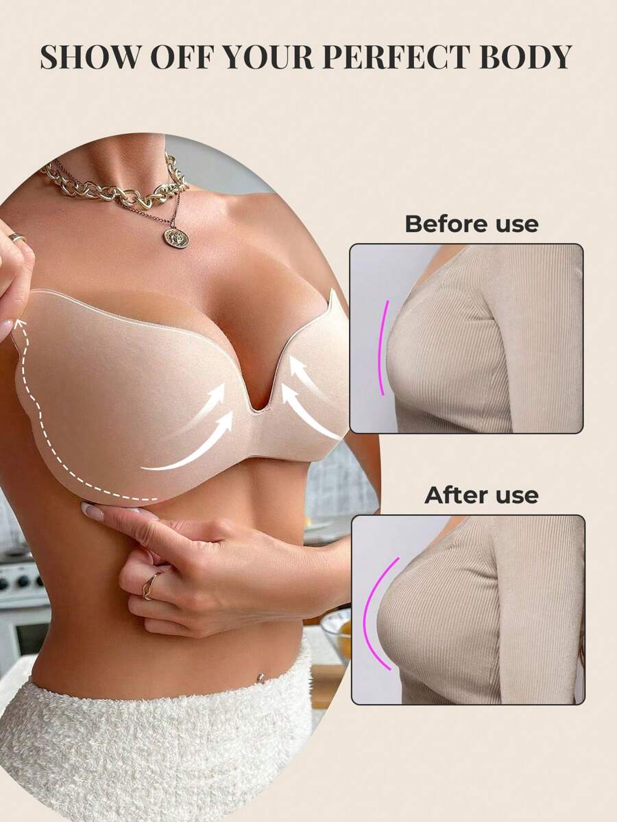 1/2 piezas brasier adhesivo push up - brasier sin tirantes y sin espalda autoadhesivo para mujeres, con soporte transpirable e invisible para vestidos, vestidos de novia y atuendos de verano