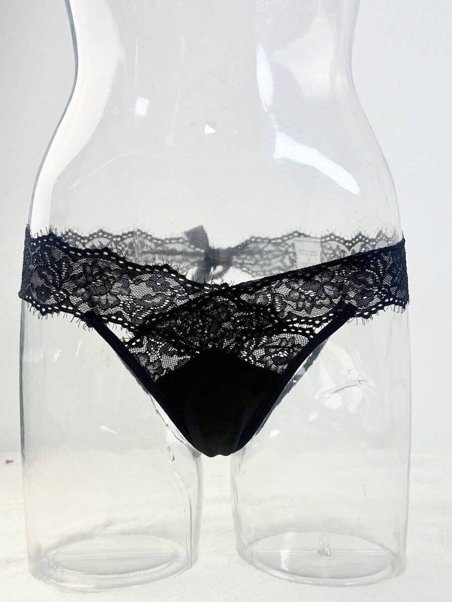 Bragas de lenceria con abertura en la entrepierna, decoradas con encaje y lazo, de estilo clasico y sexy