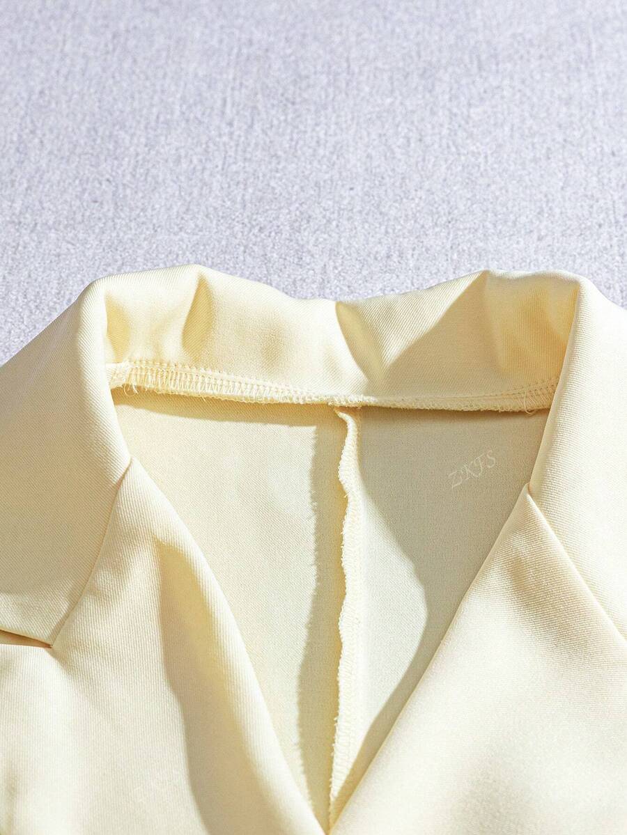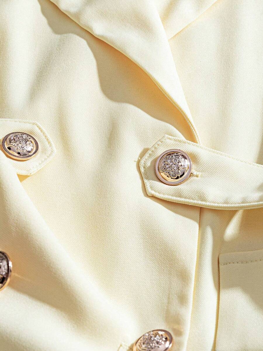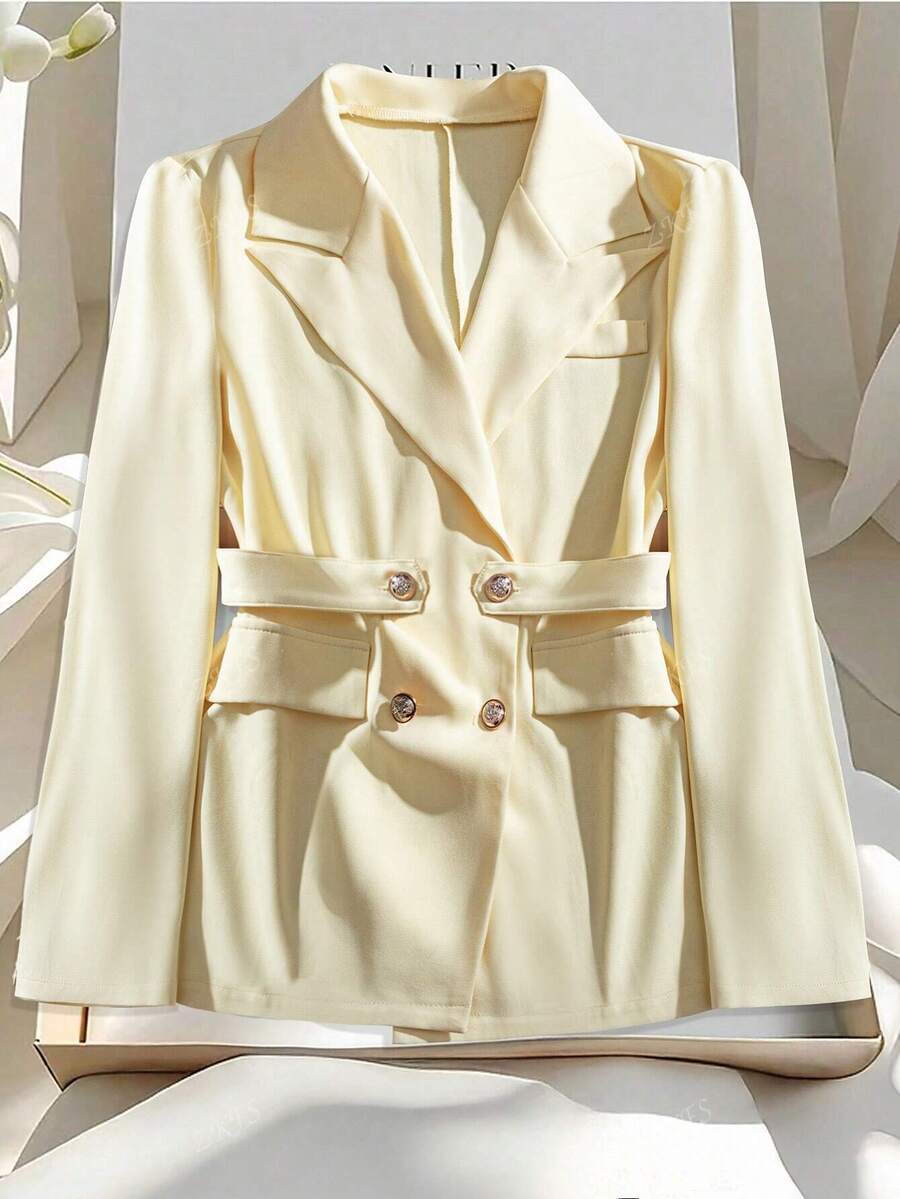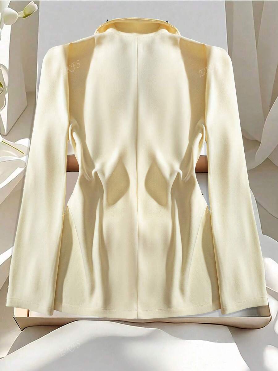 1 pieza chaqueta de traje de oficina de mujer de tela tejida de unicolor con doble boton
