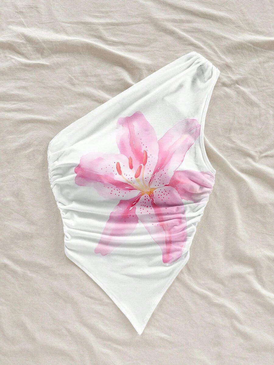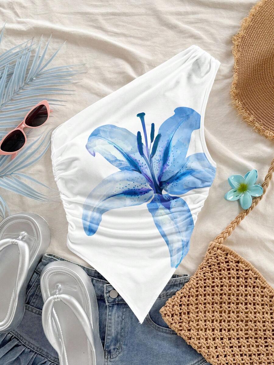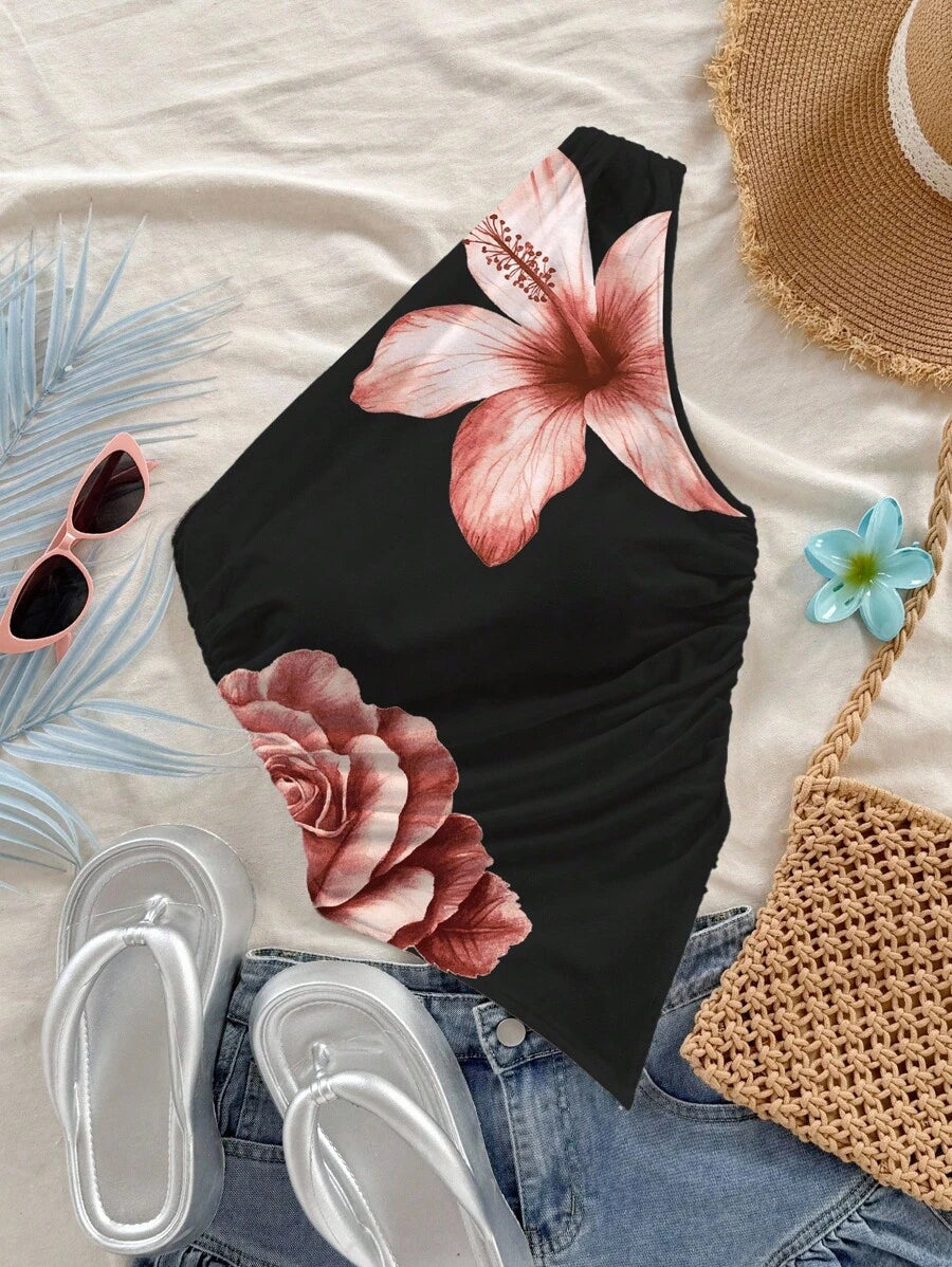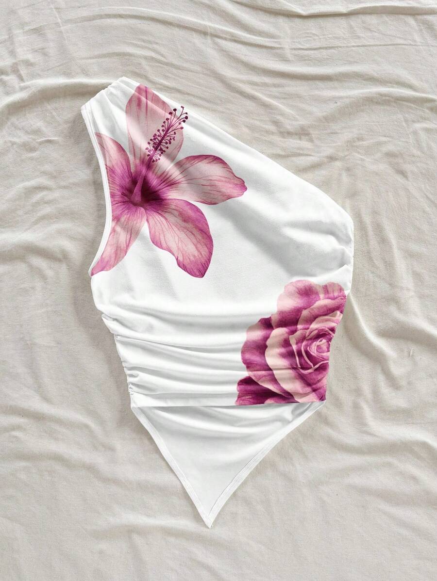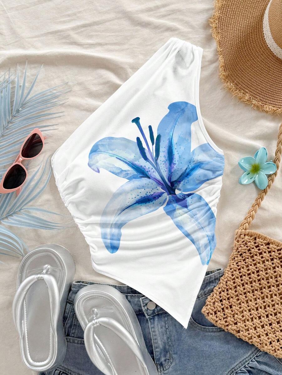 Blusa roja con dobladillo asimetrico que revela los hombros, adecuada para el verano