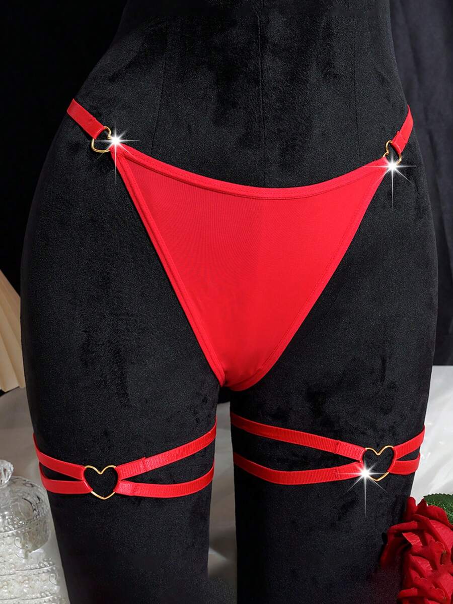 Bragas encantadoras, maduras y sexis de tela de punto con hebilla en forma de corazon roja (con anillos para los muslos)