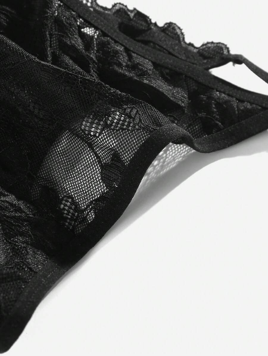 Lenceria sexy de tanga de encaje floral con tiro bajo
