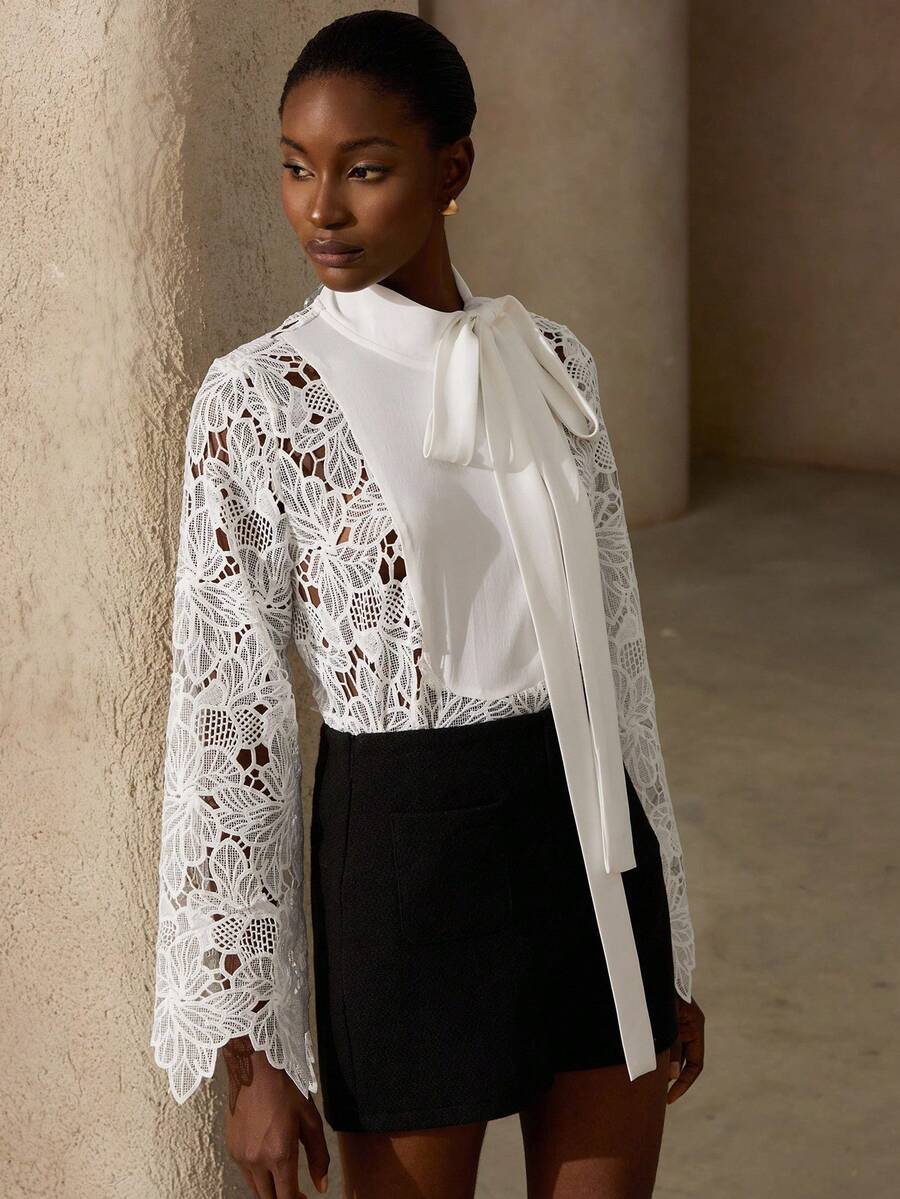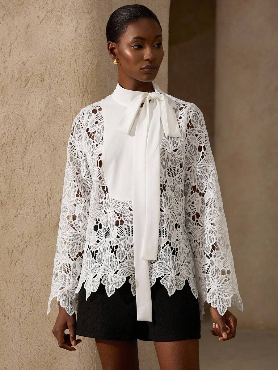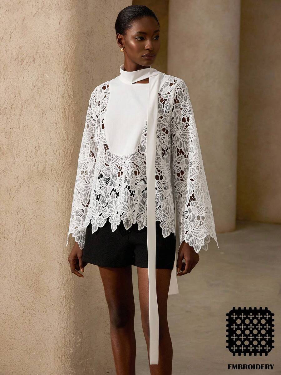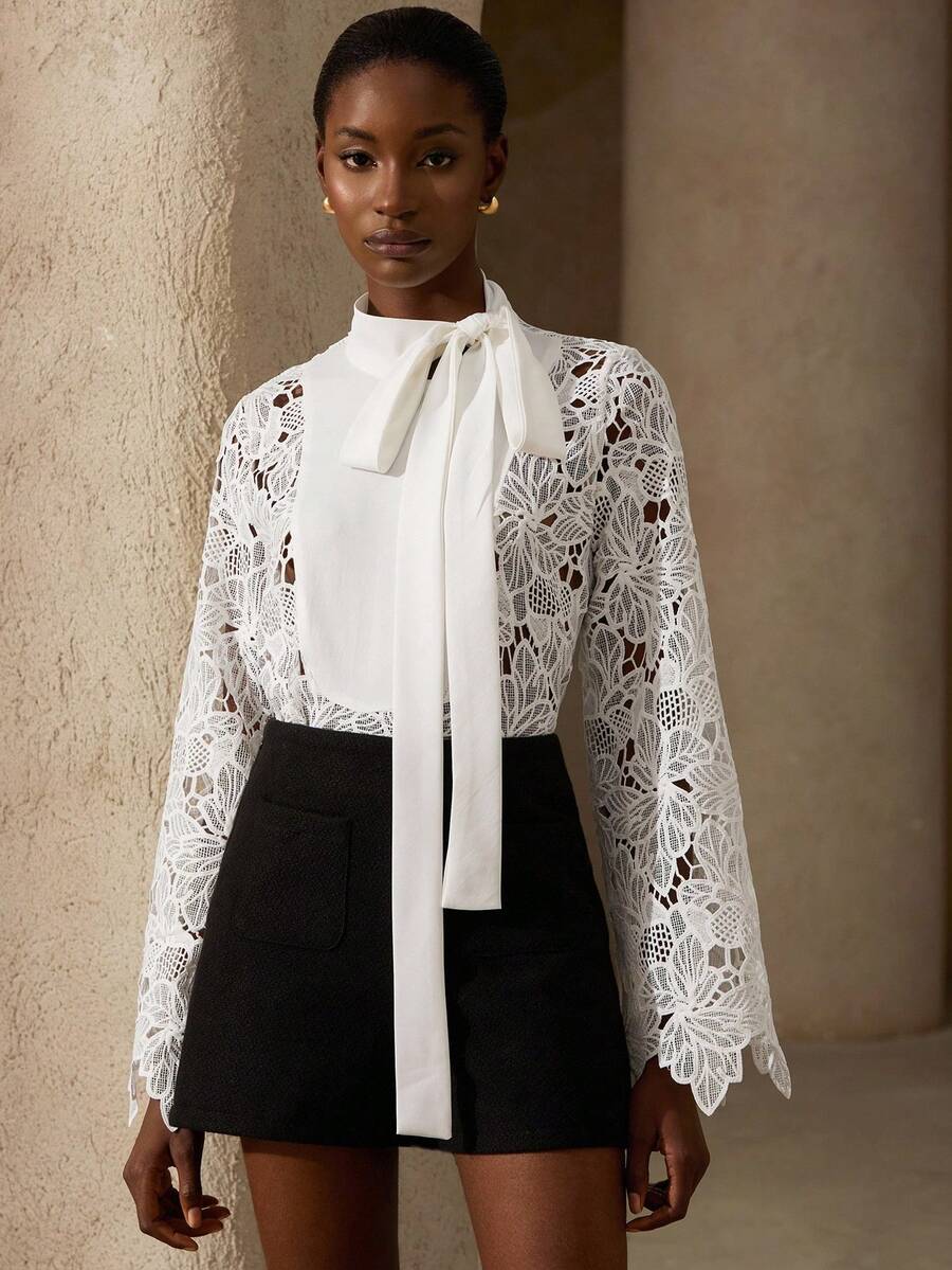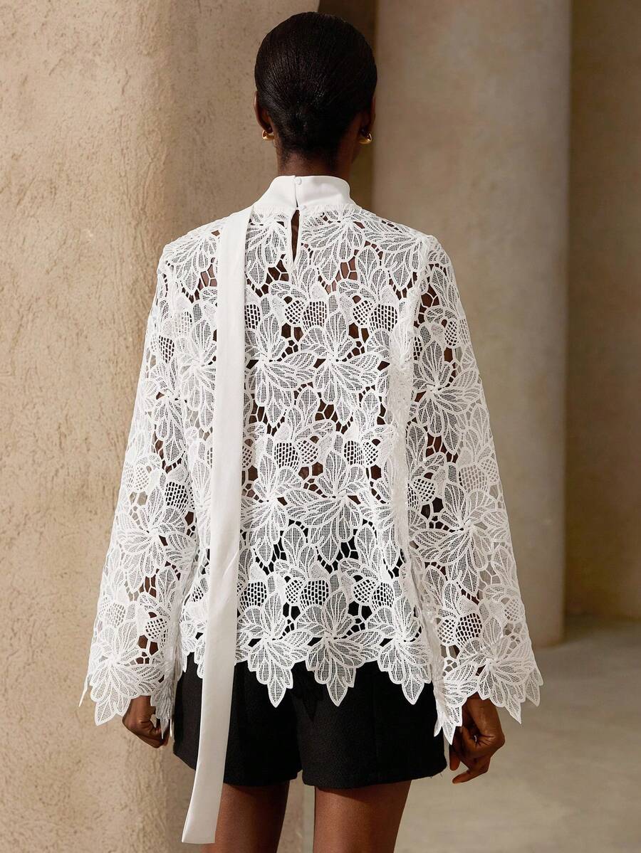 Aveloria rosie blusa elegante francesa de puro blanco con bordado floral romantico, cuello de parche y volantes en el bajo para mujeres
