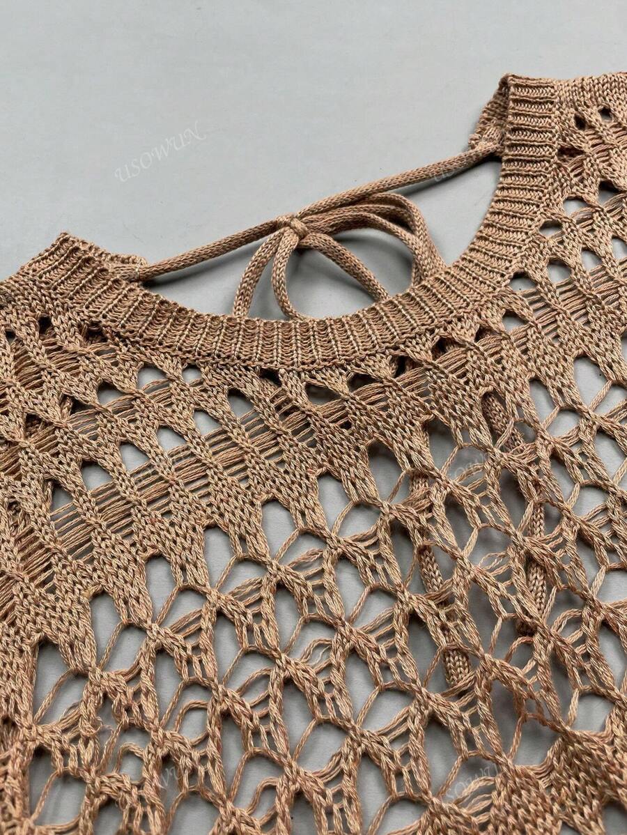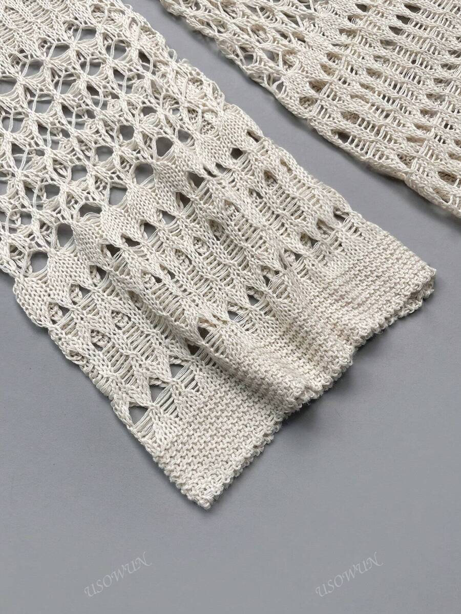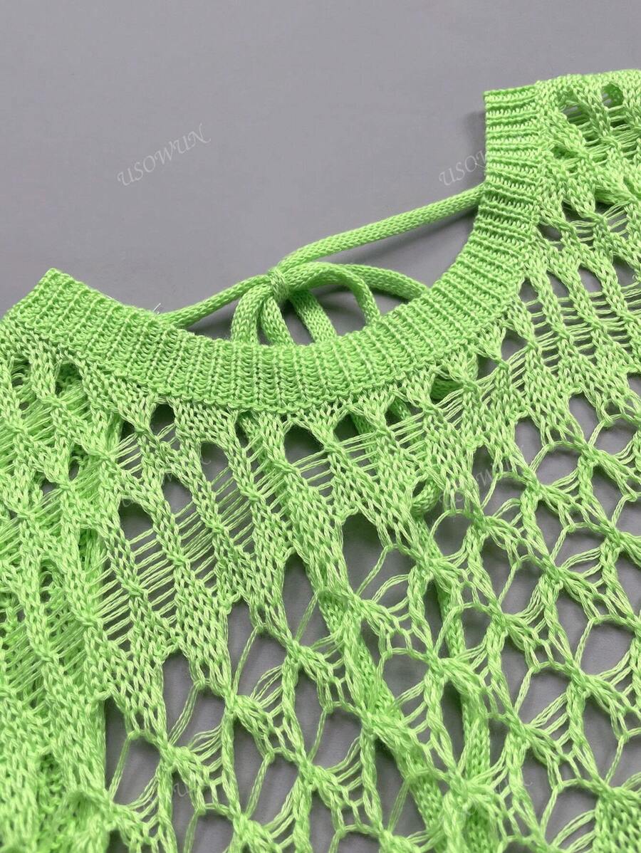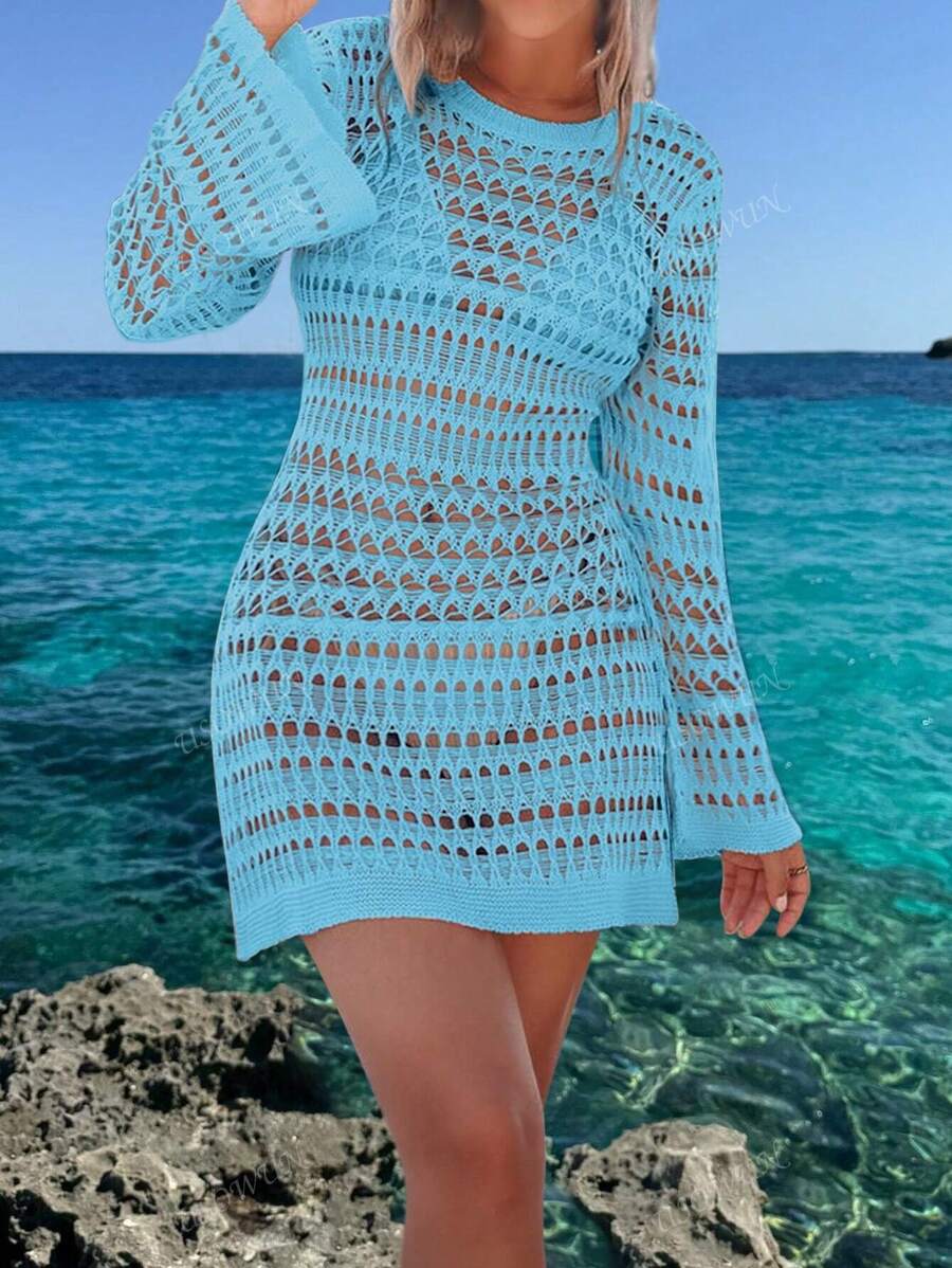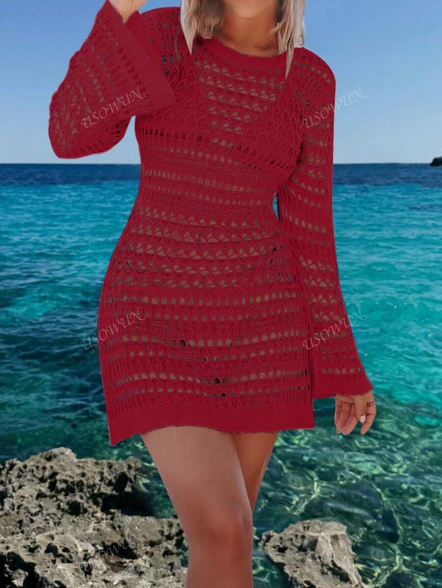 Vestido crochet de manga larga con espalda descubierta, estilo bohemio y sexy, para uso como cubrecosturas en la playa, de color amarillo pollito para mujer, para primavera y verano