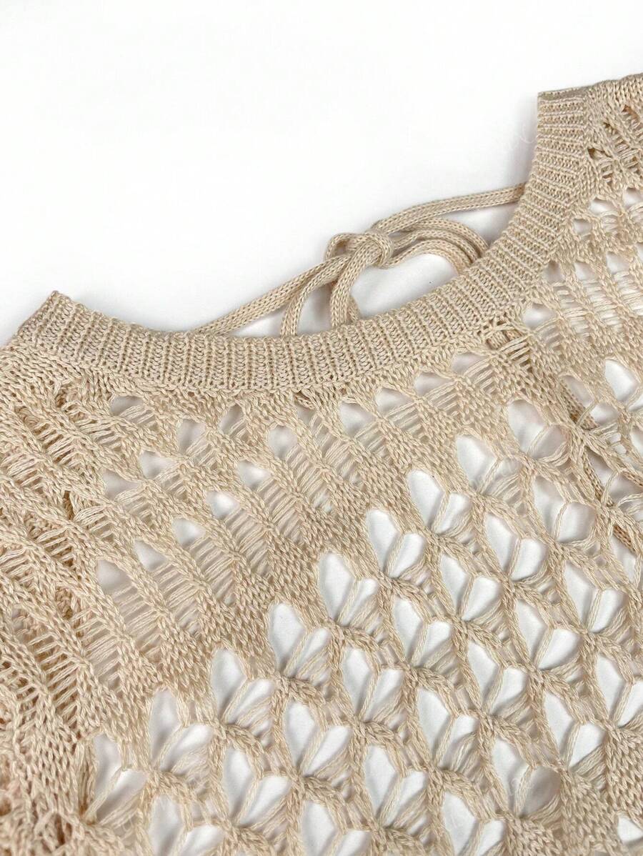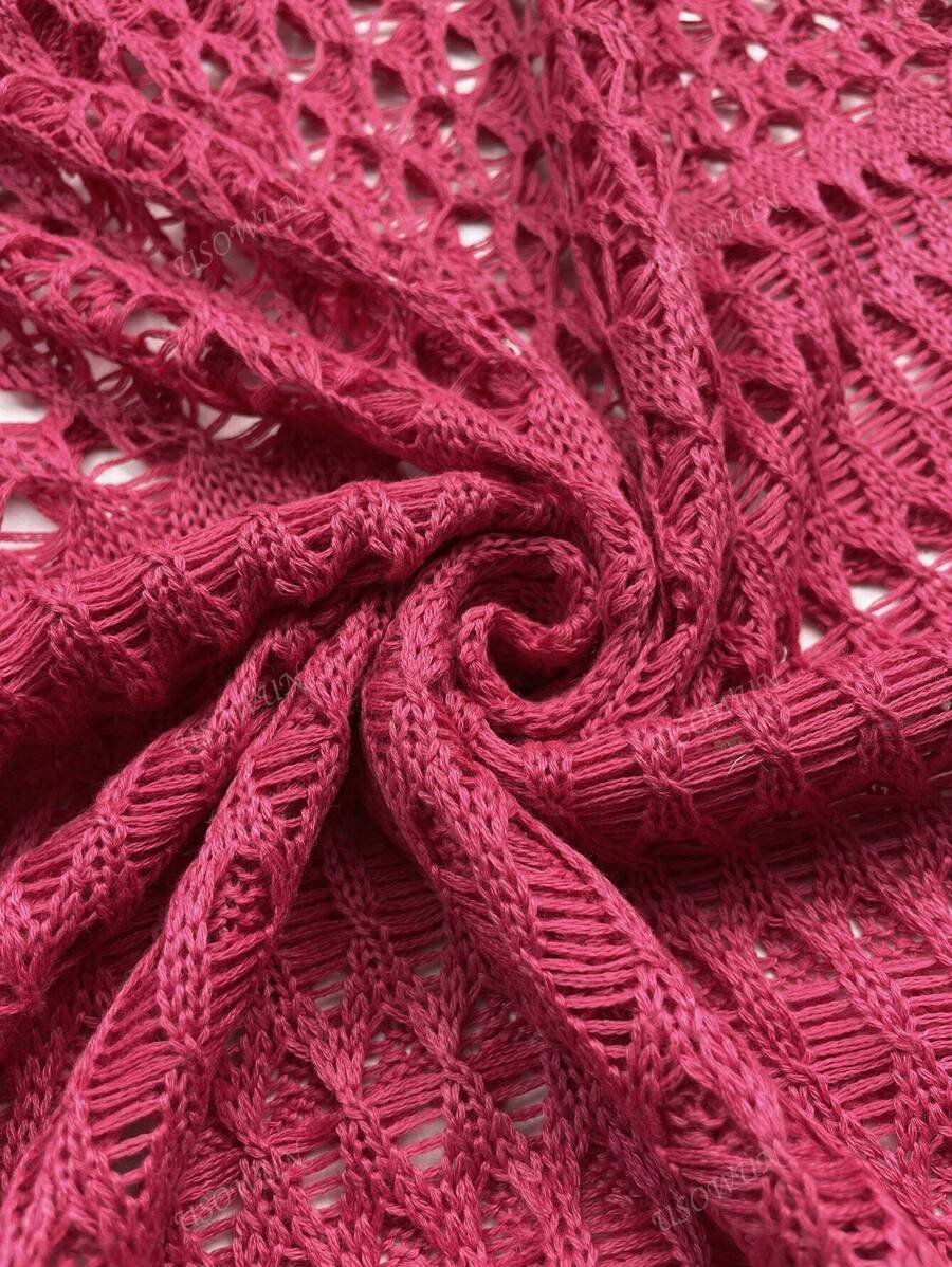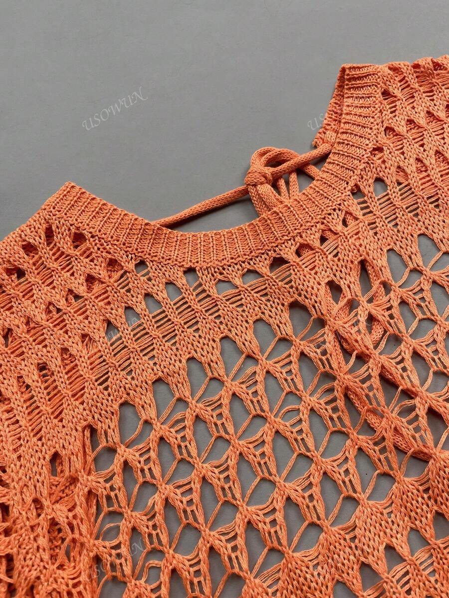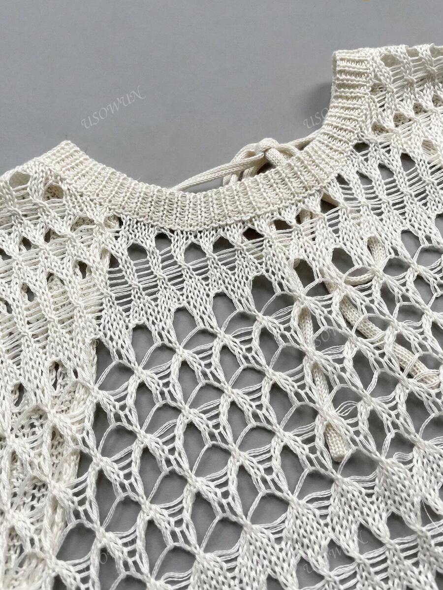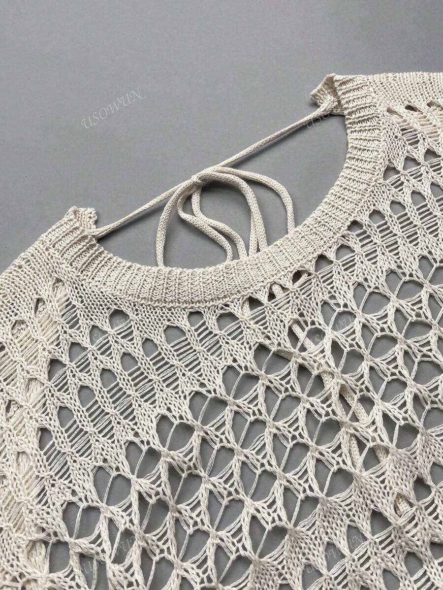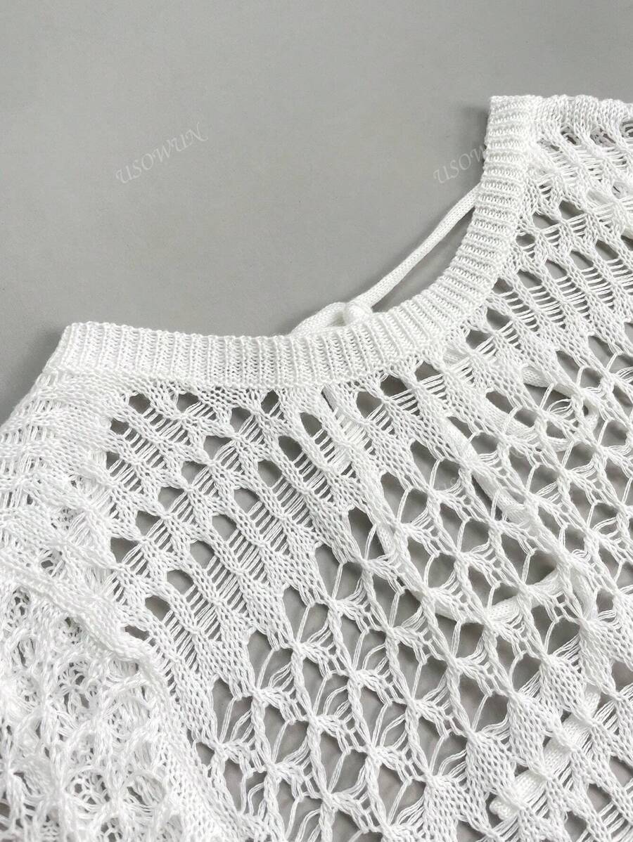 Vestido crochet de manga larga con espalda descubierta, estilo bohemio y sexy, para uso como cubrecosturas en la playa, de color amarillo pollito para mujer, para primavera y verano