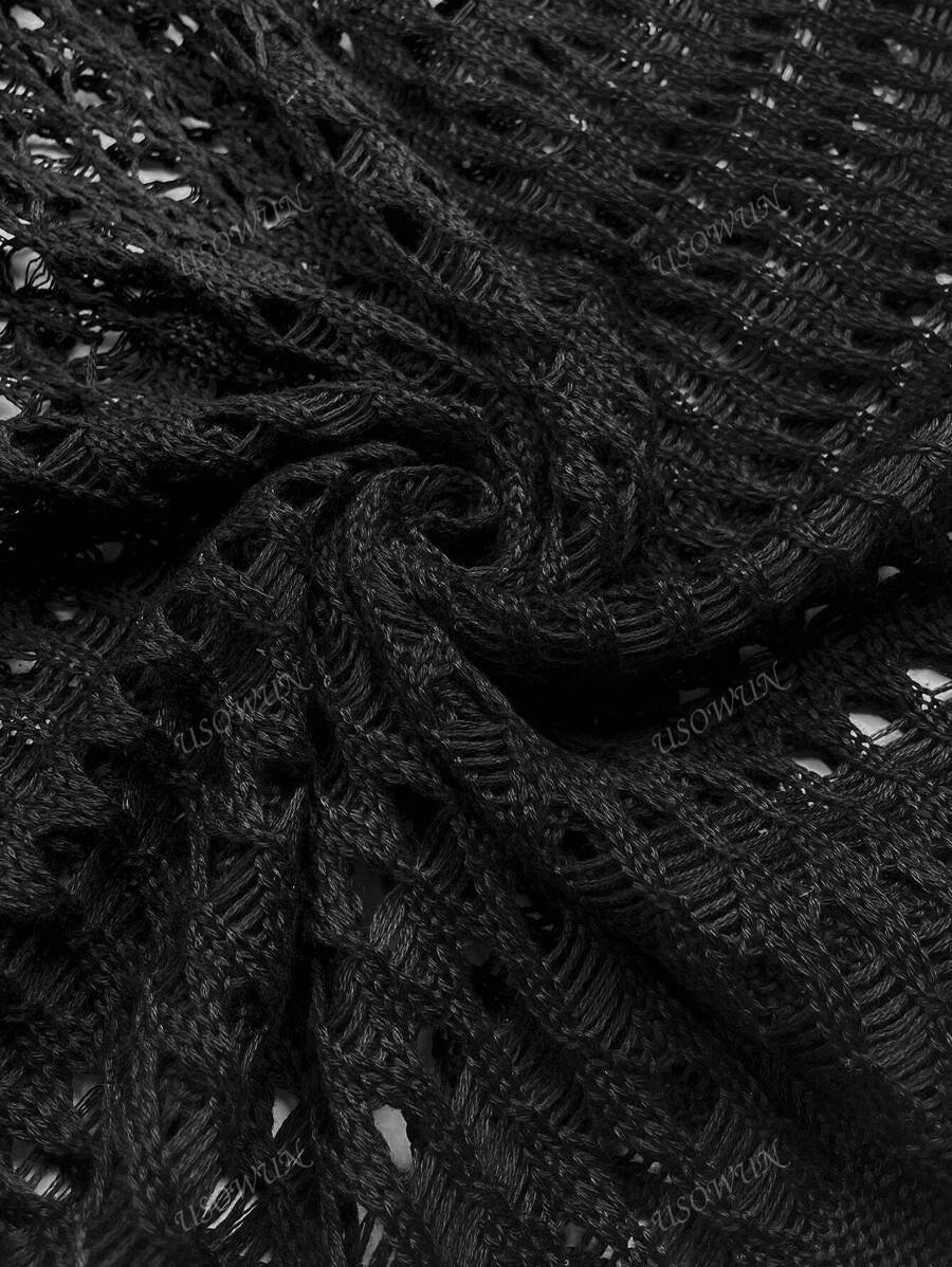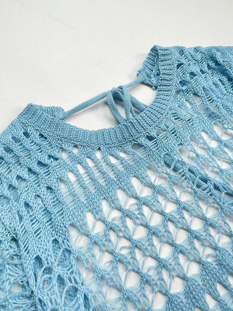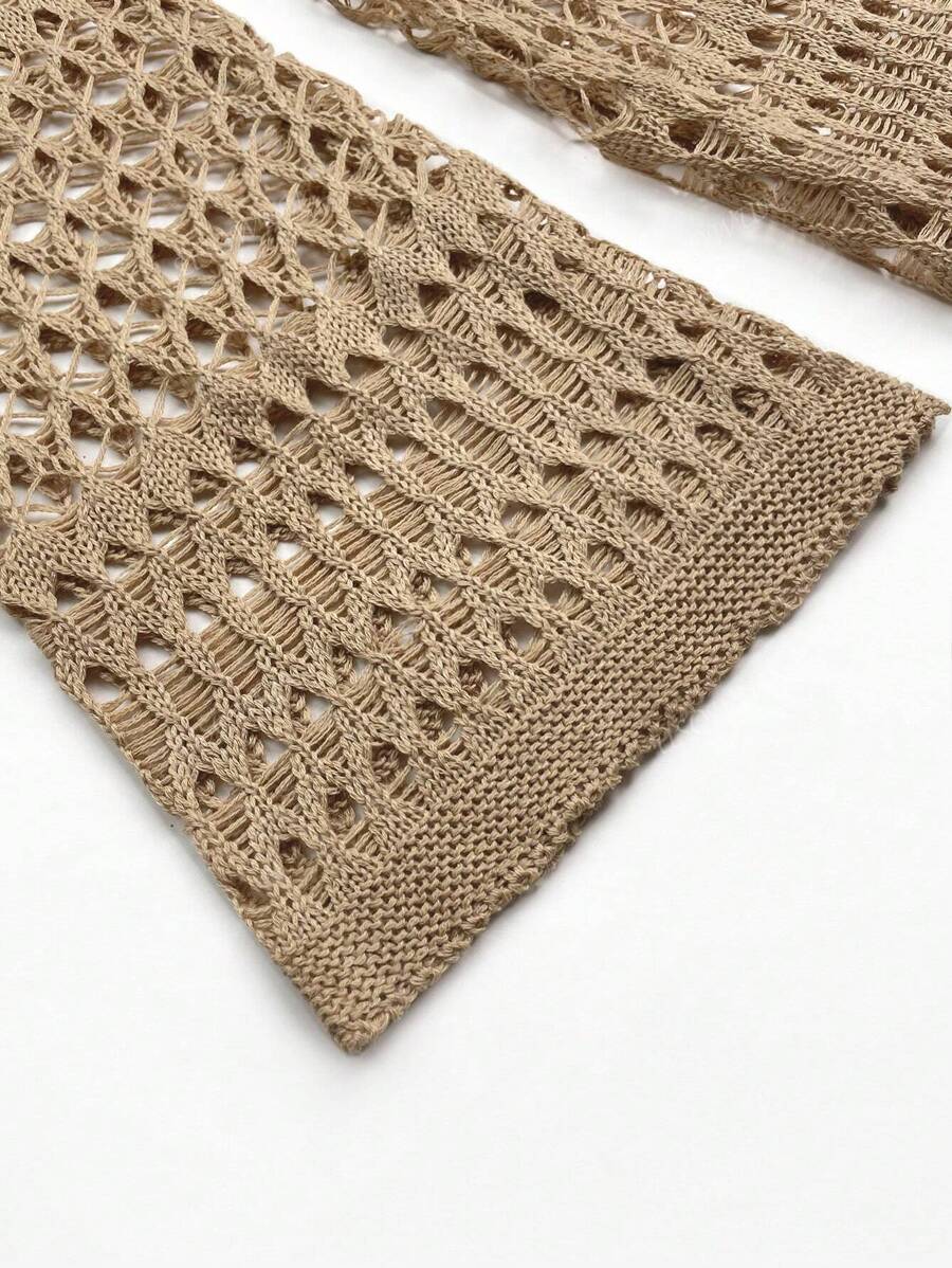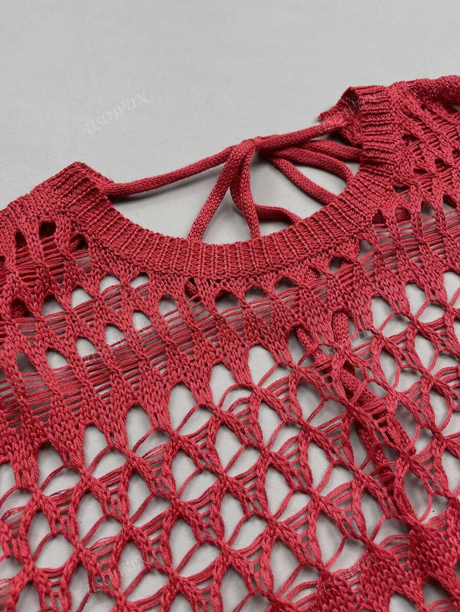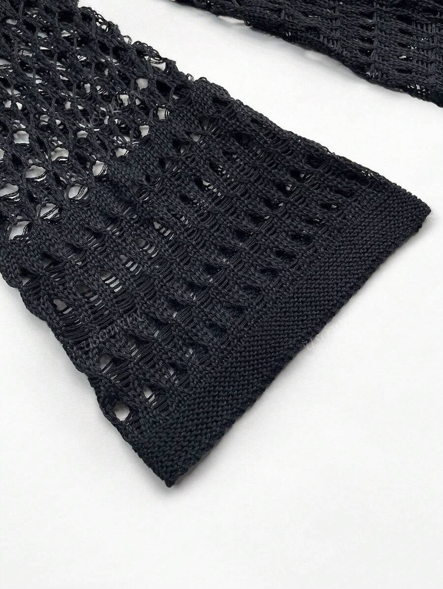 Vestido crochet de manga larga con espalda descubierta, estilo bohemio y sexy, para uso como cubrecosturas en la playa, de color amarillo pollito para mujer, para primavera y verano