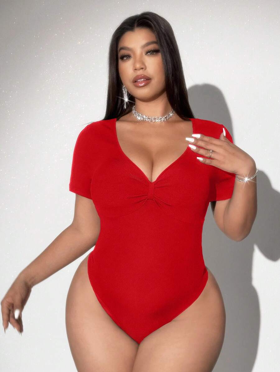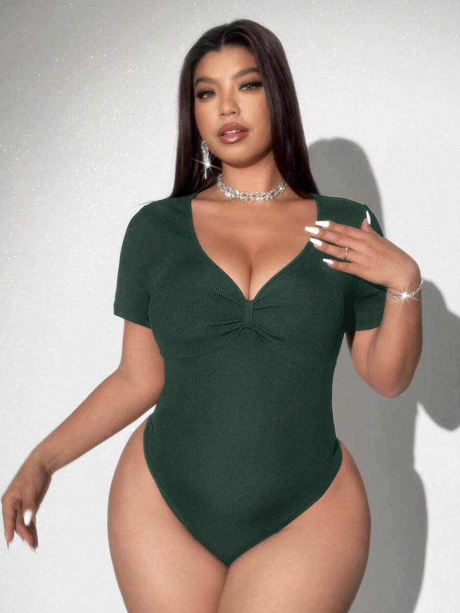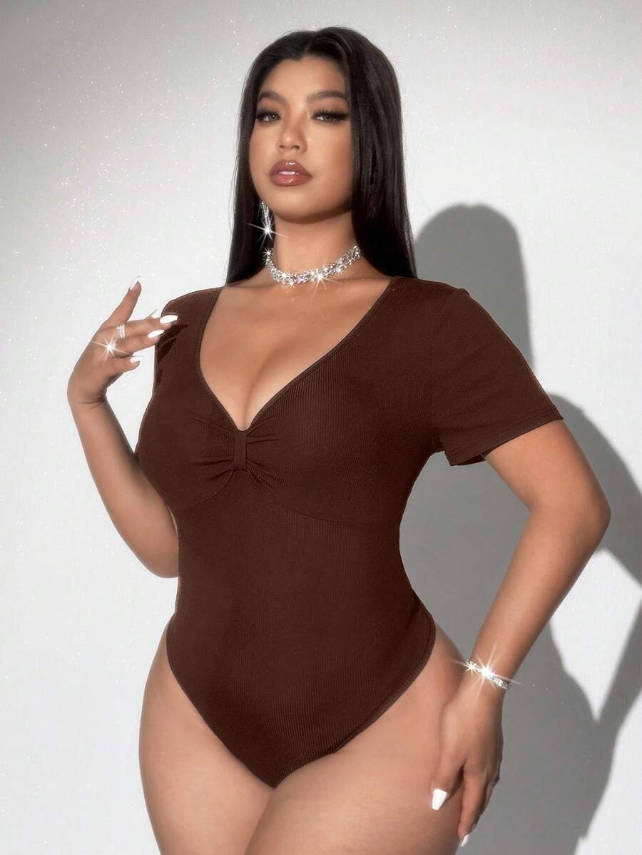 Viva relle body de cuello en v profundo y texturizado para tallas grandes