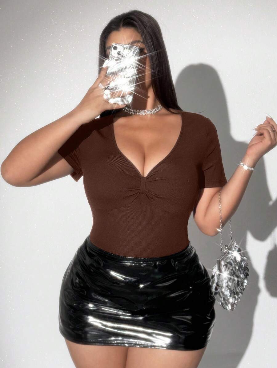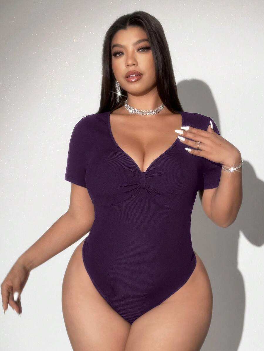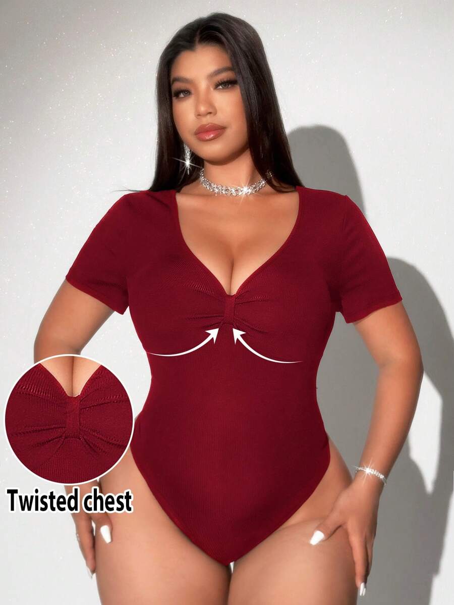 Viva relle body de cuello en v profundo y texturizado para tallas grandes