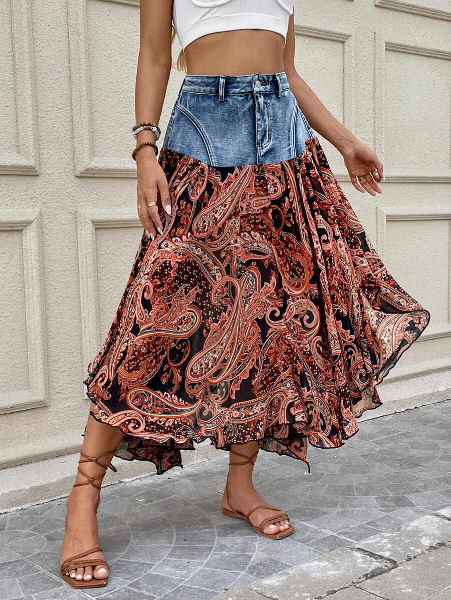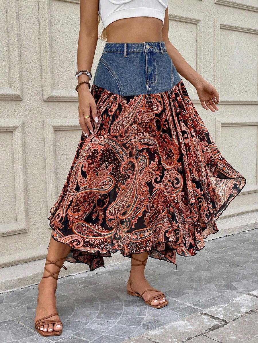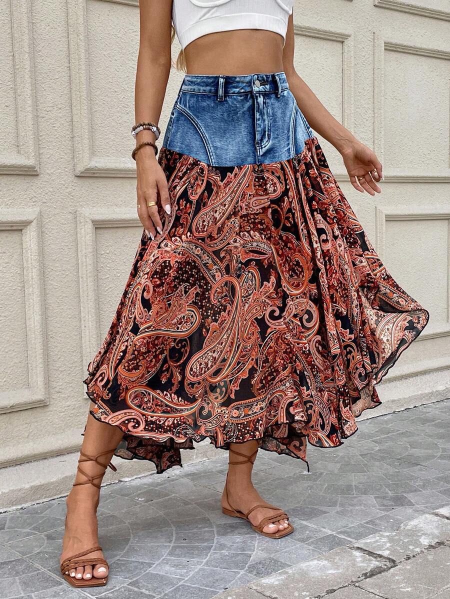 Vivid eden falda vaquera casual de mujer, diseno de color block para vacaciones
