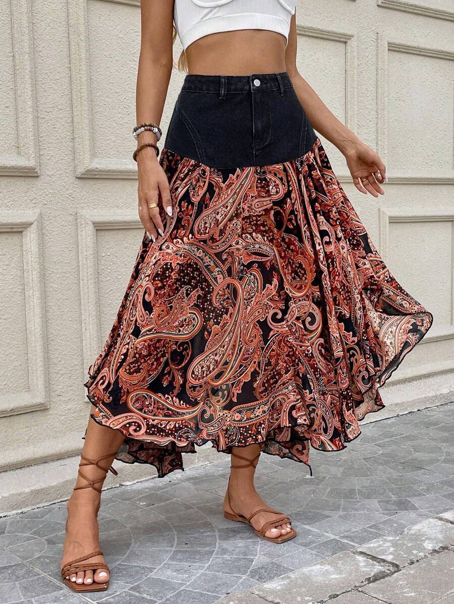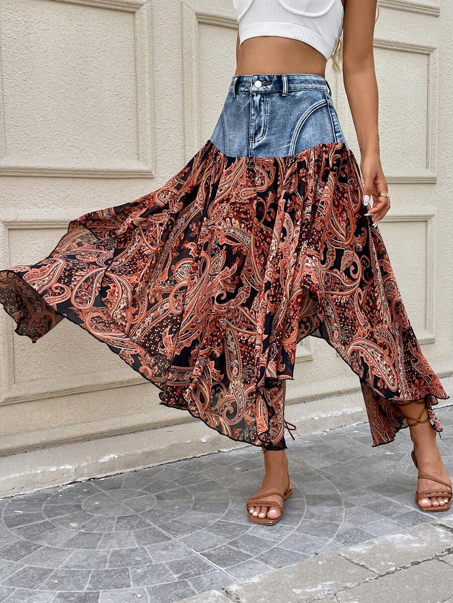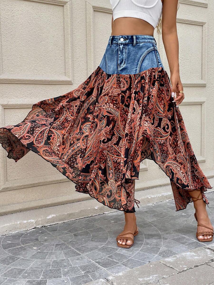 Vivid eden falda vaquera casual de mujer, diseno de color block para vacaciones