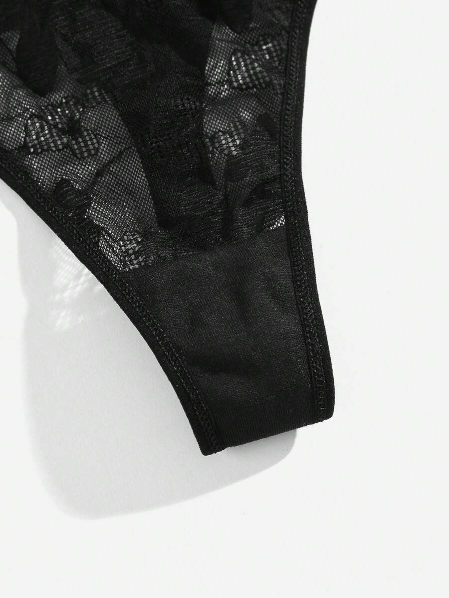 Tanga lenceria sexy con encaje floral y tiro bajo