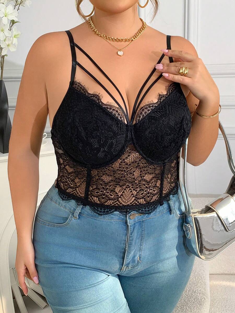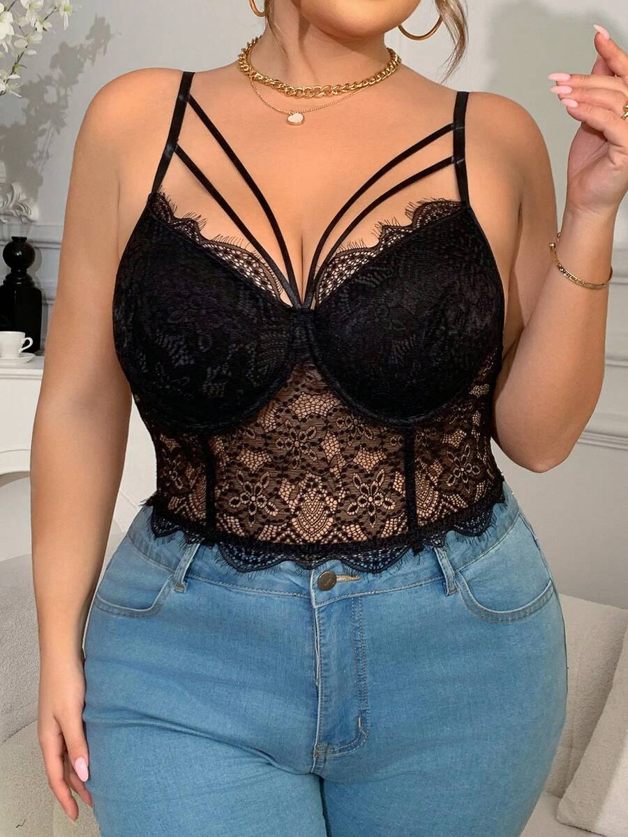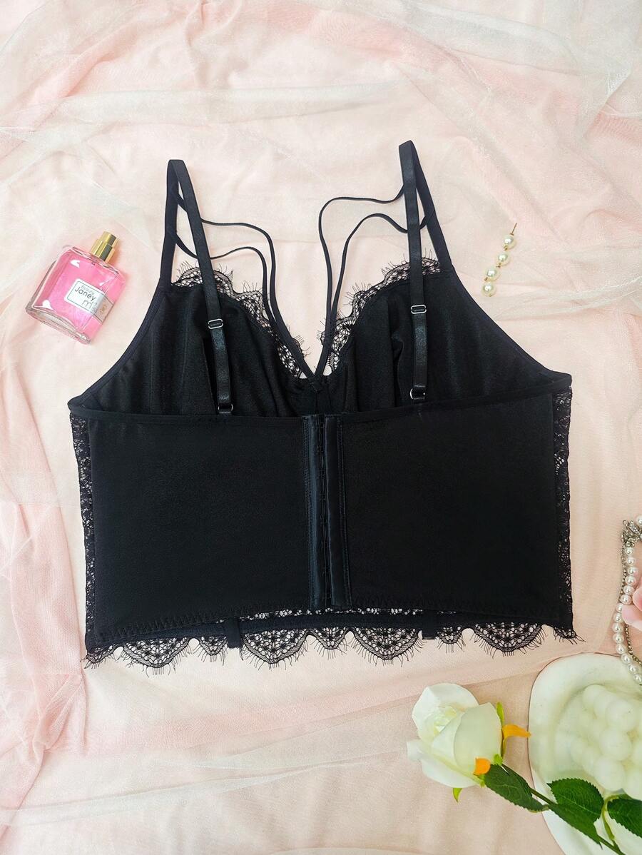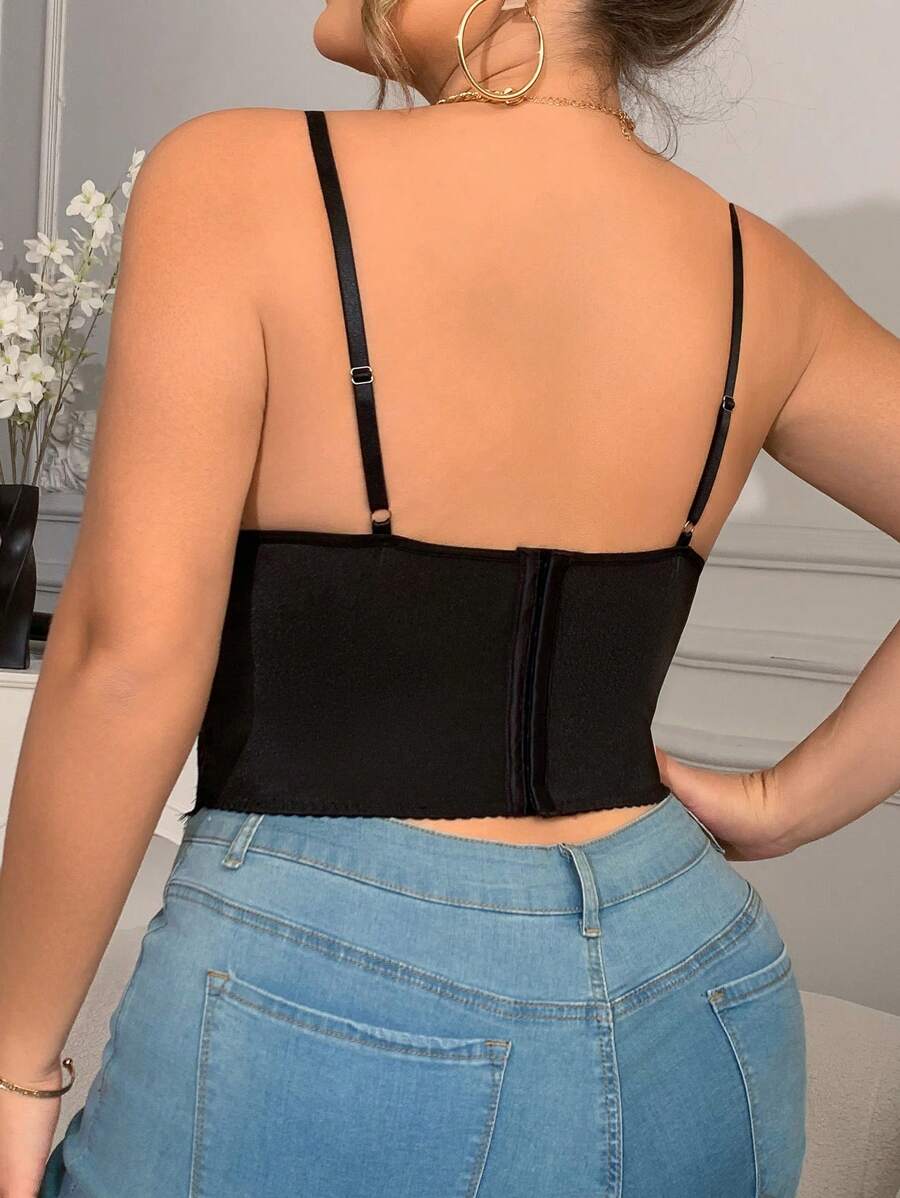 1 pieza top de corse recortado con cordones y ballenas, diseno de espina de pescado sexy, ropa interior exterior