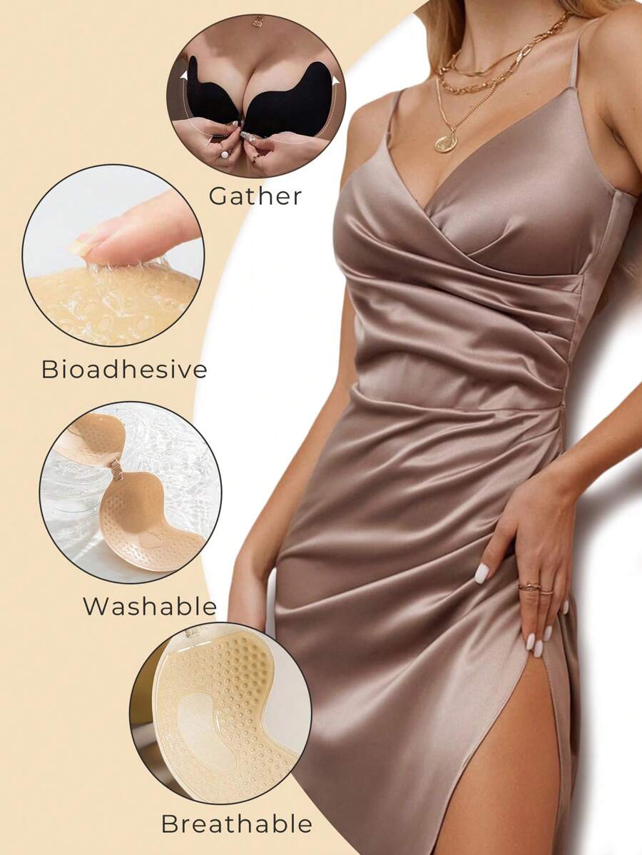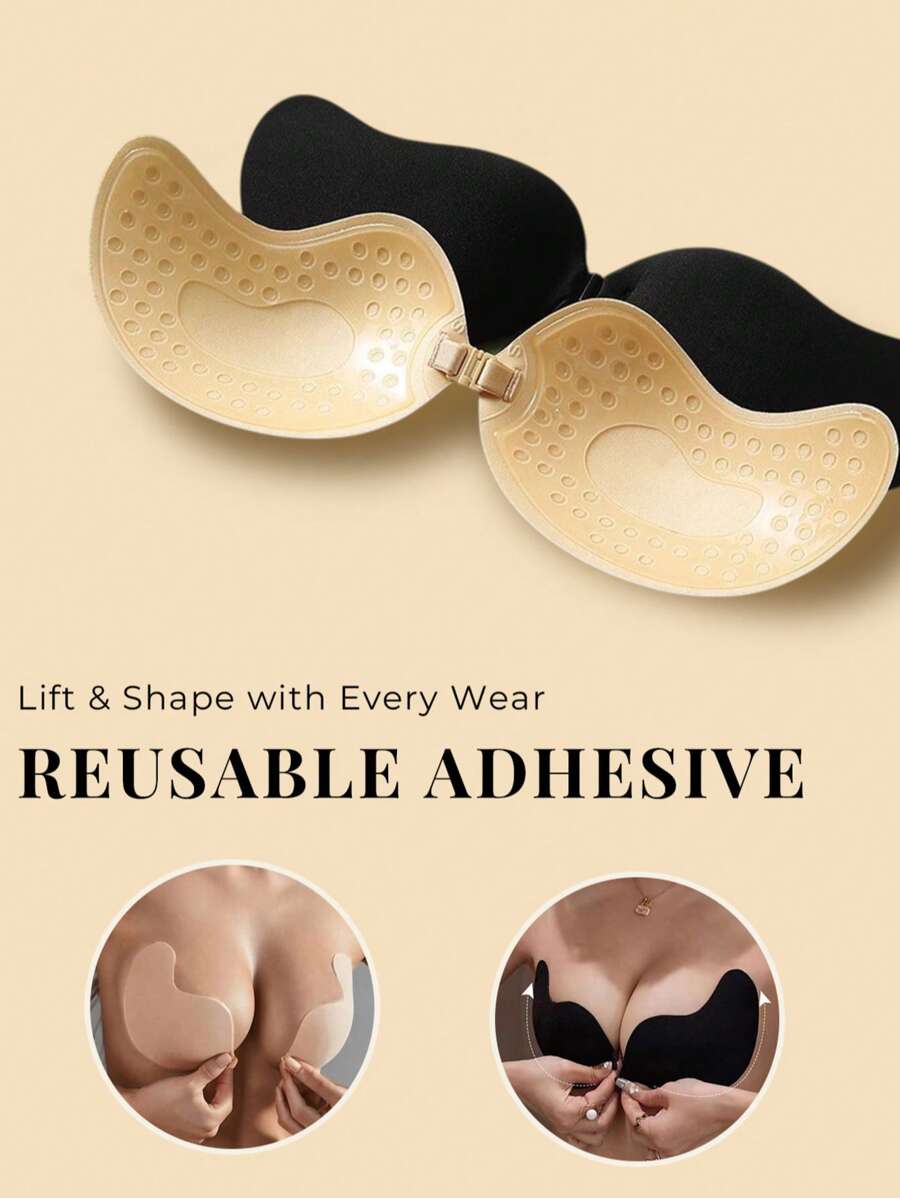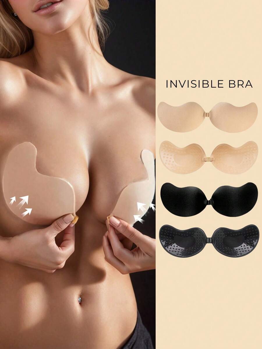 1 pieza conjunto de brasier adhesivo push up invisible - brasieres sin tirantes ni espalda de silicona en color negro y piel, tazas adhesivas reutilizables con forma de mango para vestidos de escote profundo y atuendos sin espalda