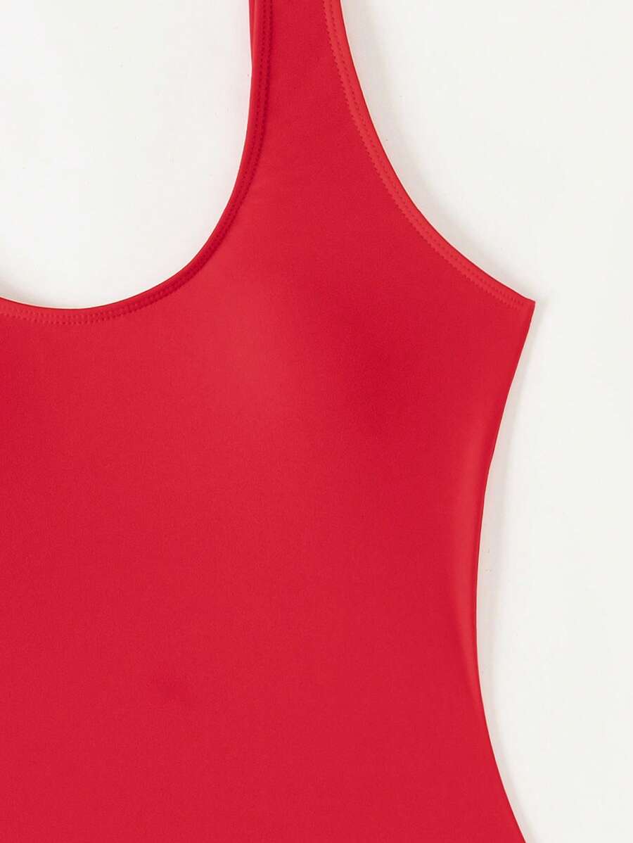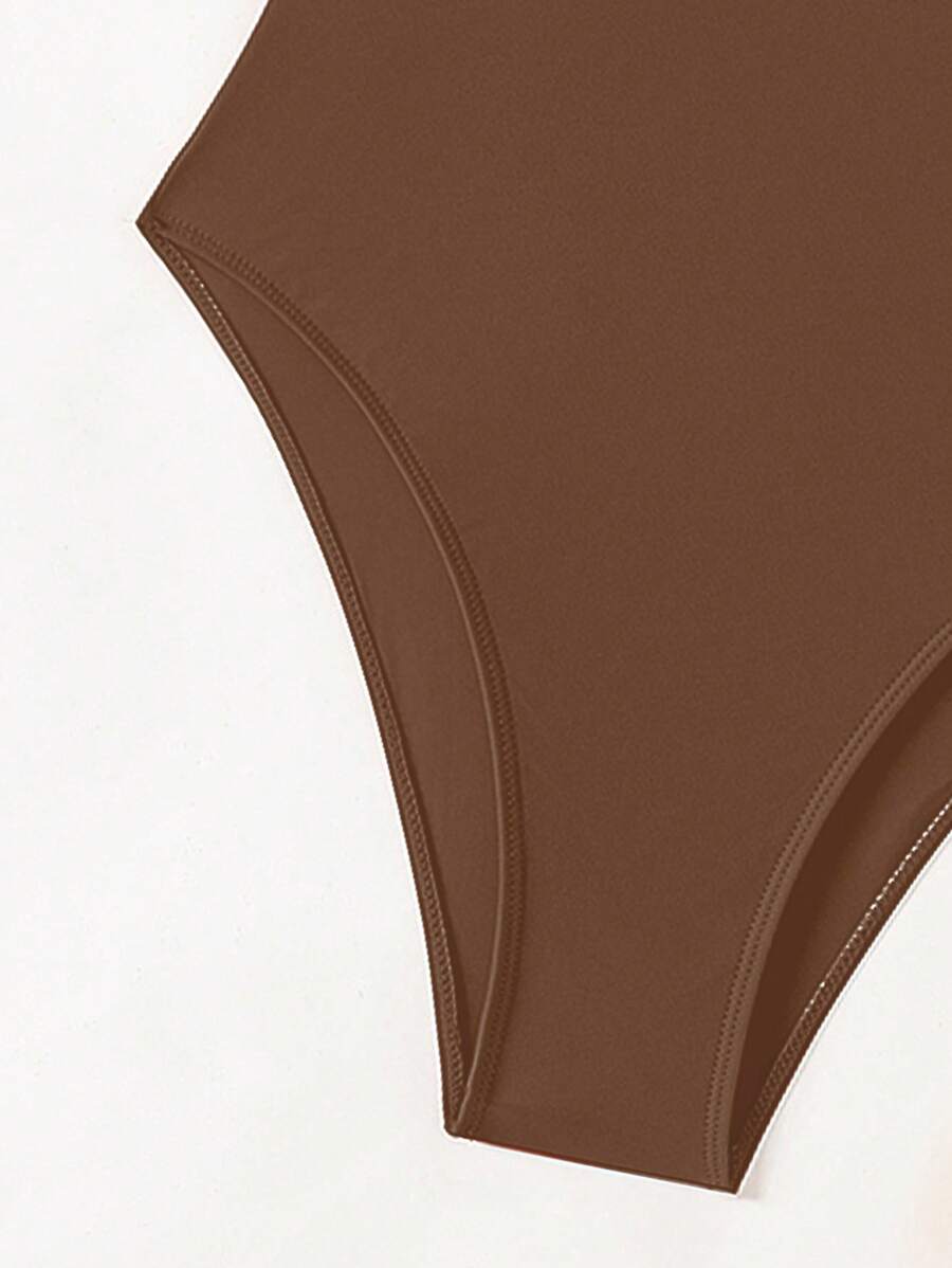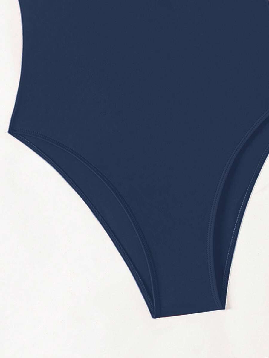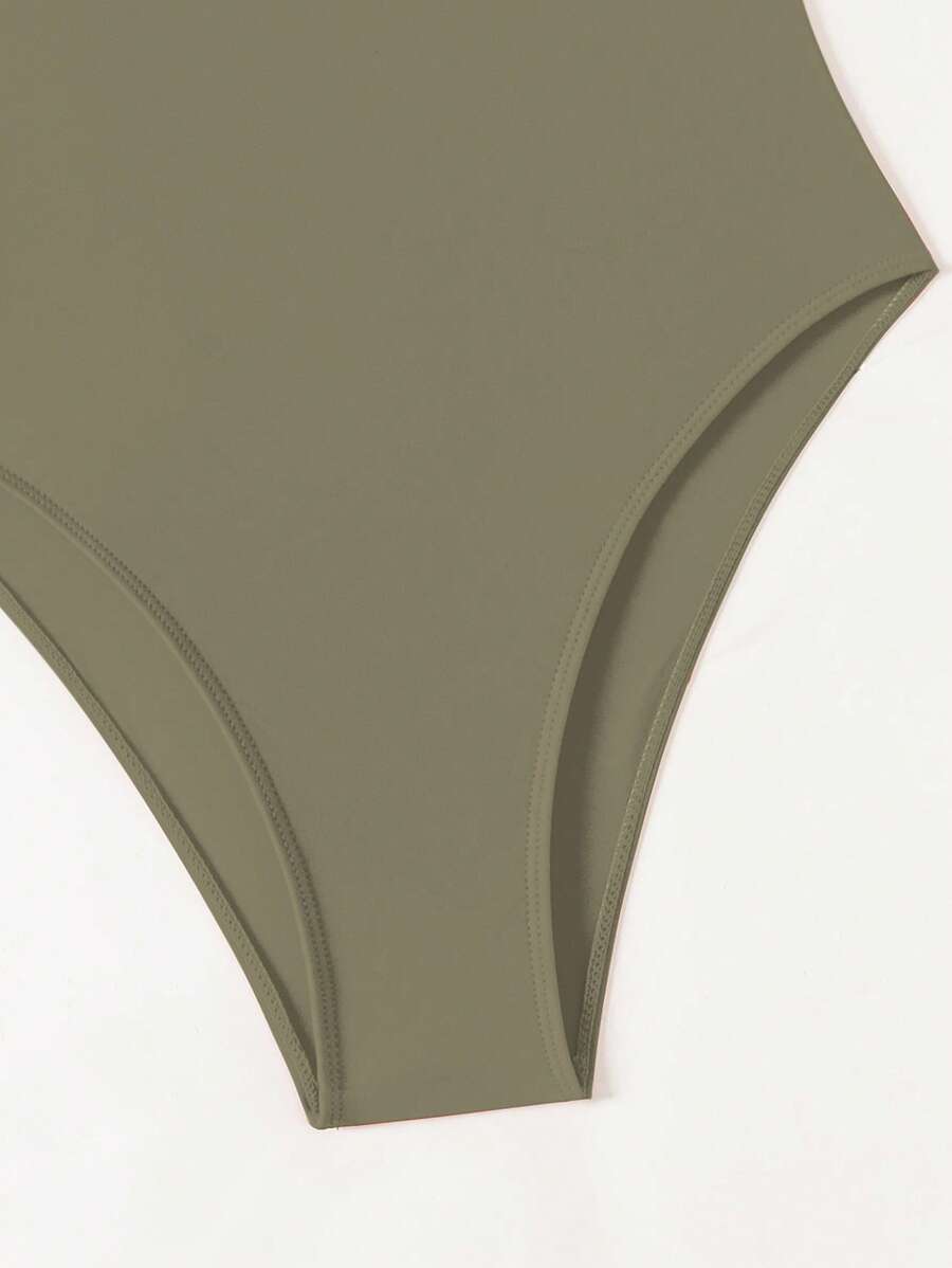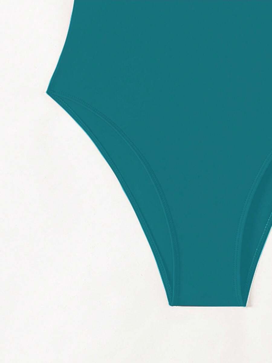 1 pieza traje de bano de una sola pieza de color liso para mujer, para vacaciones y playa
