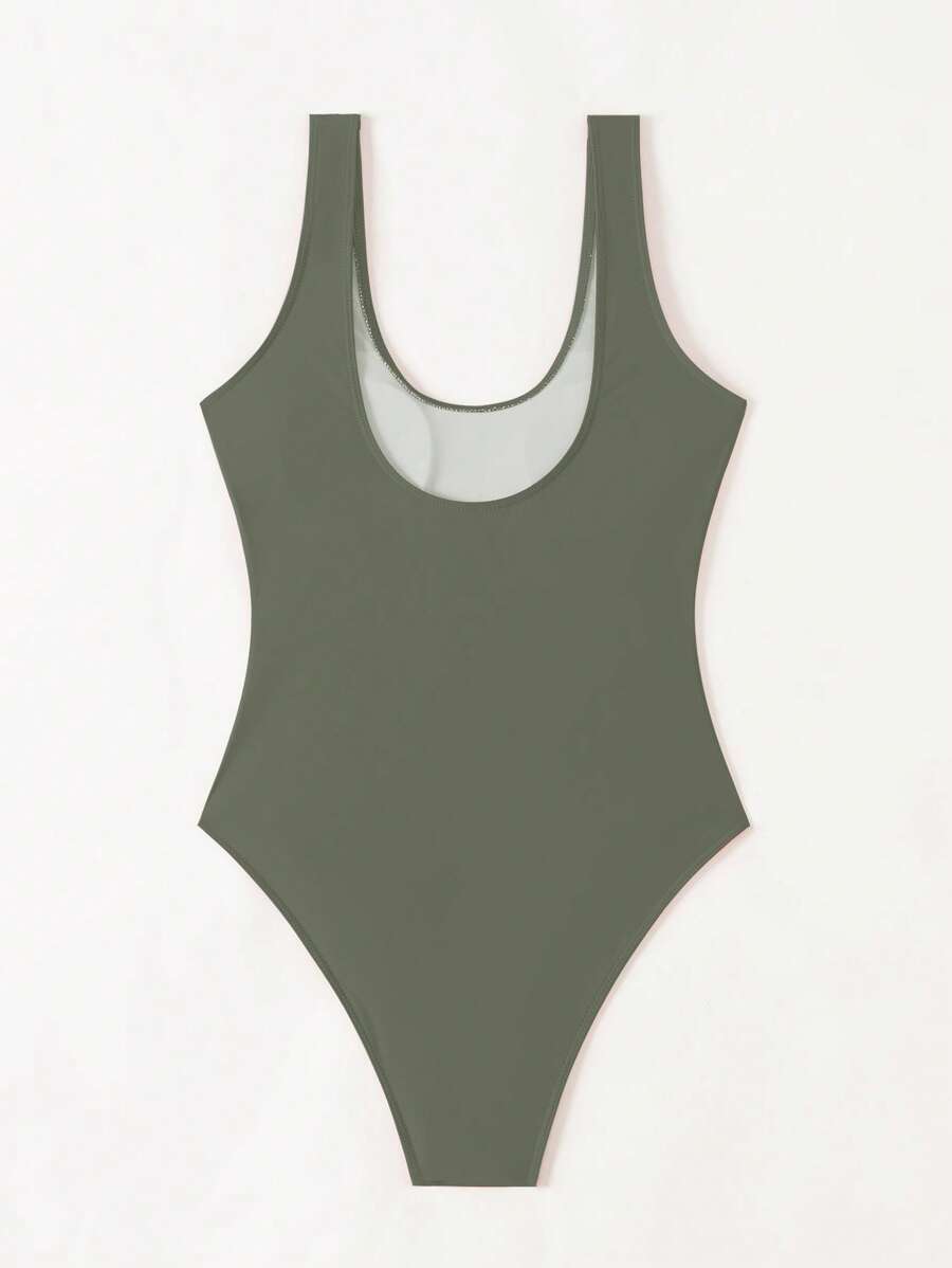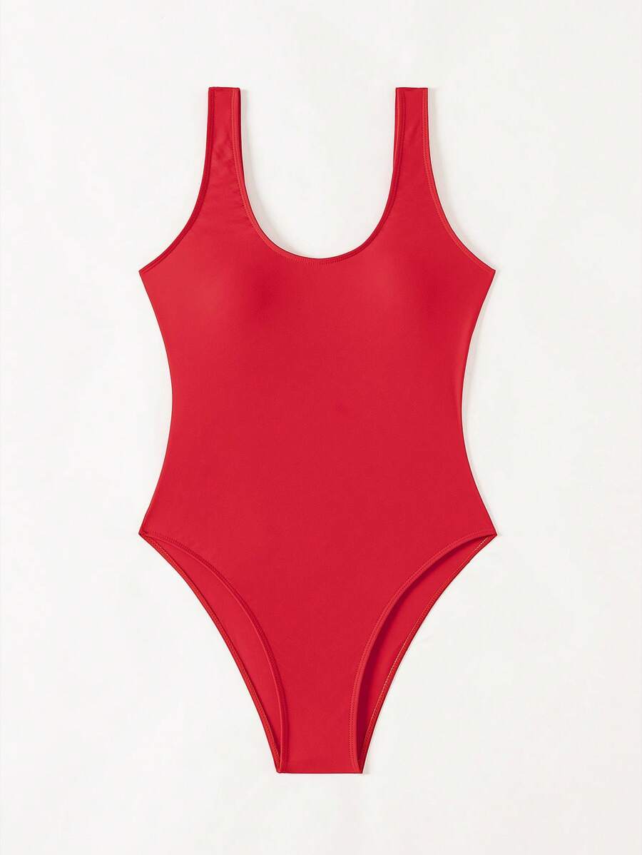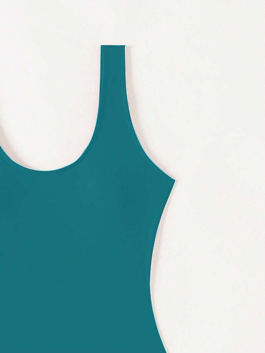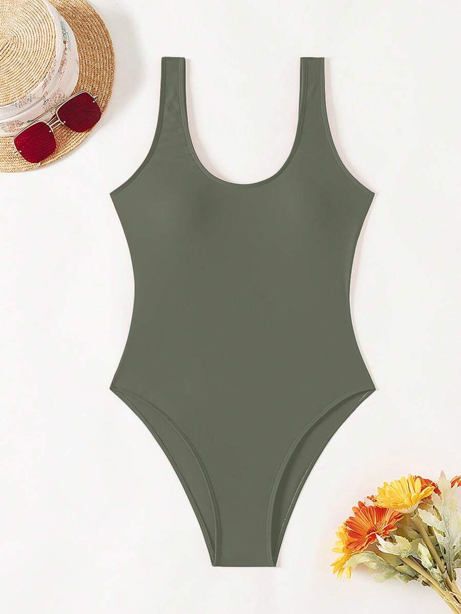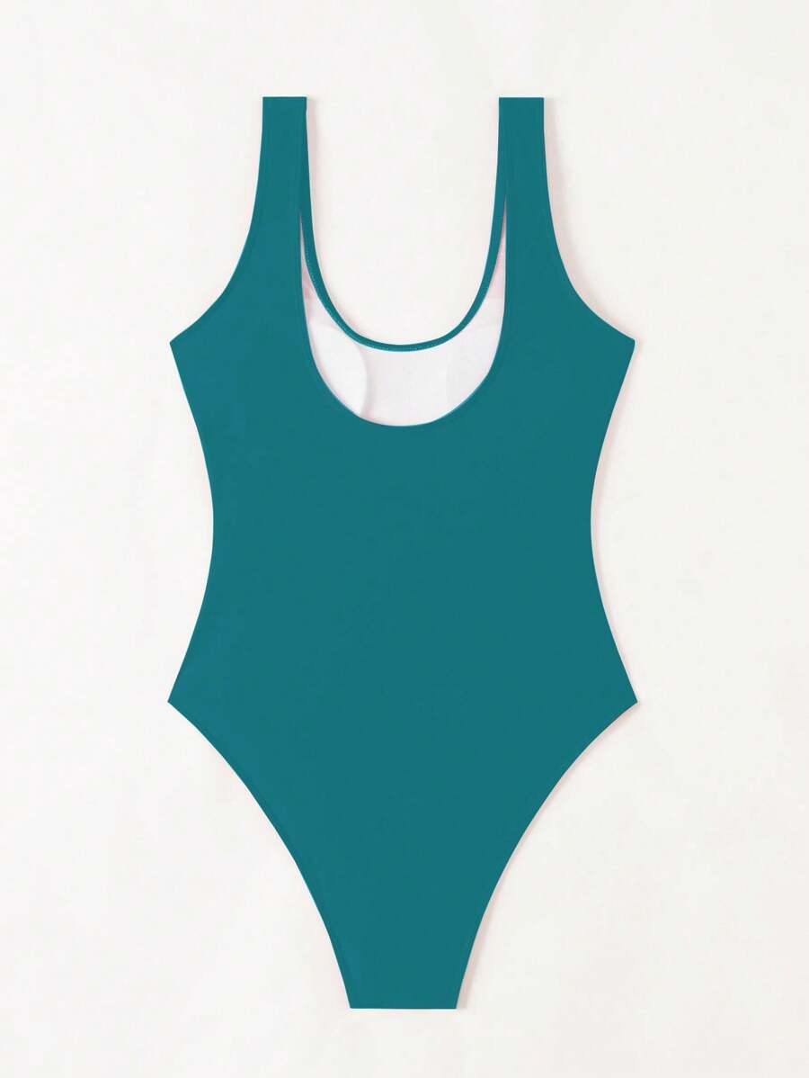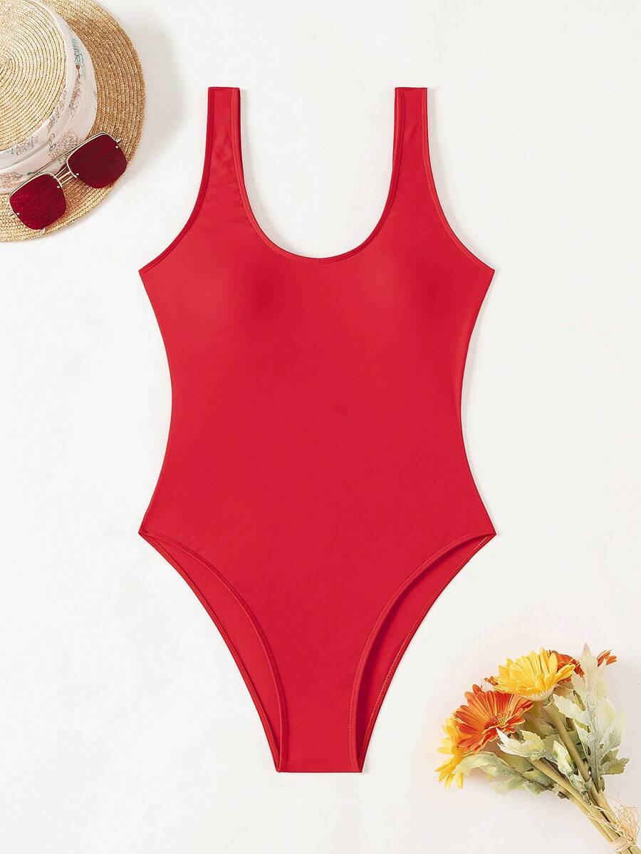1 pieza traje de bano de una sola pieza de color liso para mujer, para vacaciones y playa