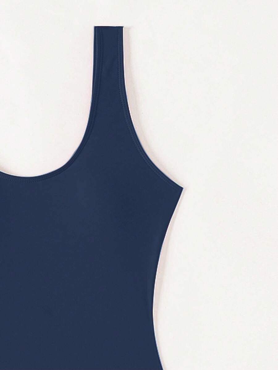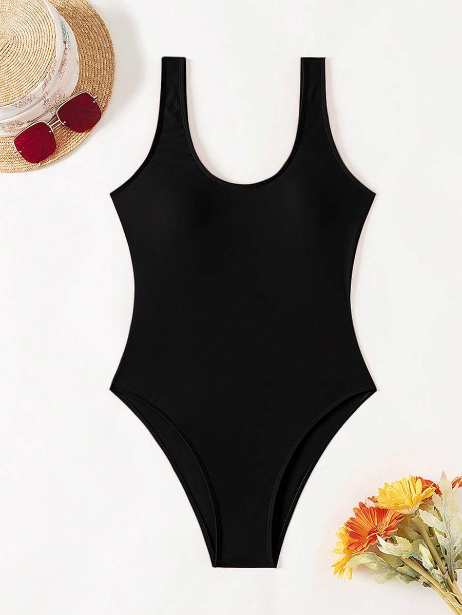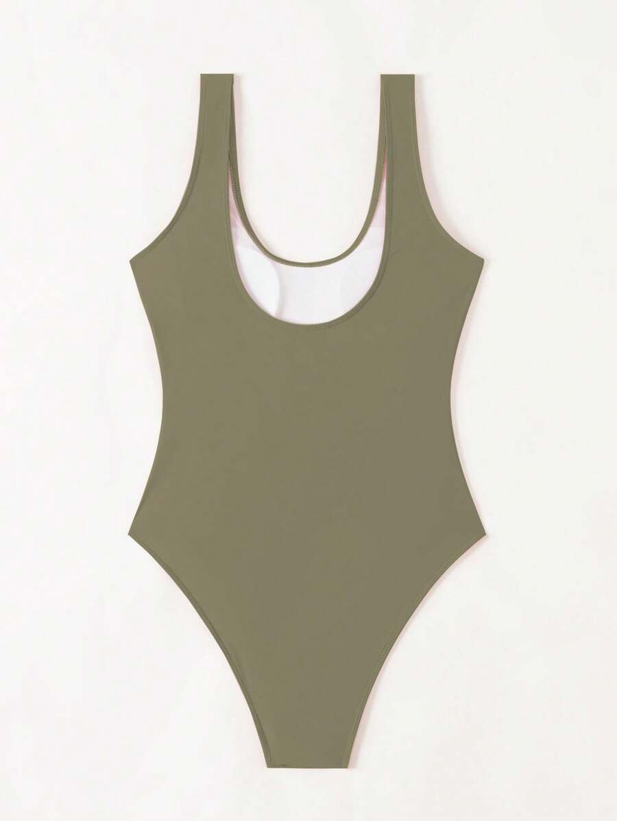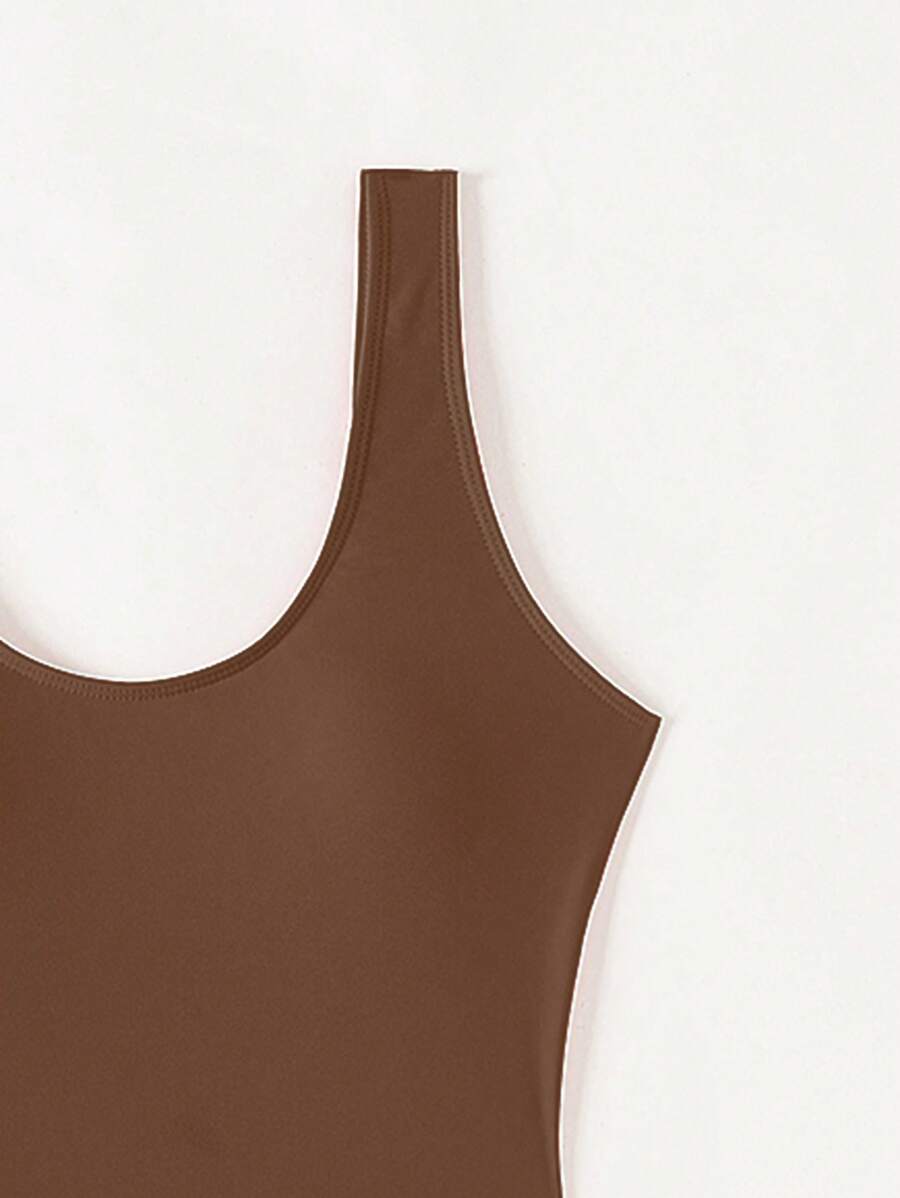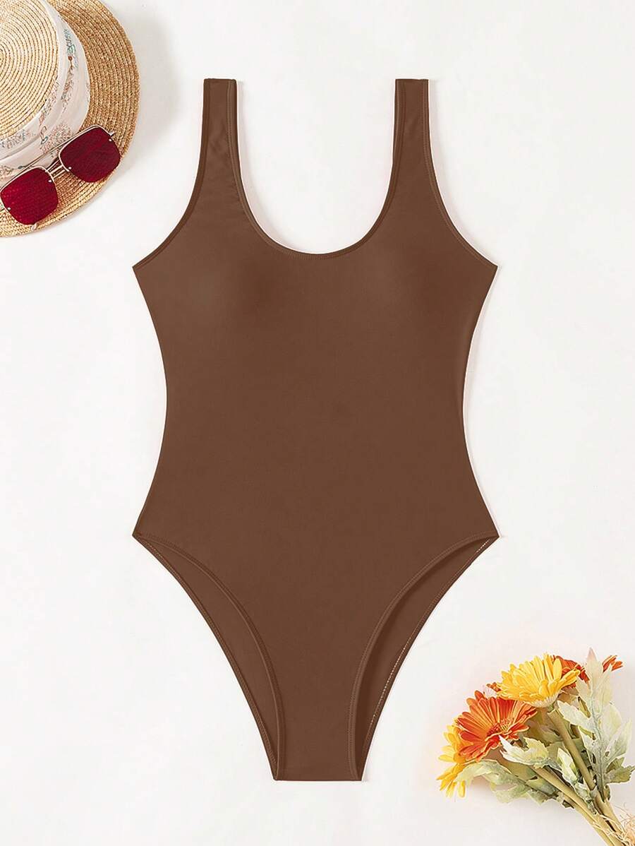 1 pieza traje de bano de una sola pieza de color liso para mujer, para vacaciones y playa