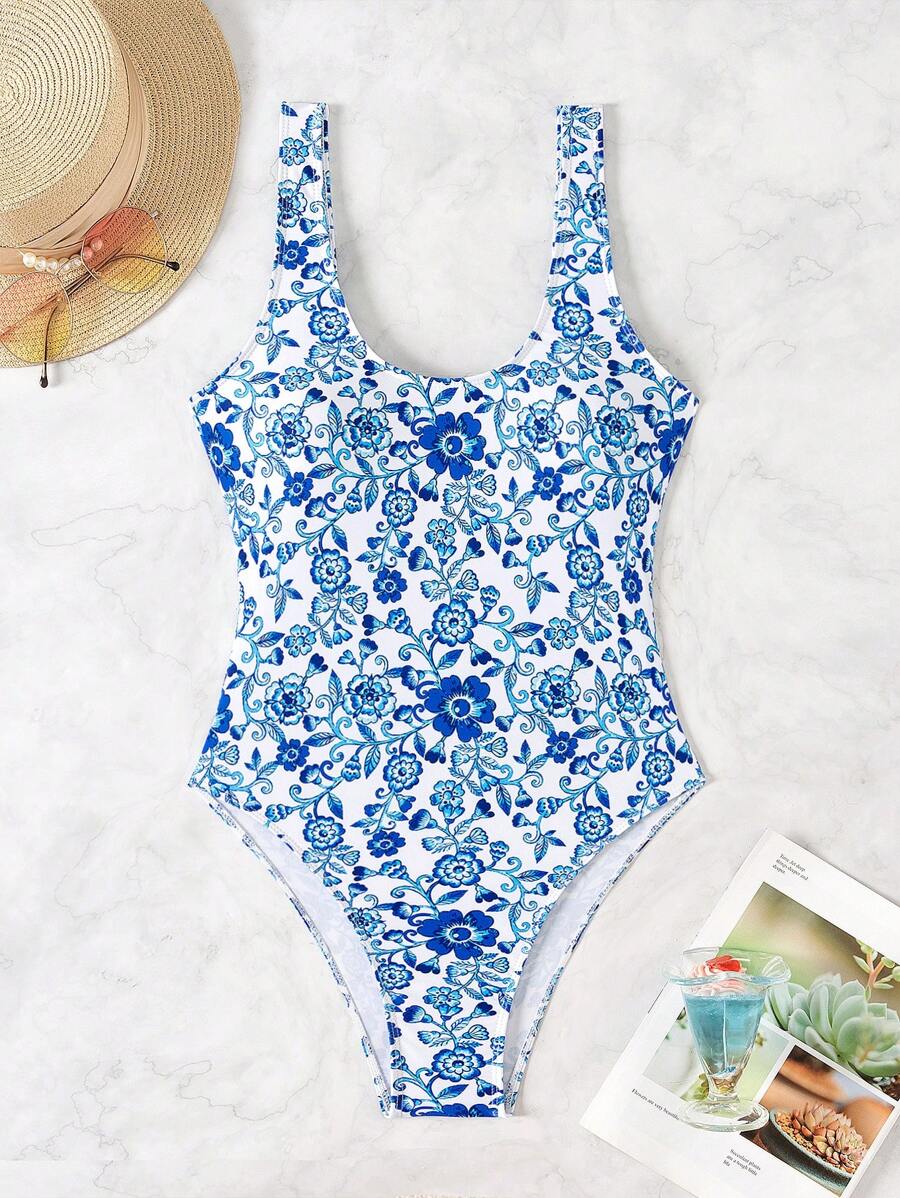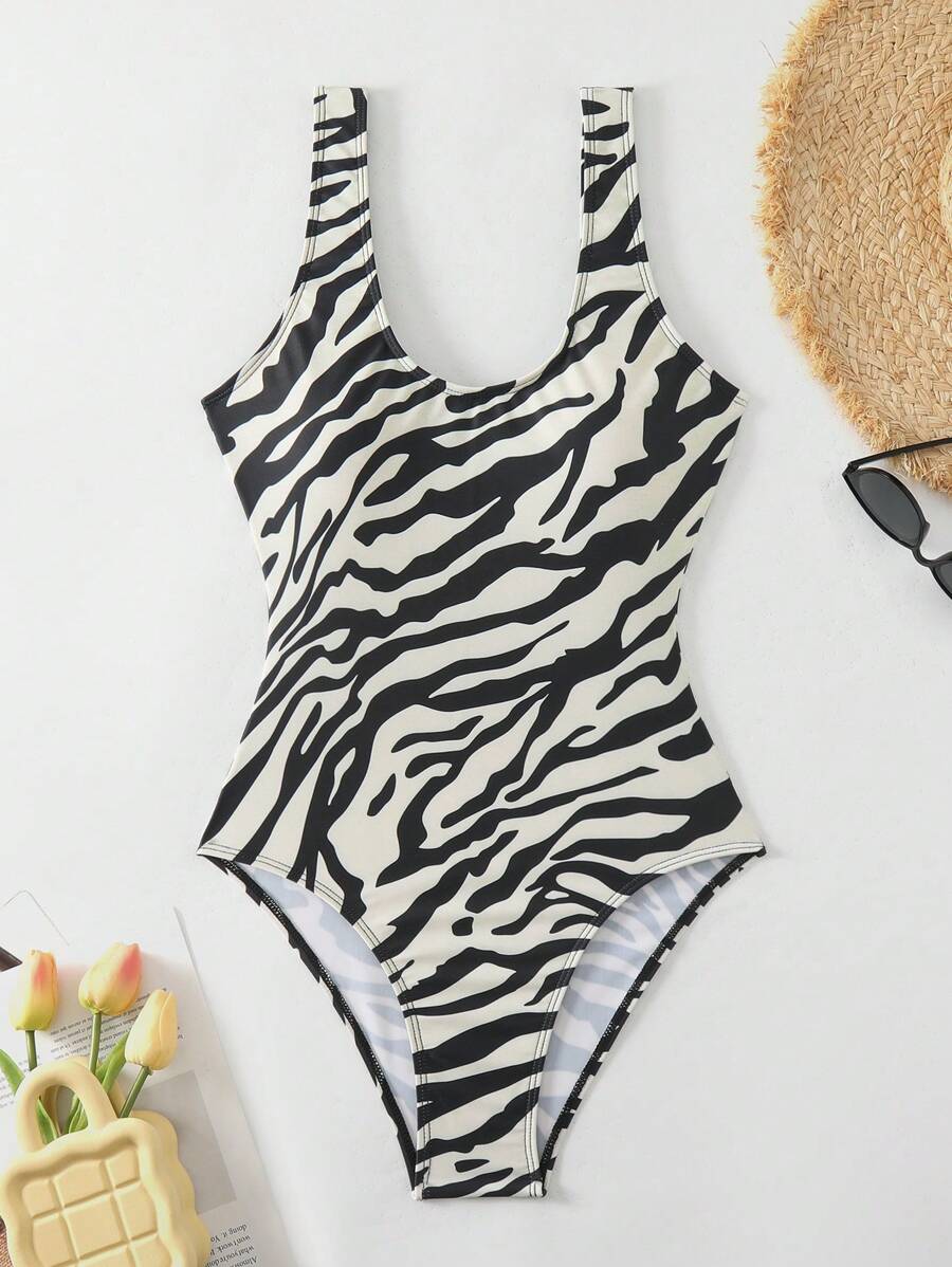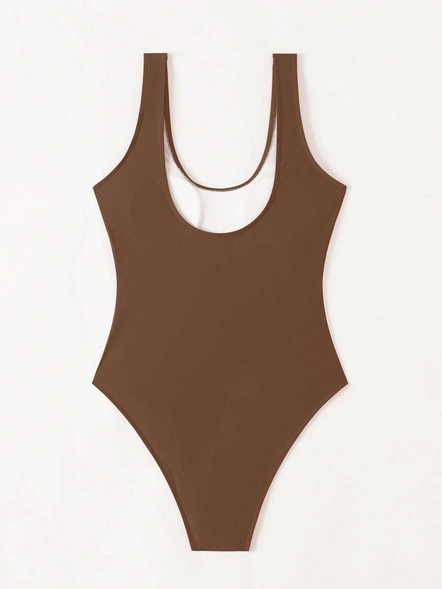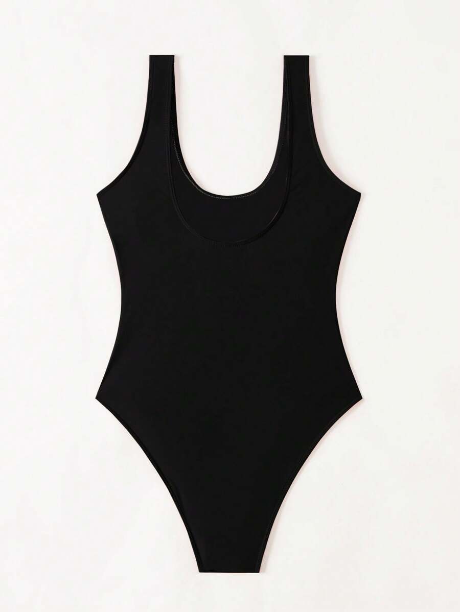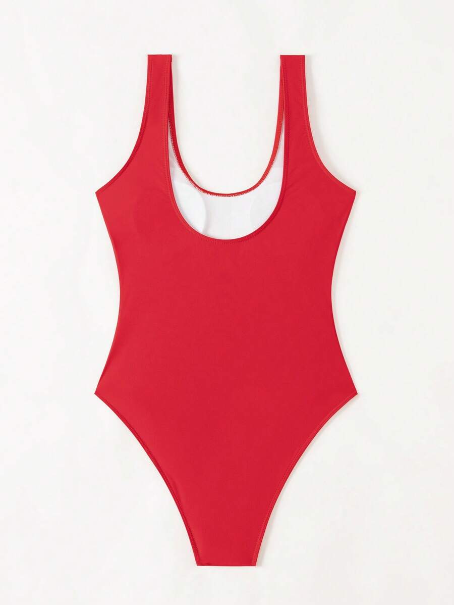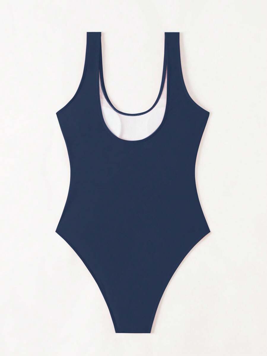 1 pieza traje de bano de una sola pieza de color liso para mujer, para vacaciones y playa