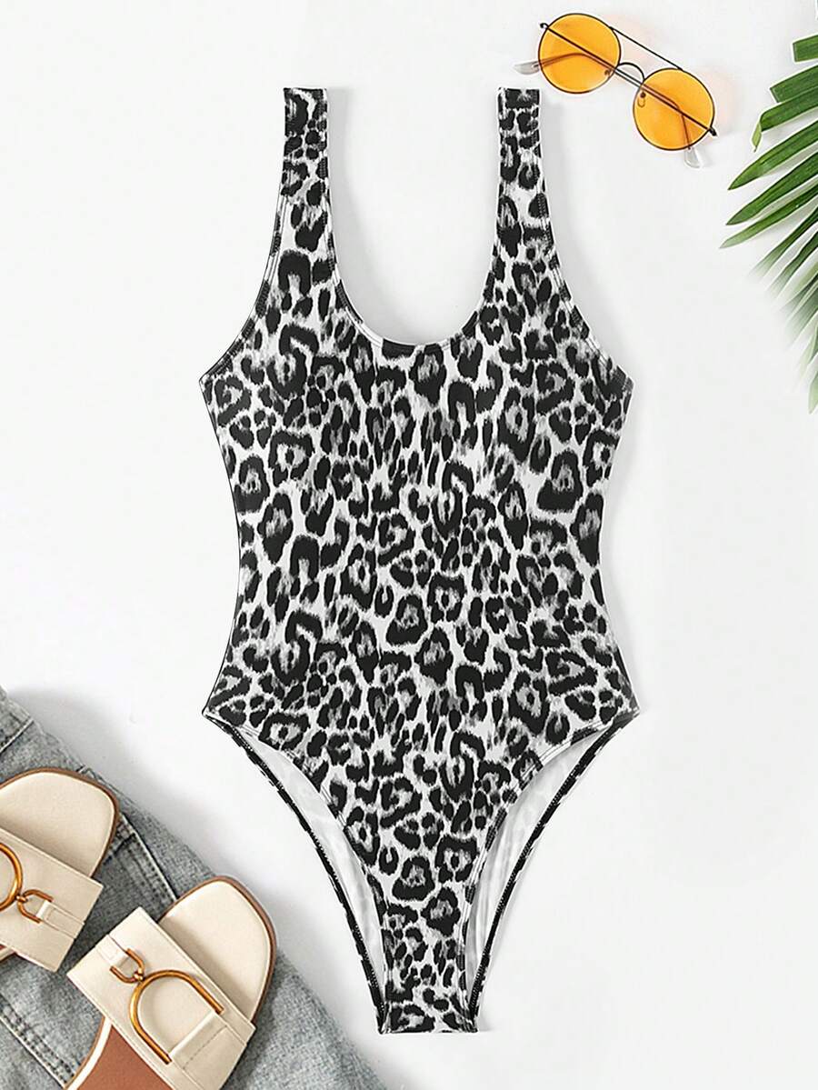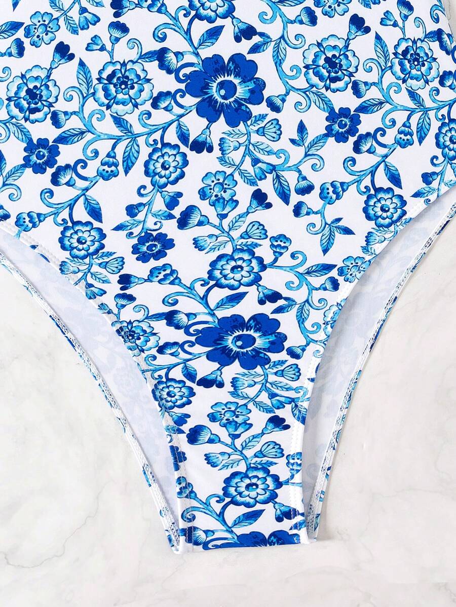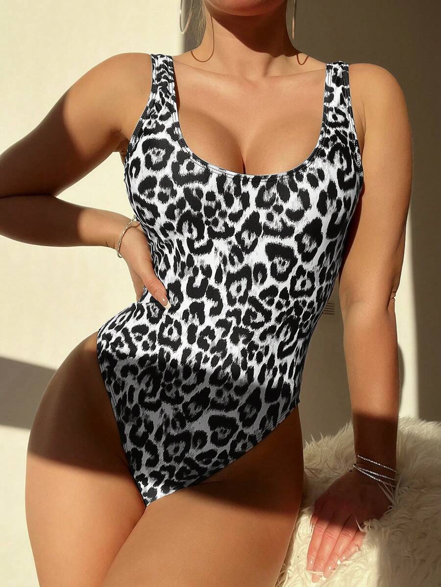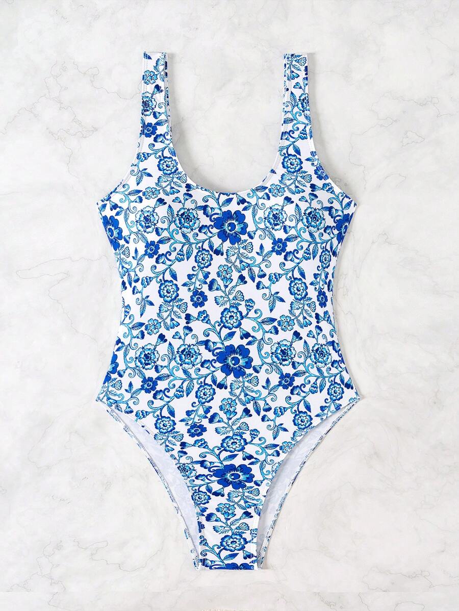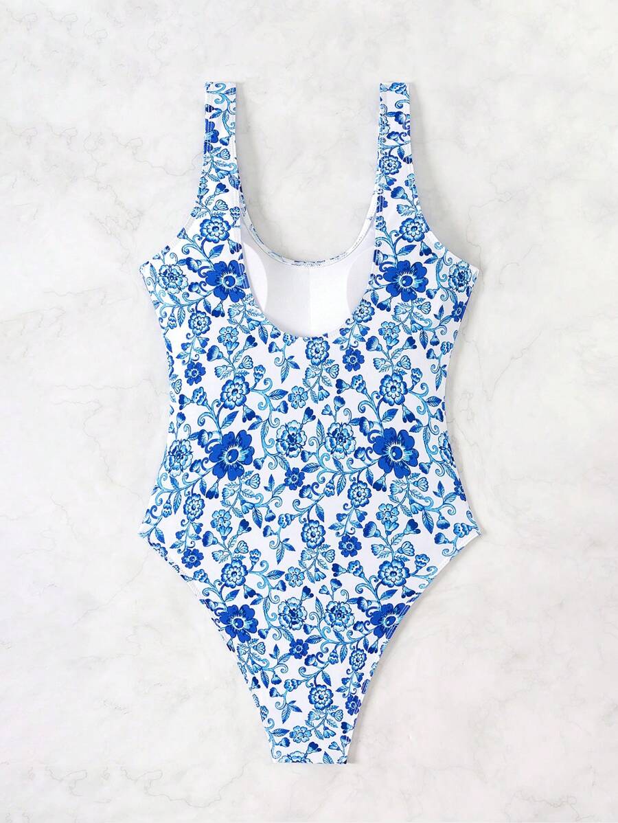 1 pieza traje de bano de una sola pieza de color liso para mujer, para vacaciones y playa
