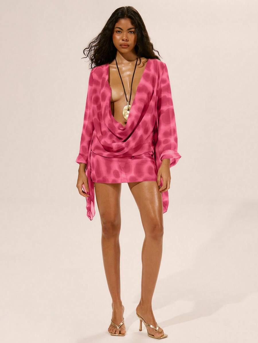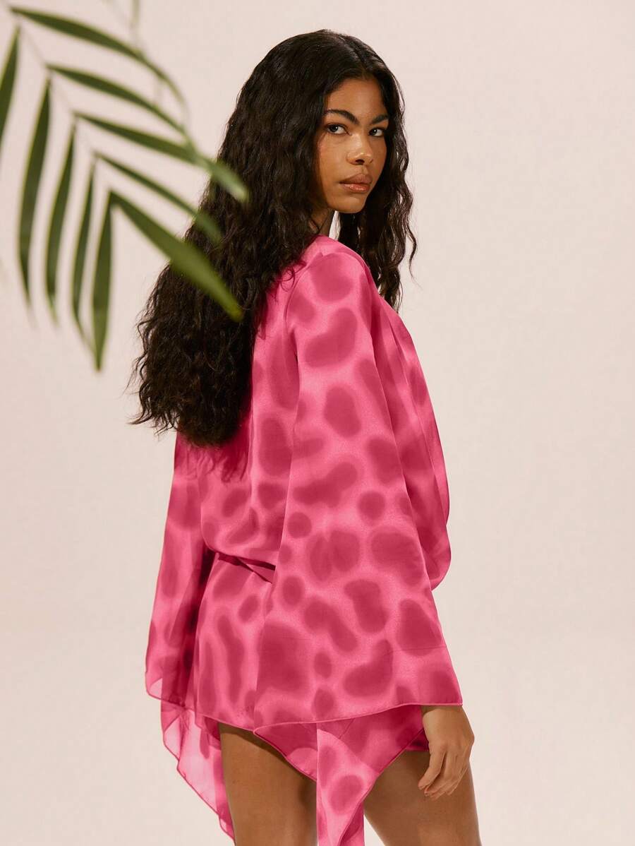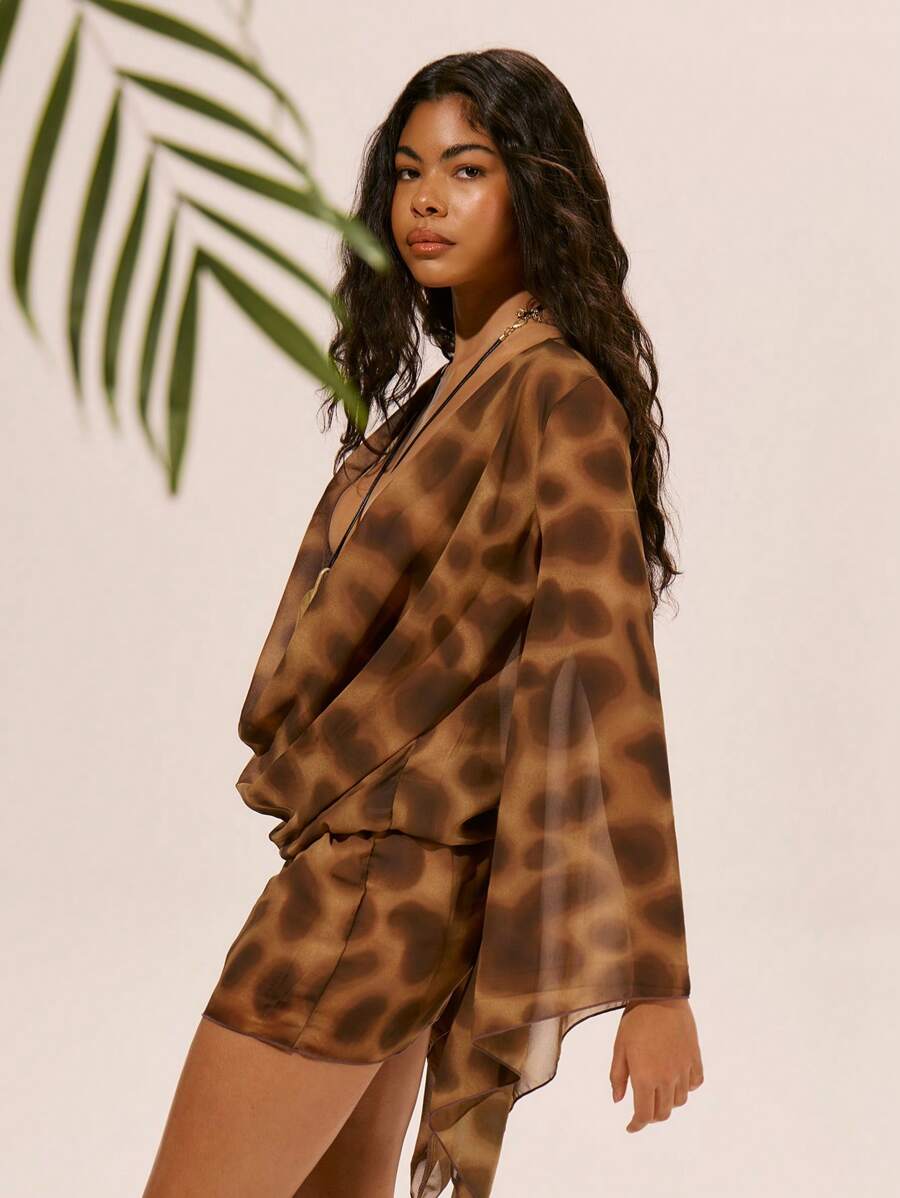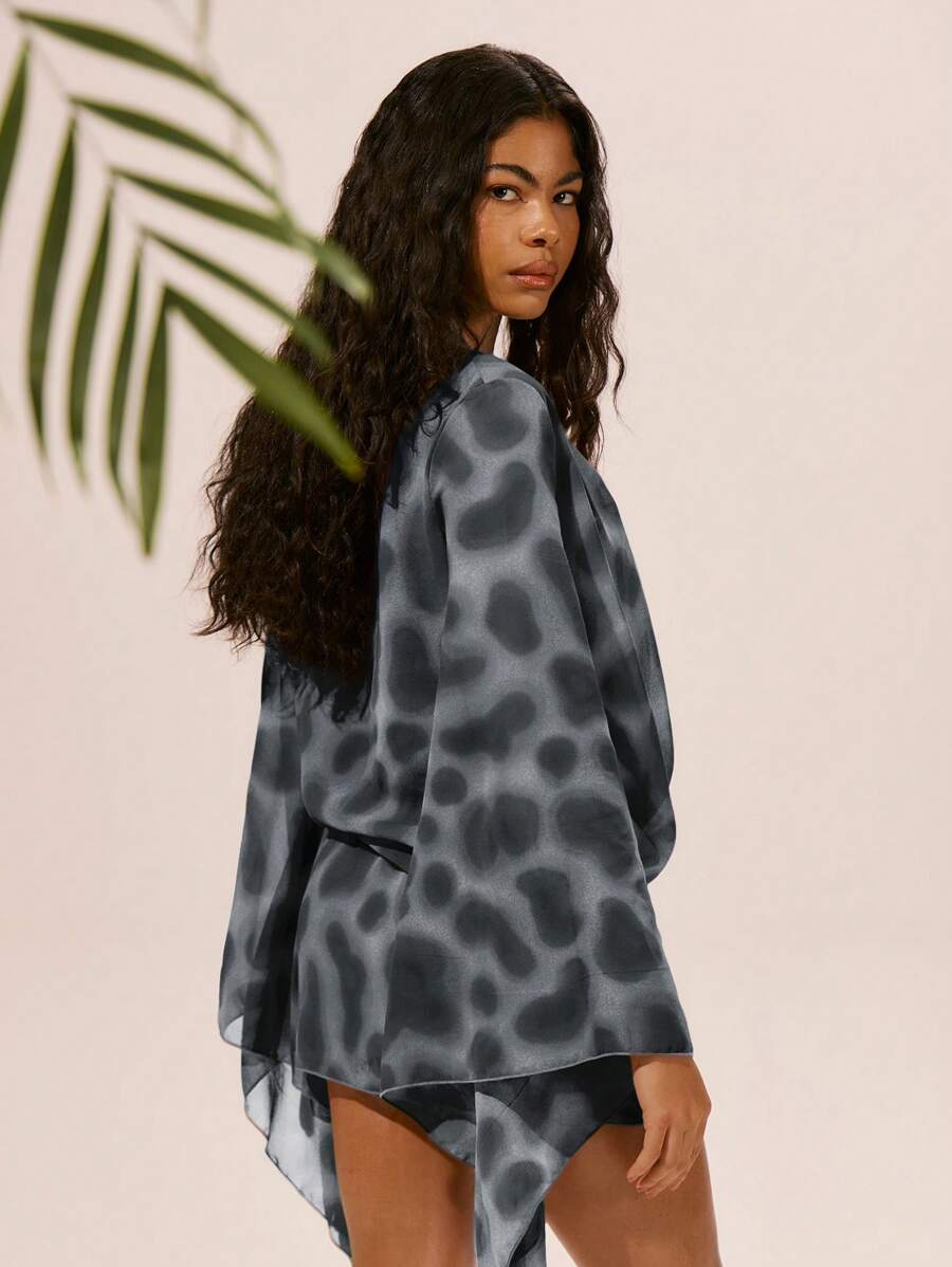 Vestido minifalda con cuello en pico de gasa y malla de manga larga, para cubrir, ideal para primavera, verano, ibiza, vacaciones, lindo, romantico, festival, ropa de playa