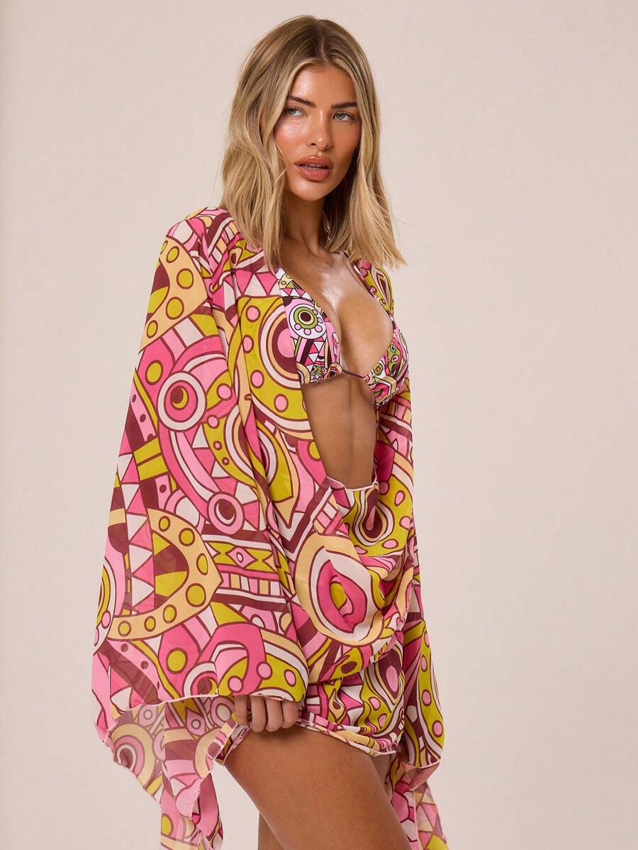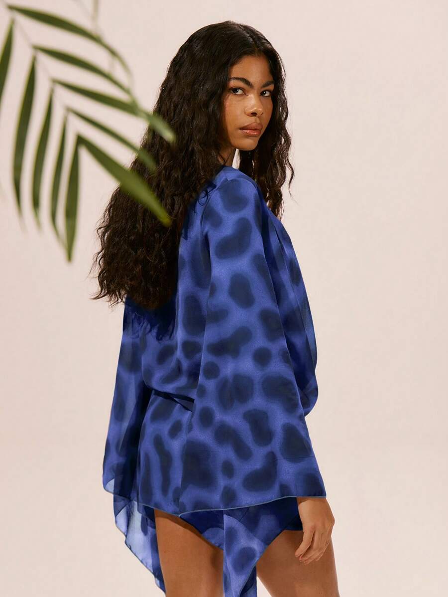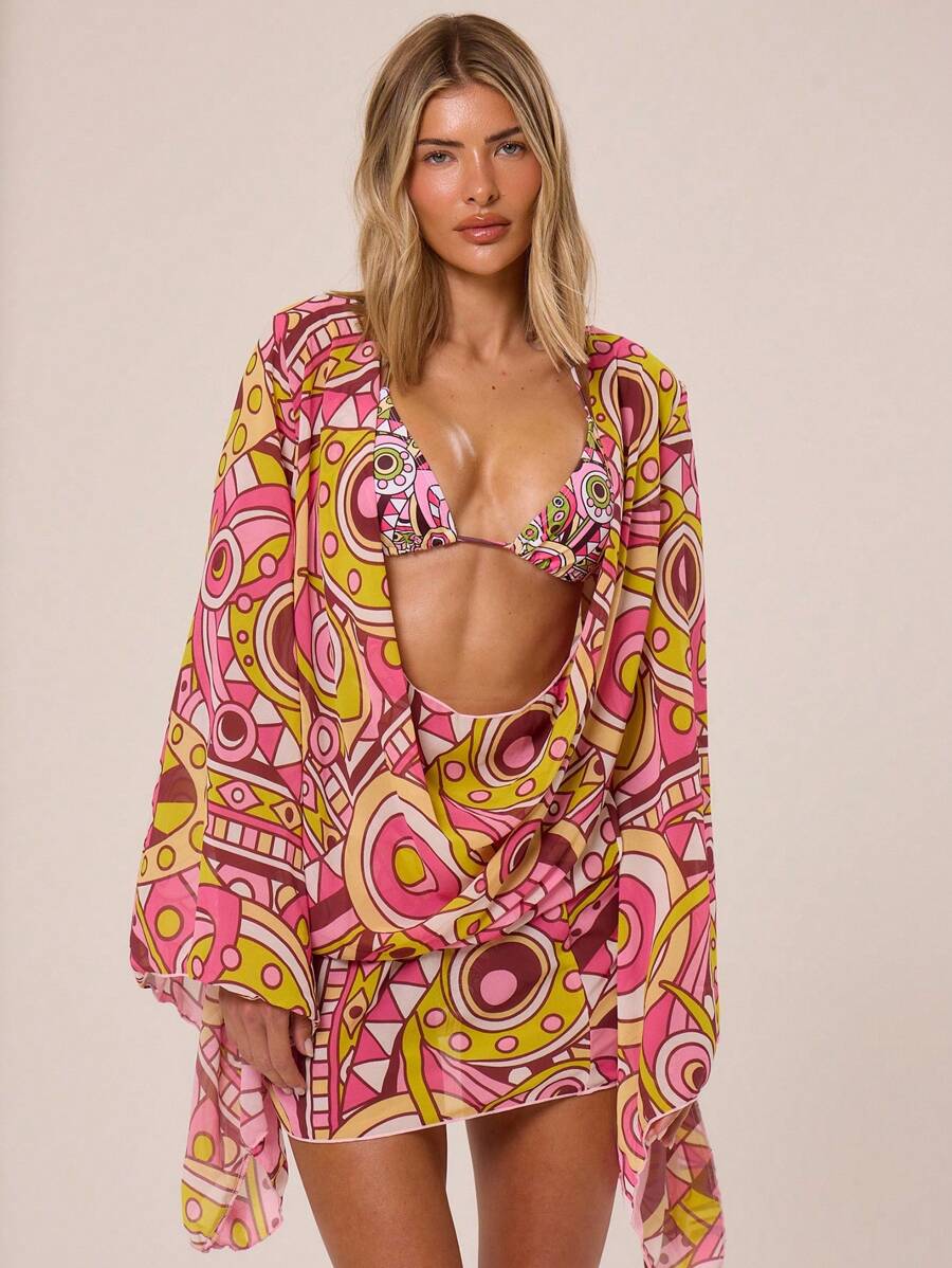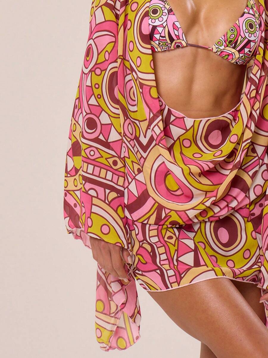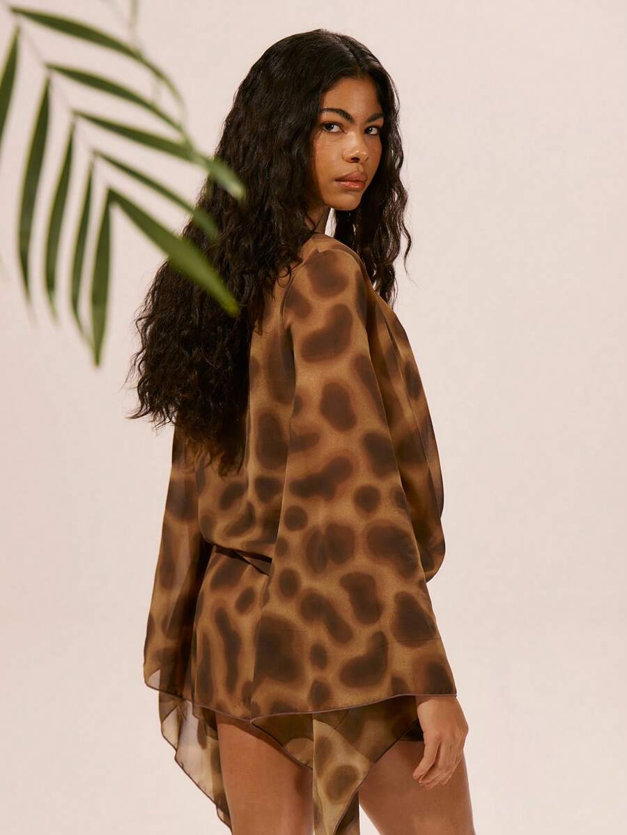 Vestido minifalda con cuello en pico de gasa y malla de manga larga, para cubrir, ideal para primavera, verano, ibiza, vacaciones, lindo, romantico, festival, ropa de playa