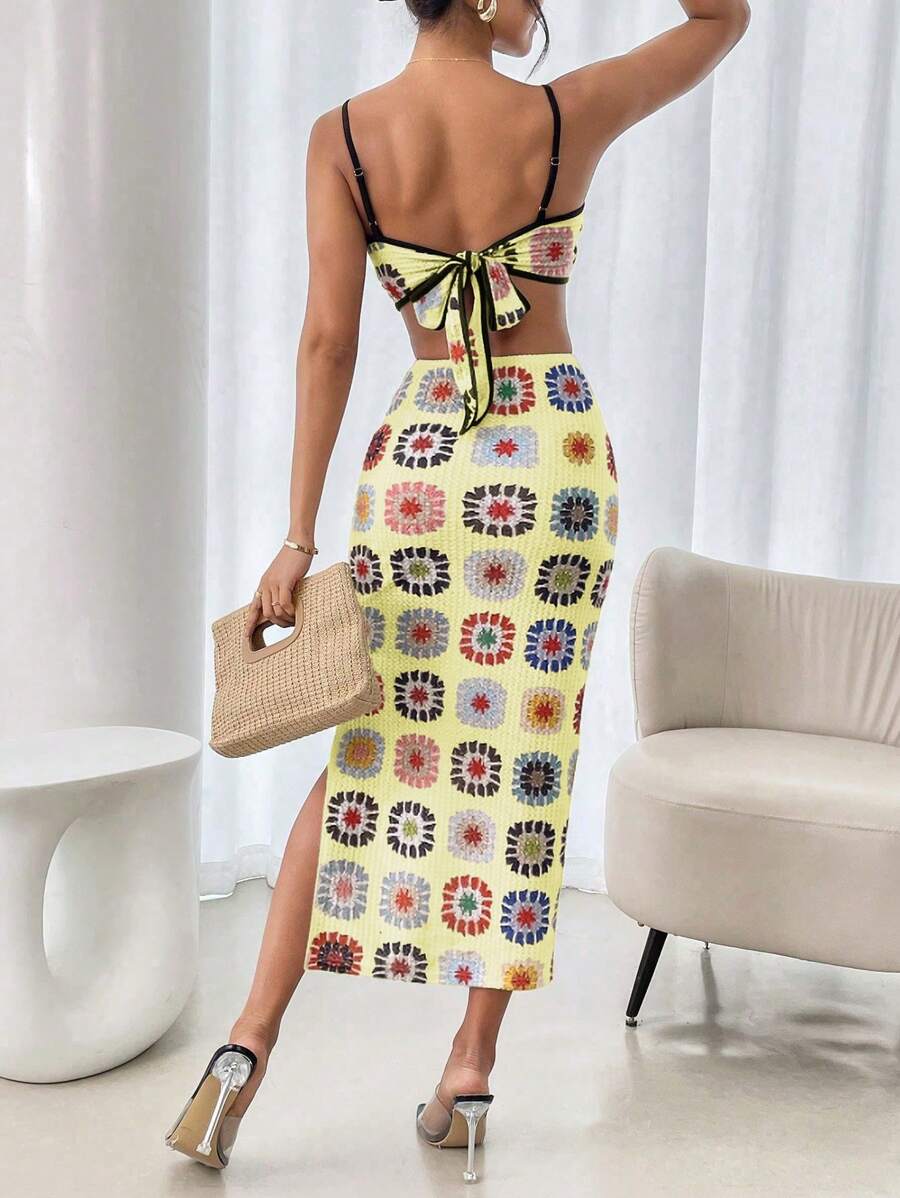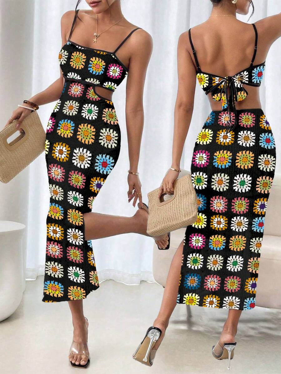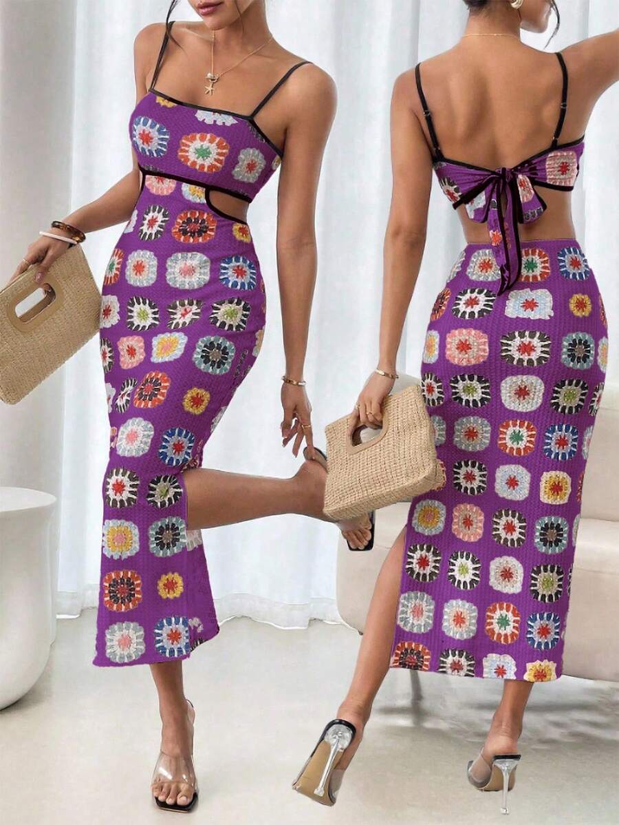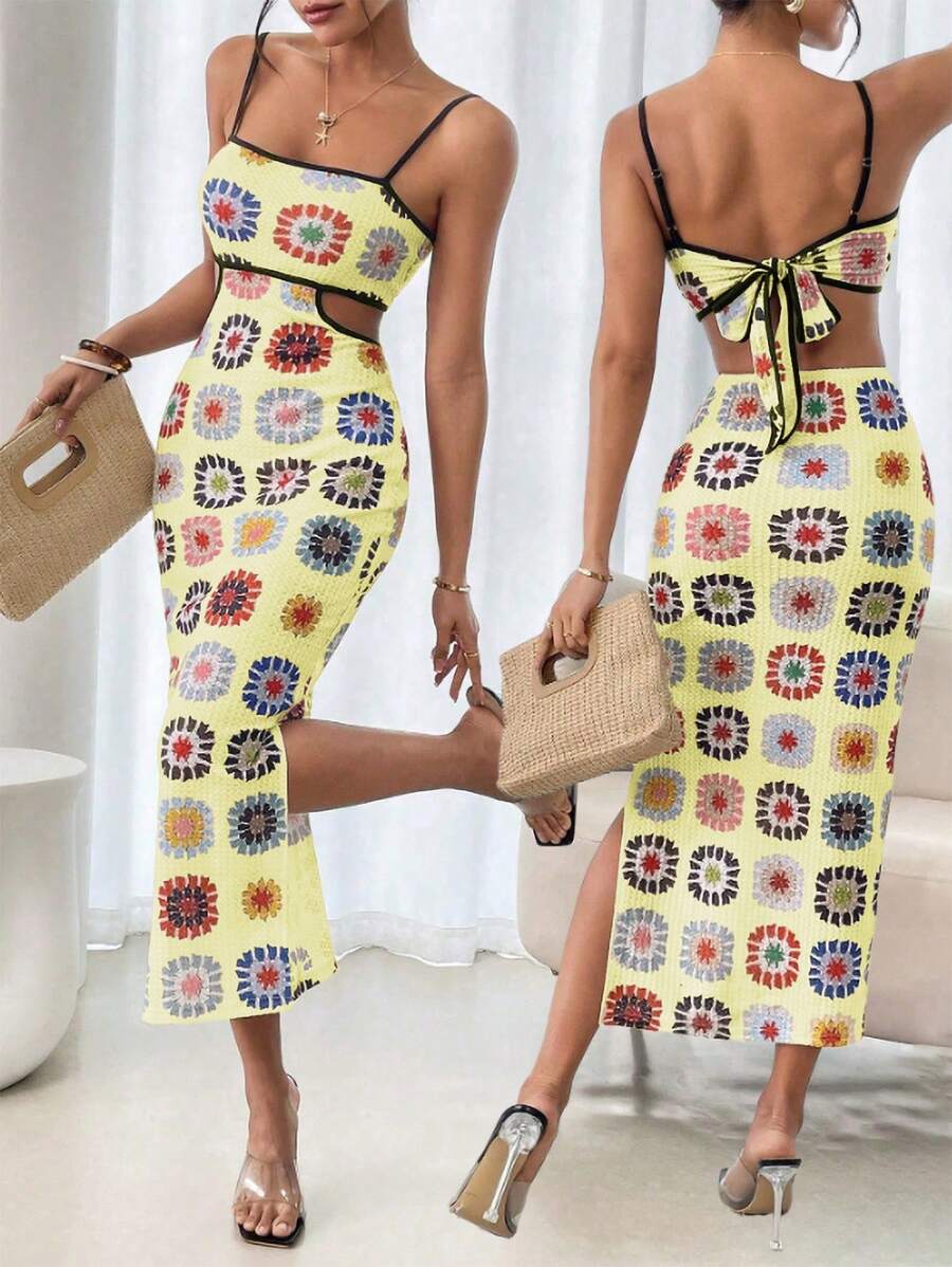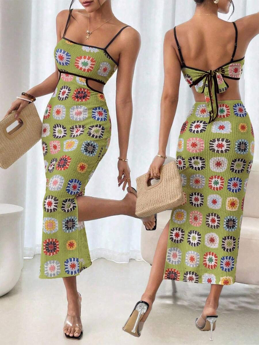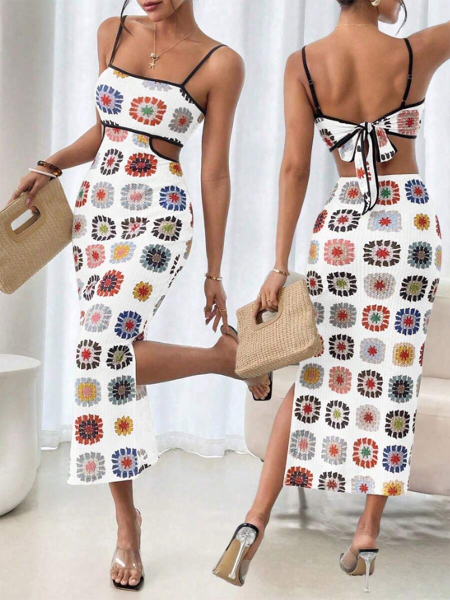 Vestido midi con estampado floral, espalda atada y corte entallado para mujer