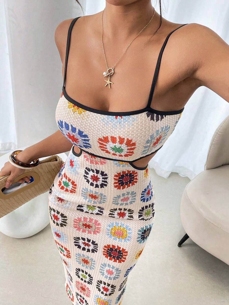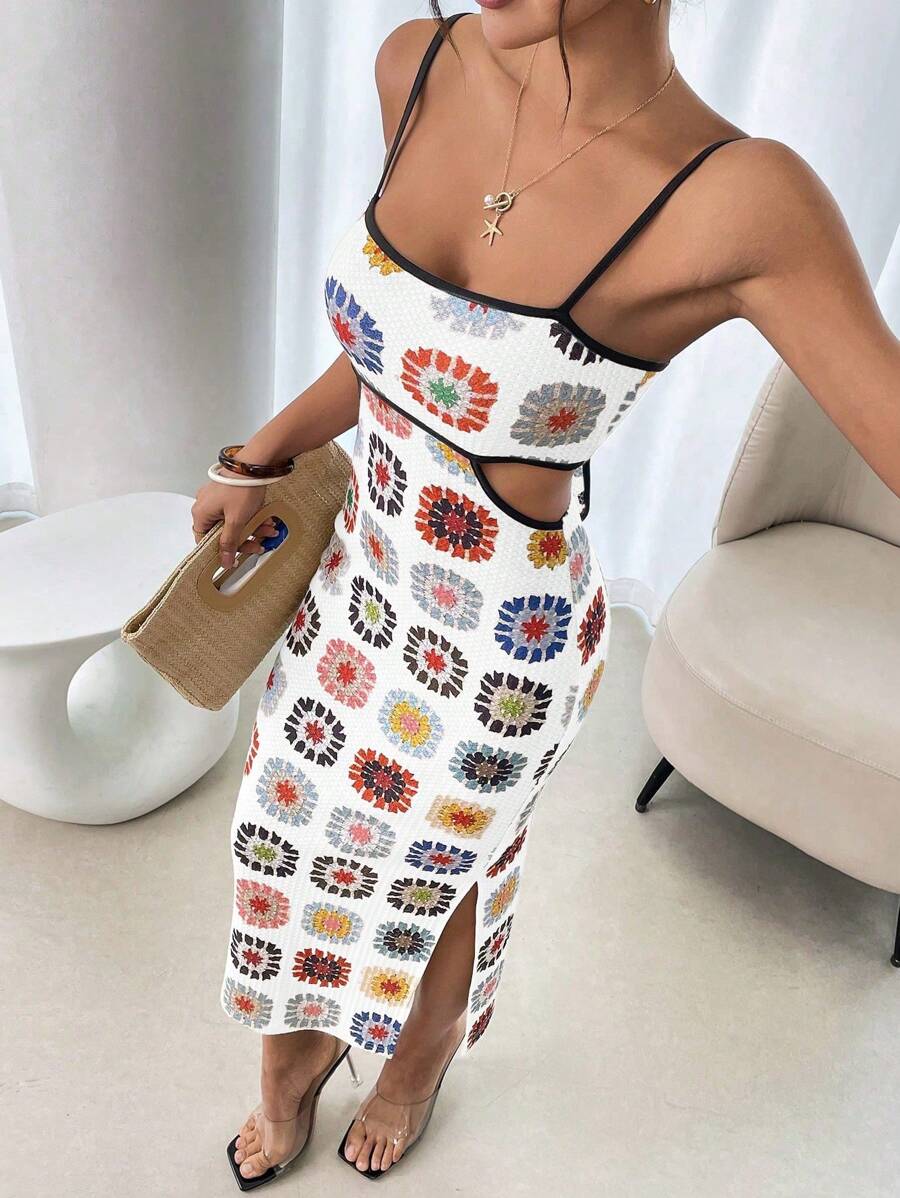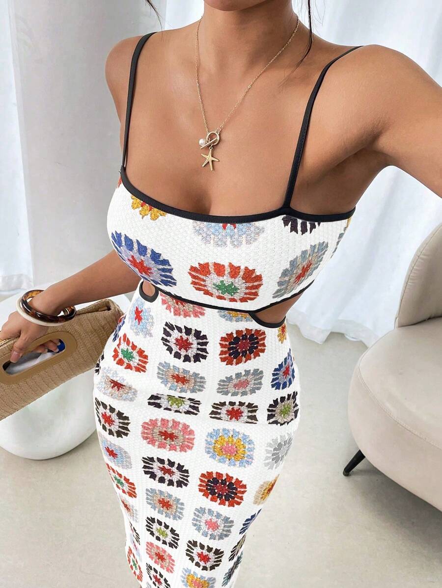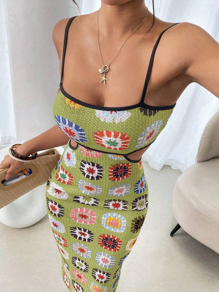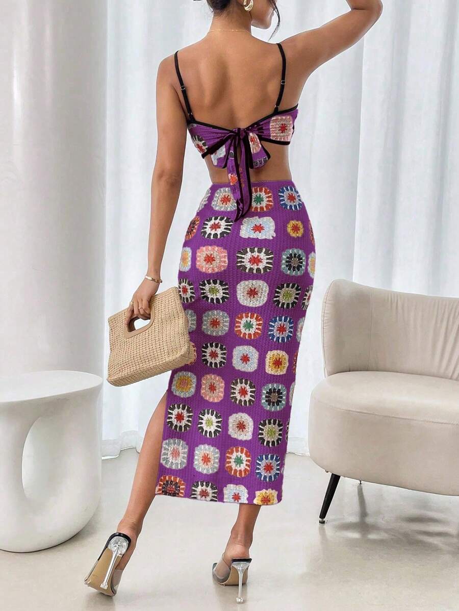 Vestido midi con estampado floral, espalda atada y corte entallado para mujer