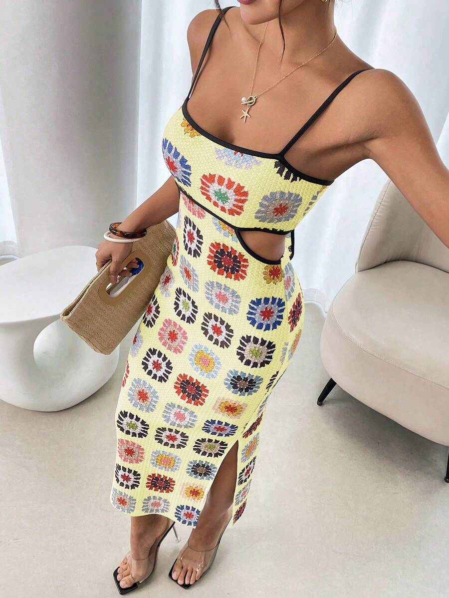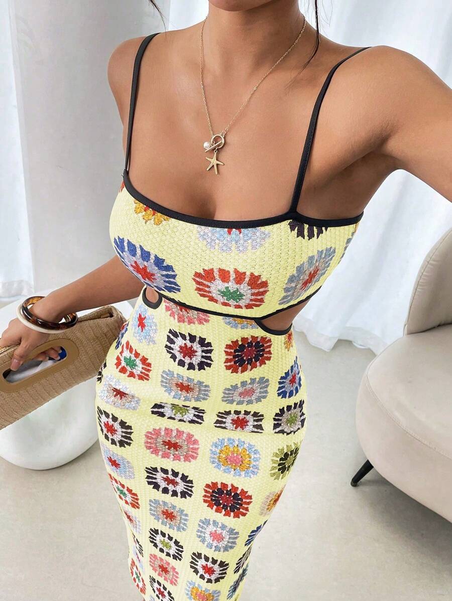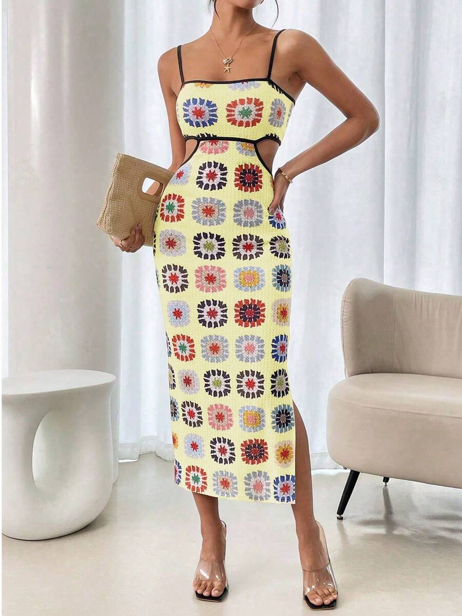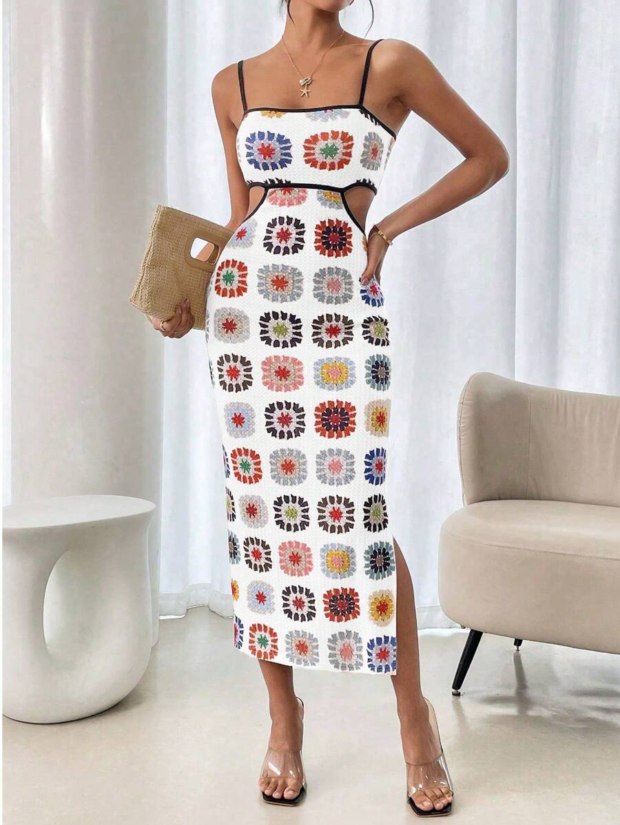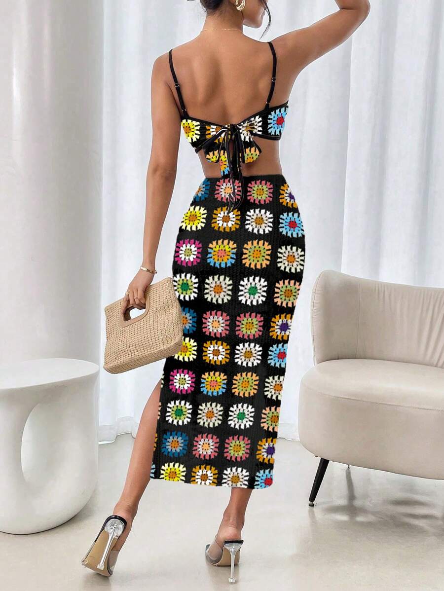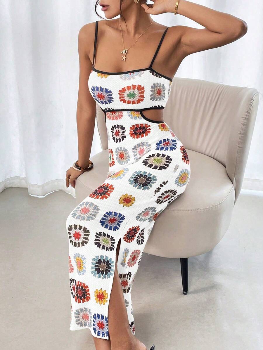 Vestido midi con estampado floral, espalda atada y corte entallado para mujer