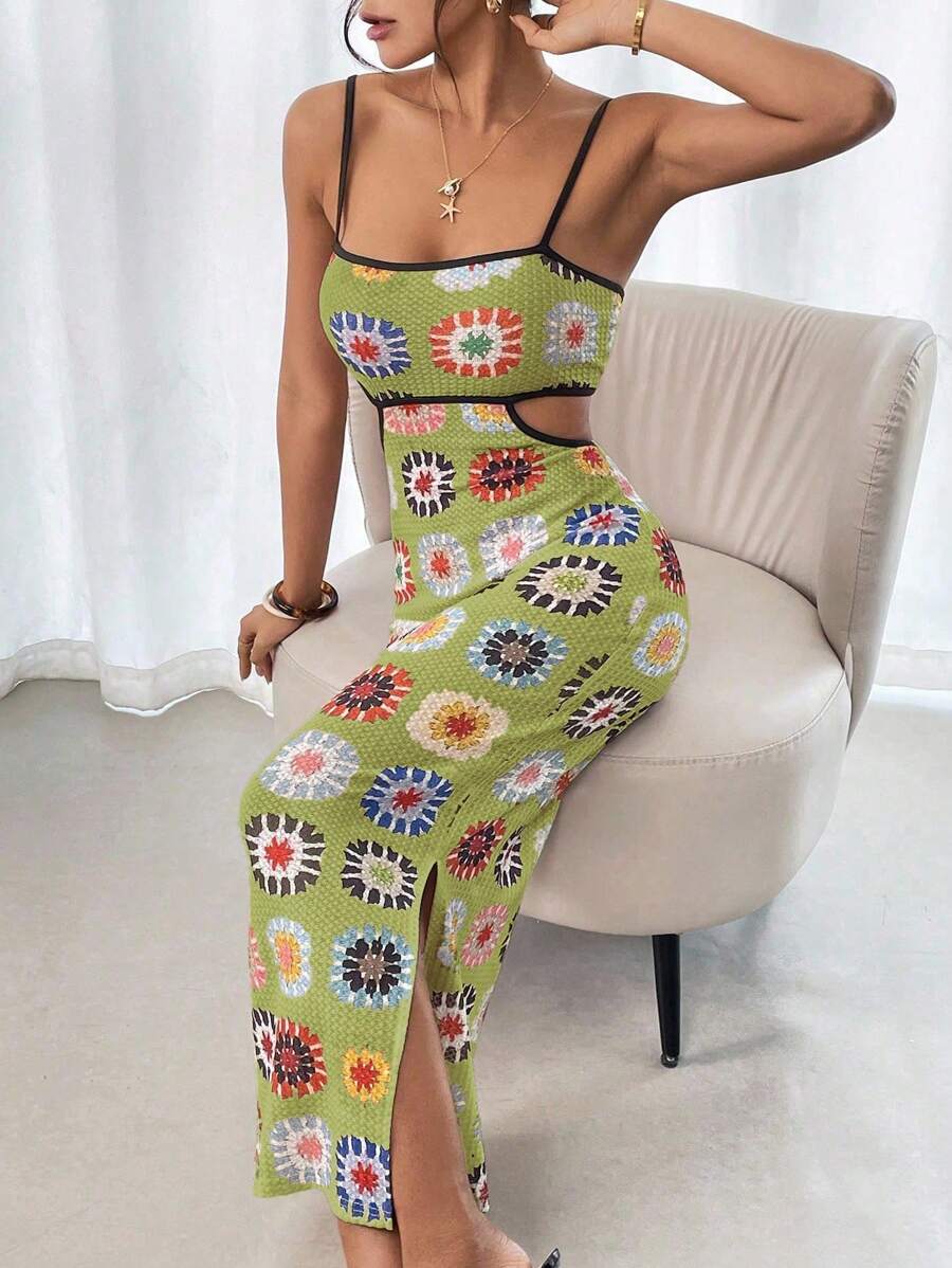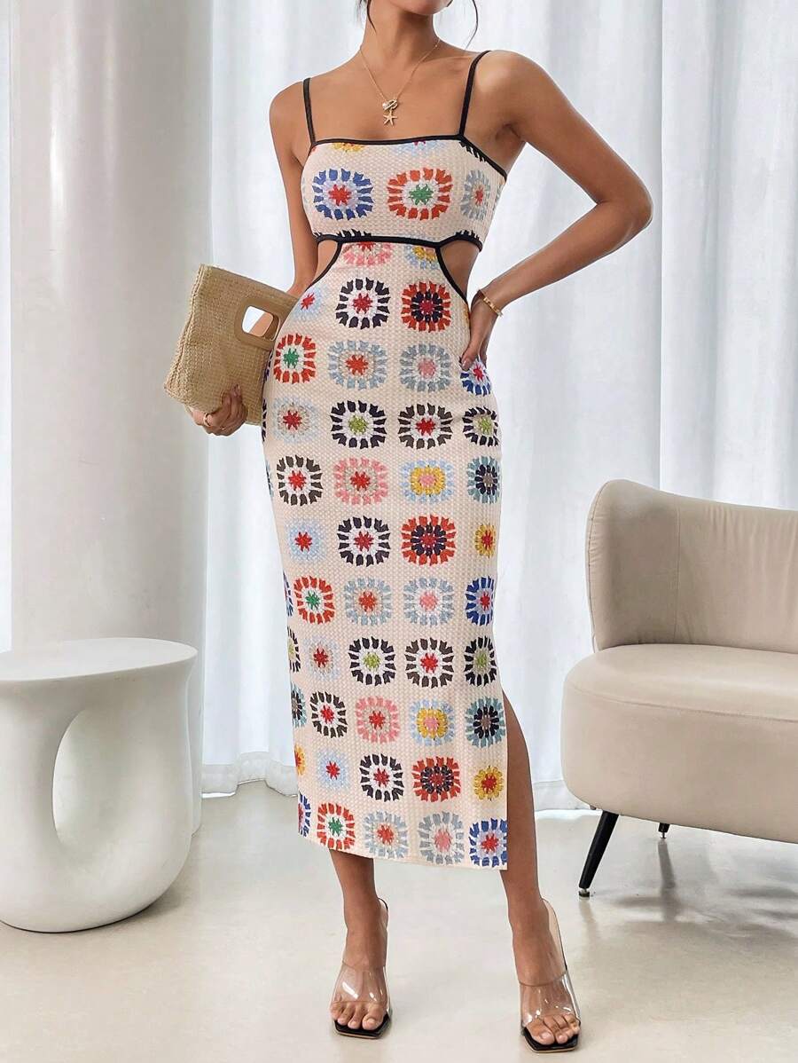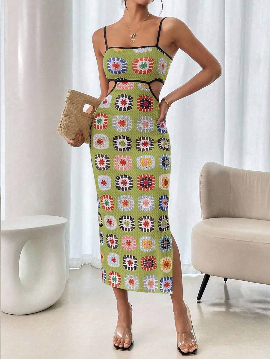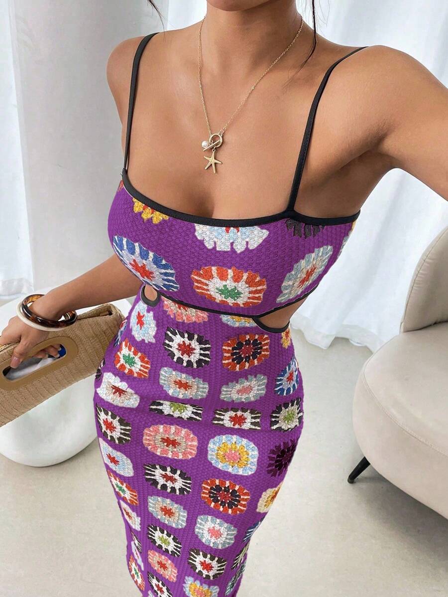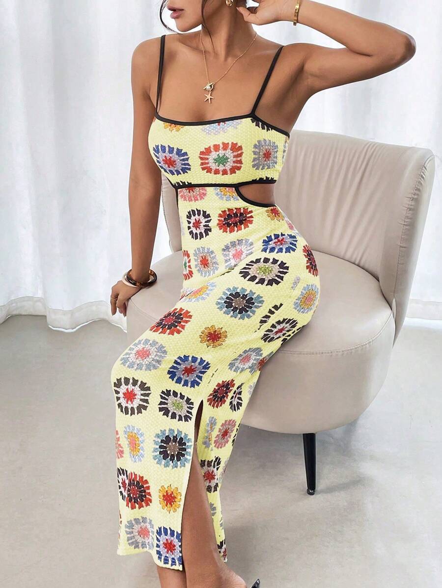 Vestido midi con estampado floral, espalda atada y corte entallado para mujer