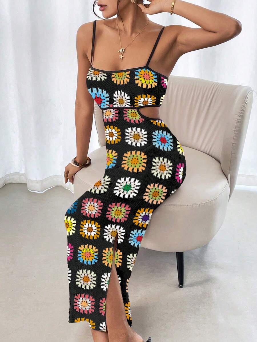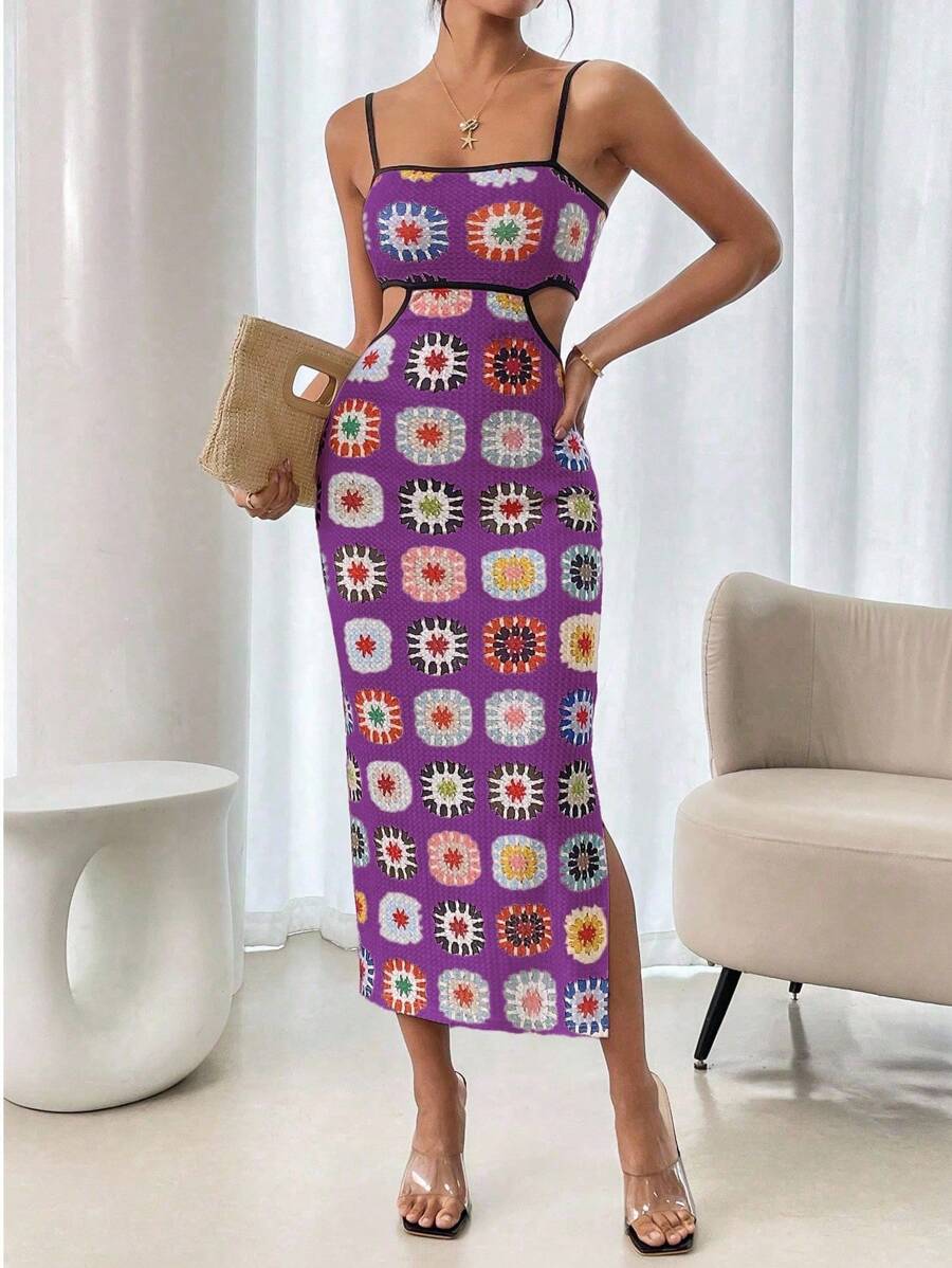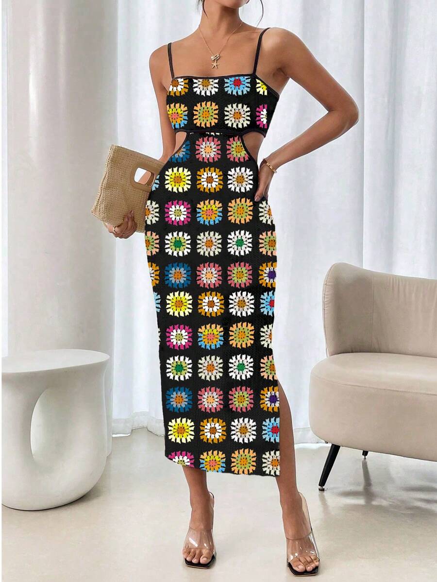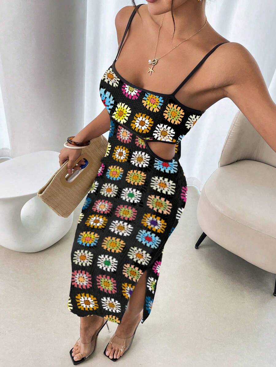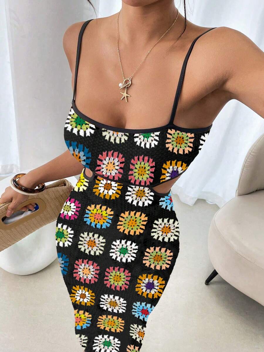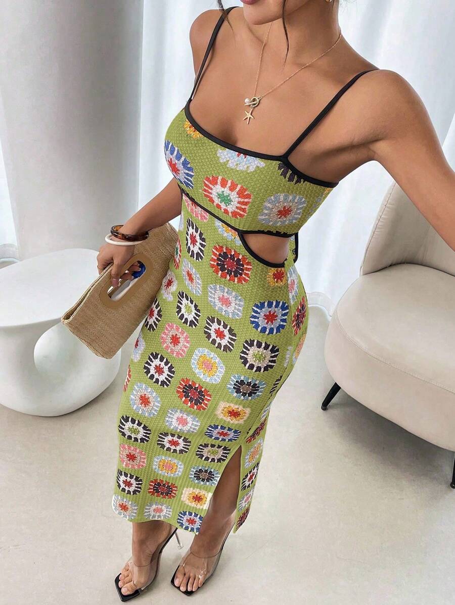 Vestido midi con estampado floral, espalda atada y corte entallado para mujer